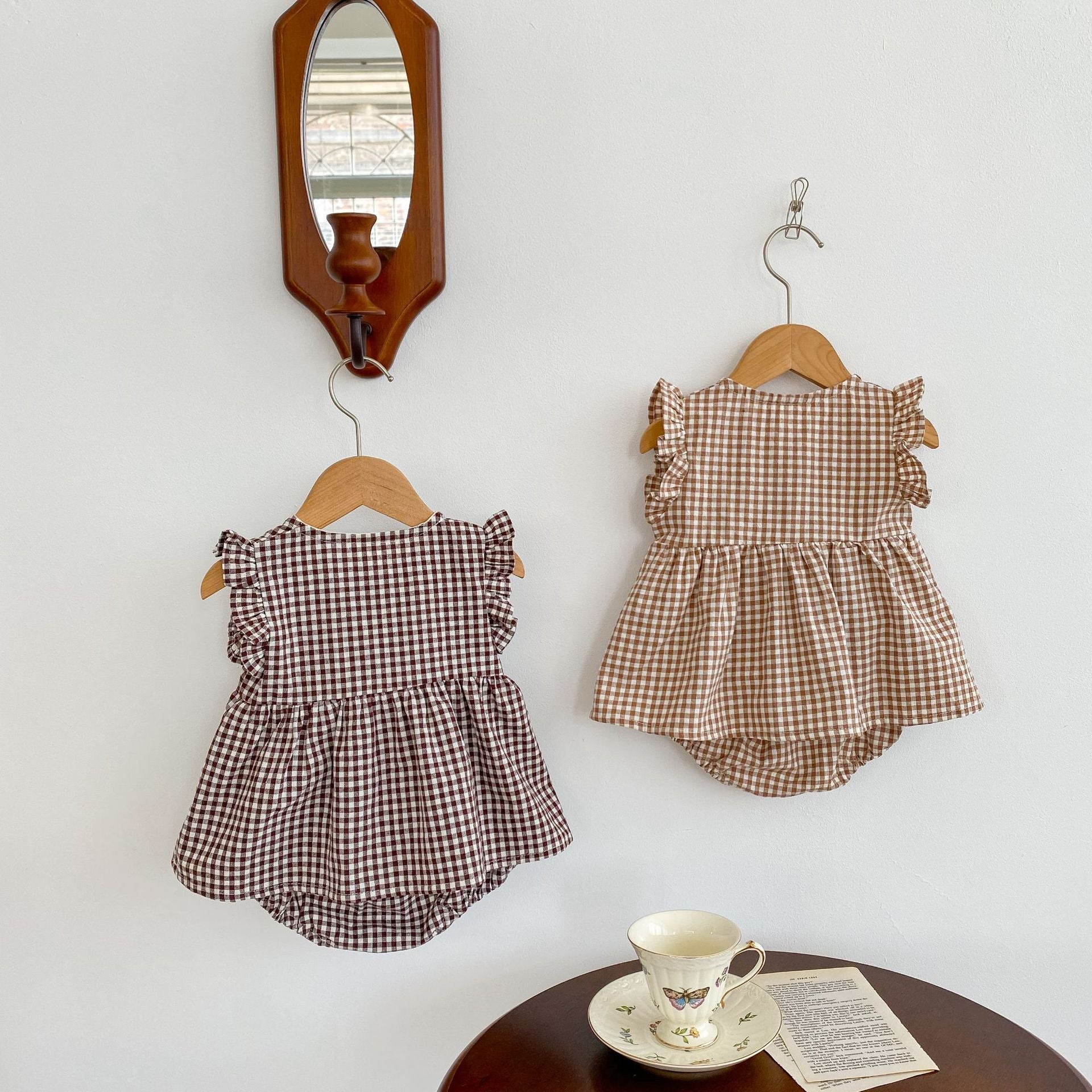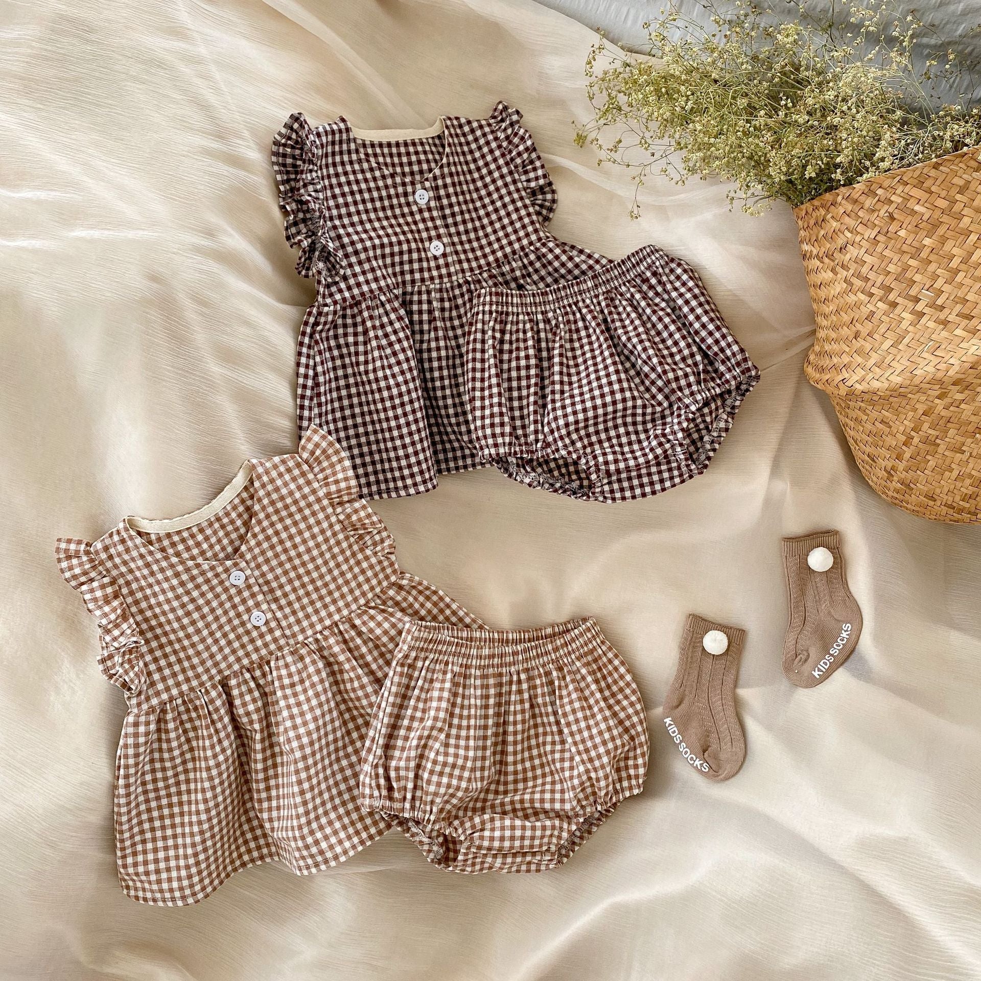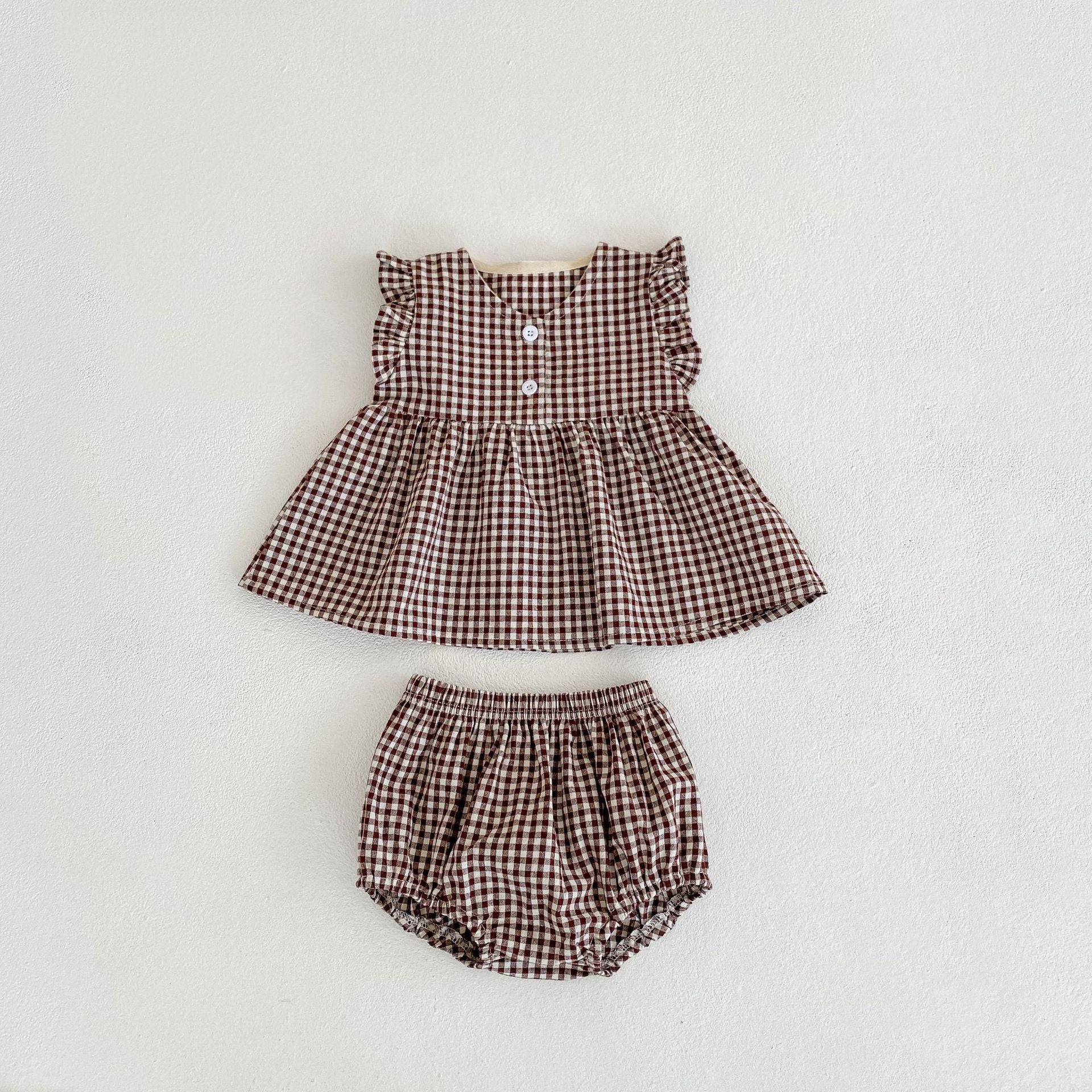 【BABY】夏新作 チェックフリルトップス&ベビーパンツセットアップSK071609