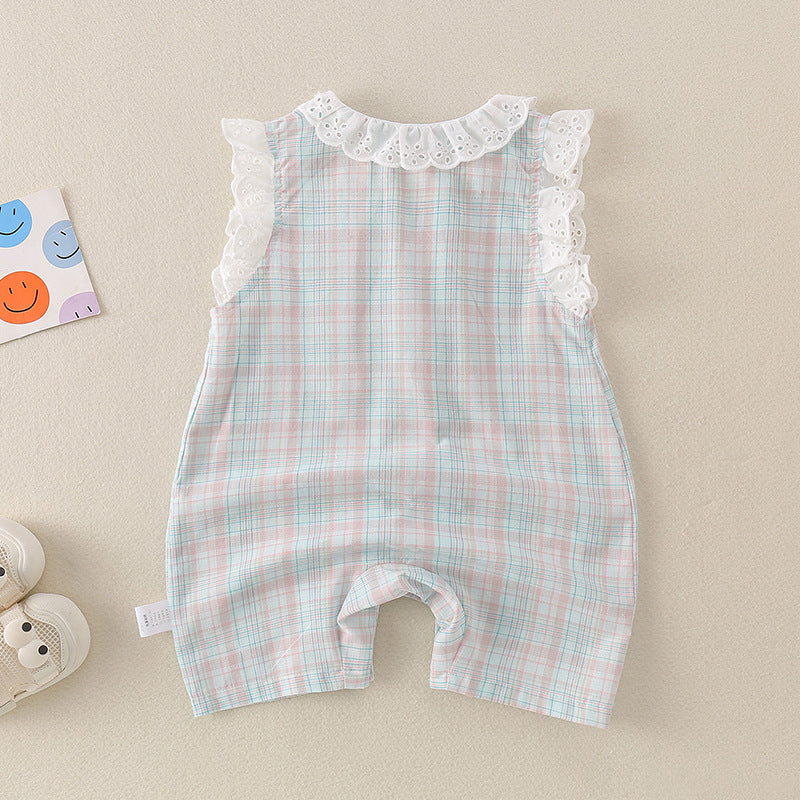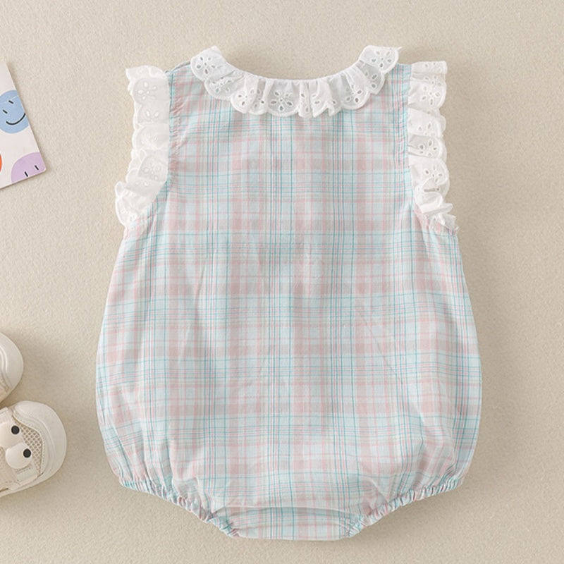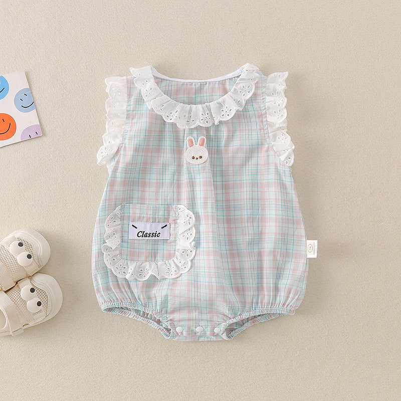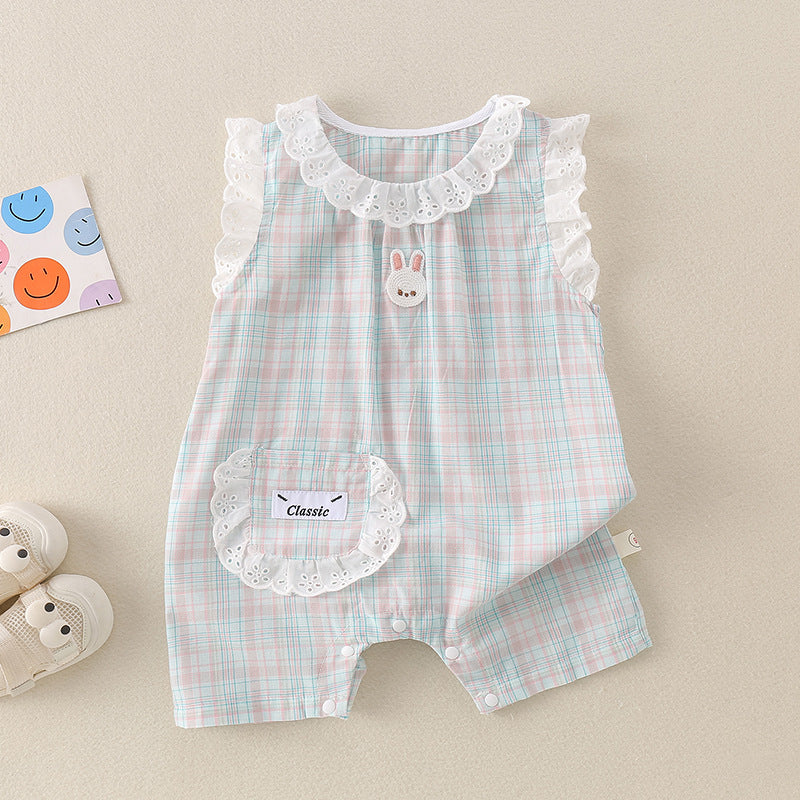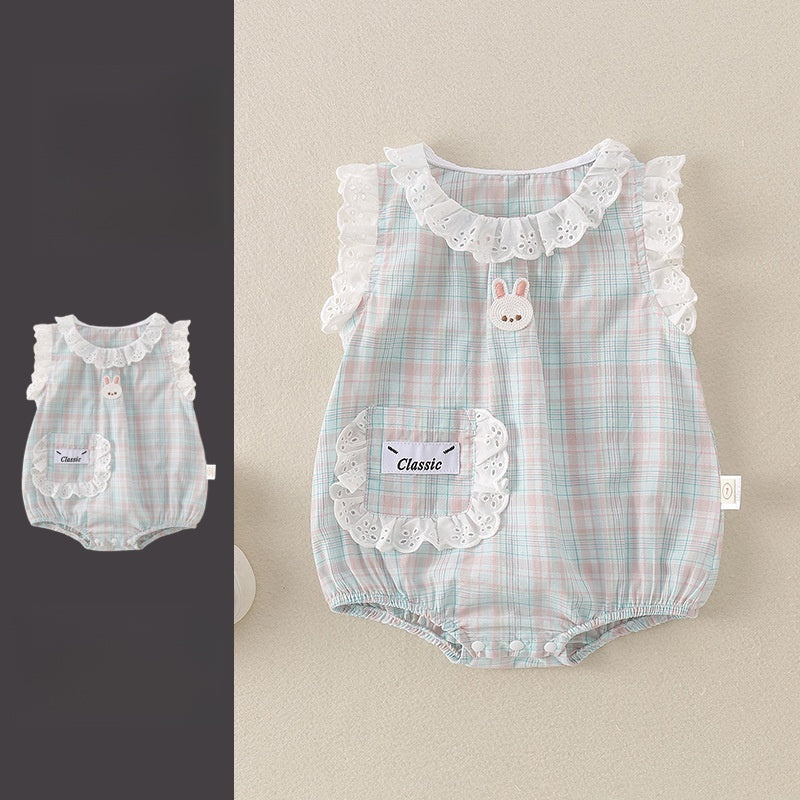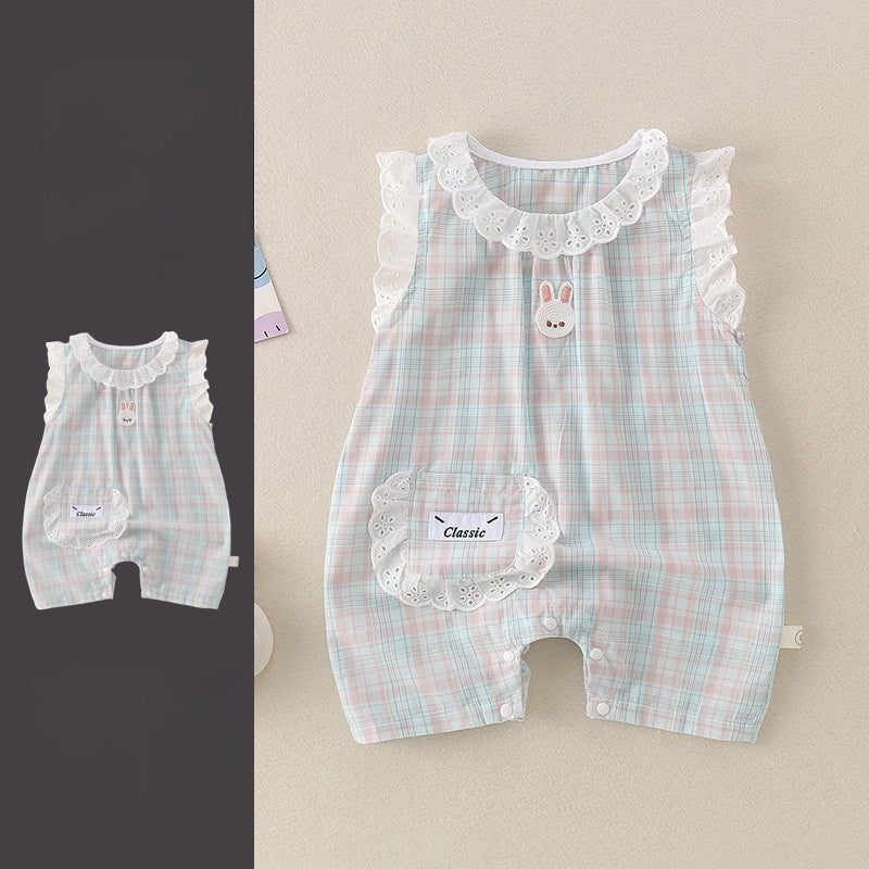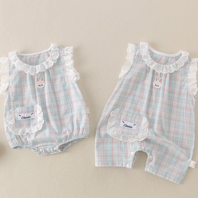 【BABY】夏新作 チェックレースうさぎロンパースSK071603