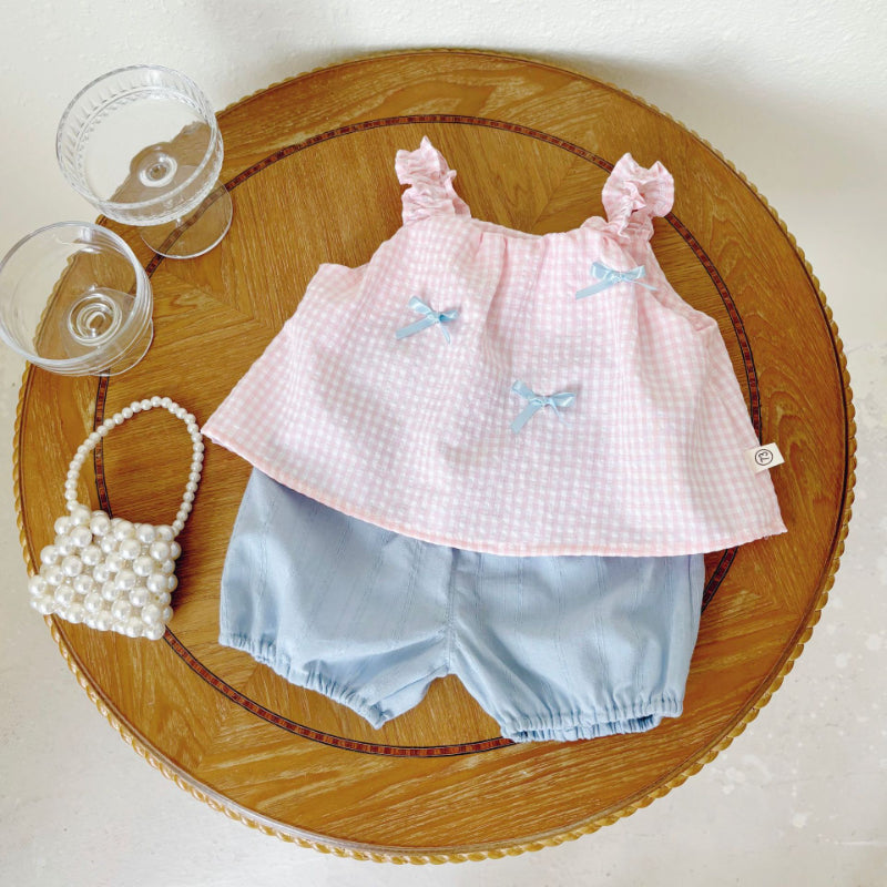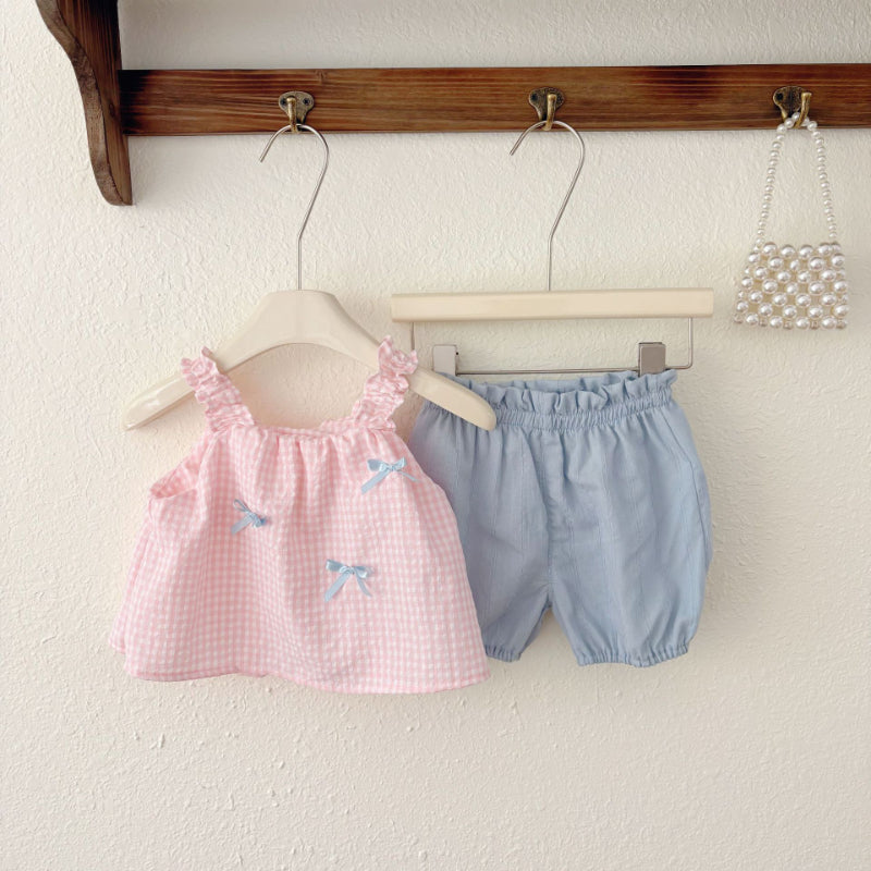 【BABY】夏新作 チェック柄キャミソールトップス&ショートパンツSK072610