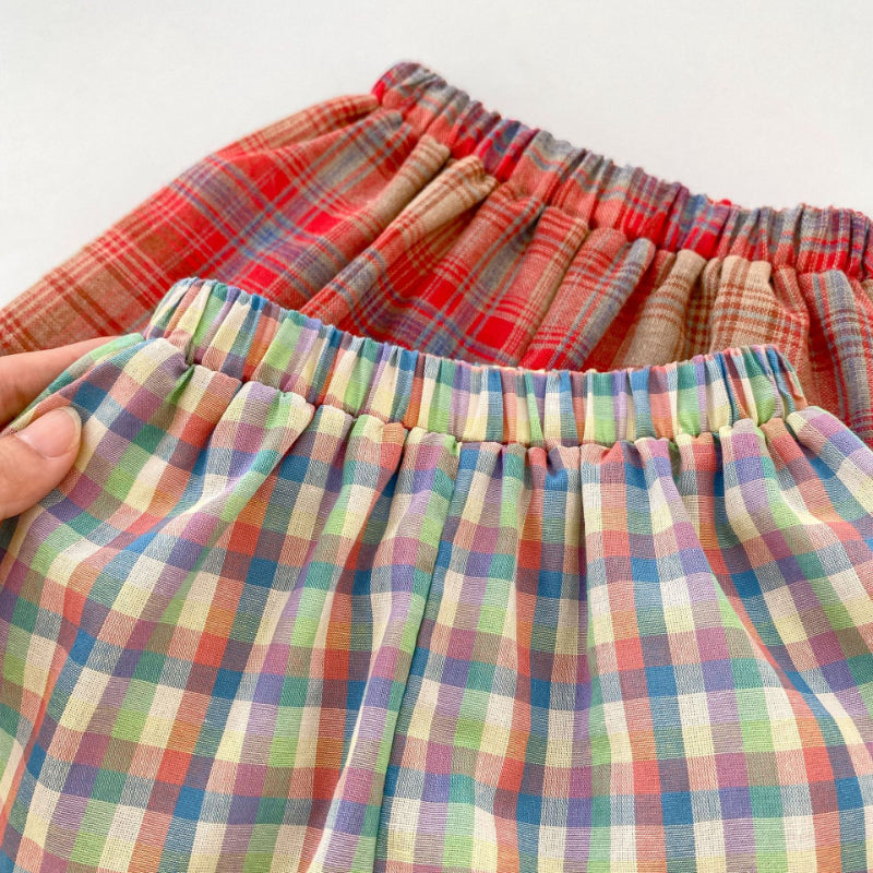 【BABY】夏新作 チェック柄サスペンダートップスと花蕾ショーツのツーピースセットSKO70725
