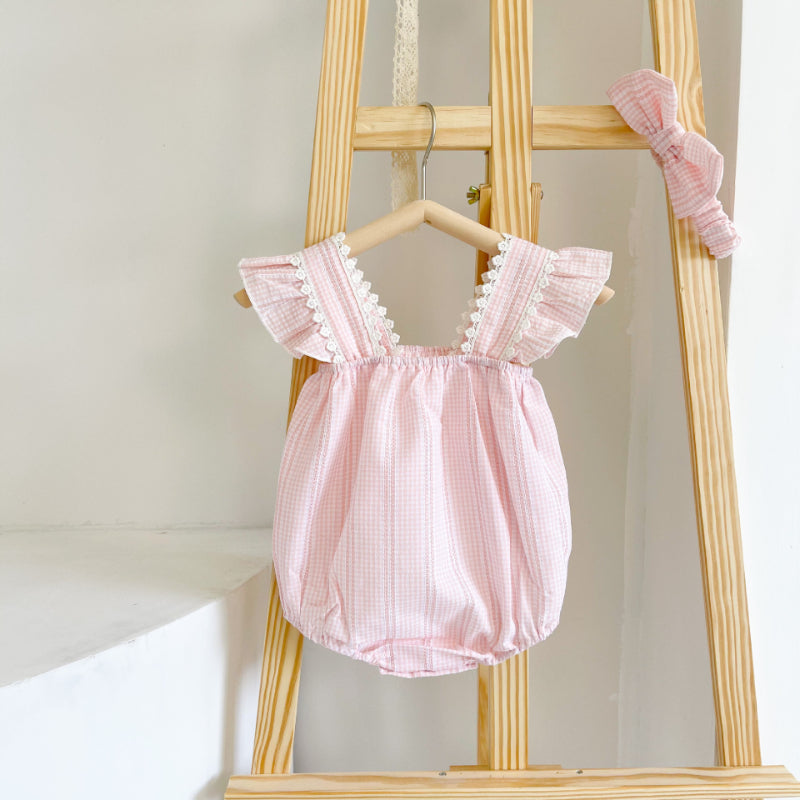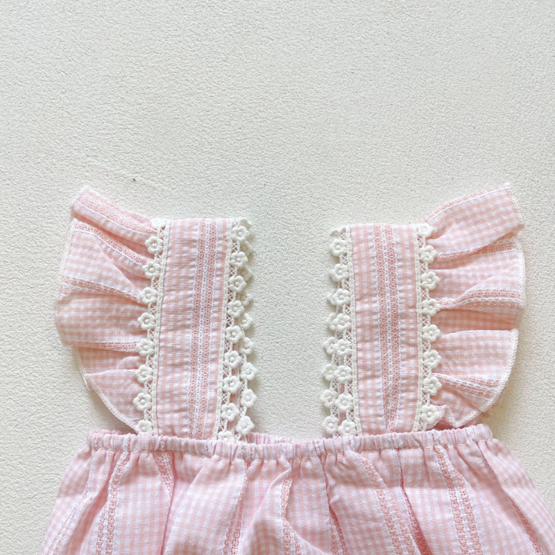 【BABY】夏新作 チェック柄ジャカードロンパースSK072508