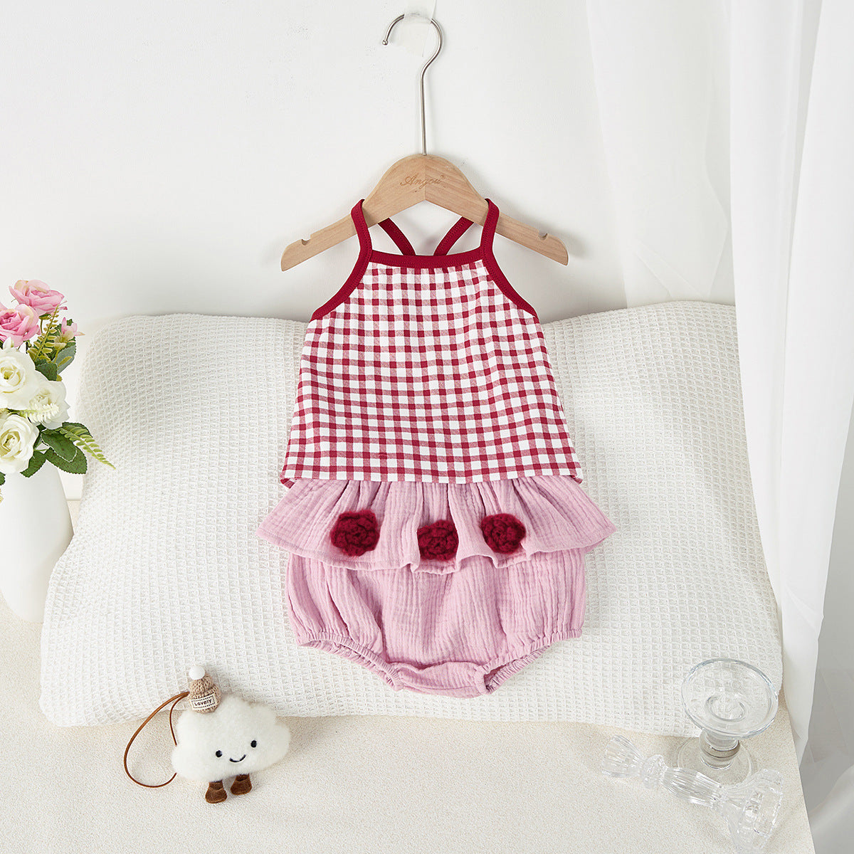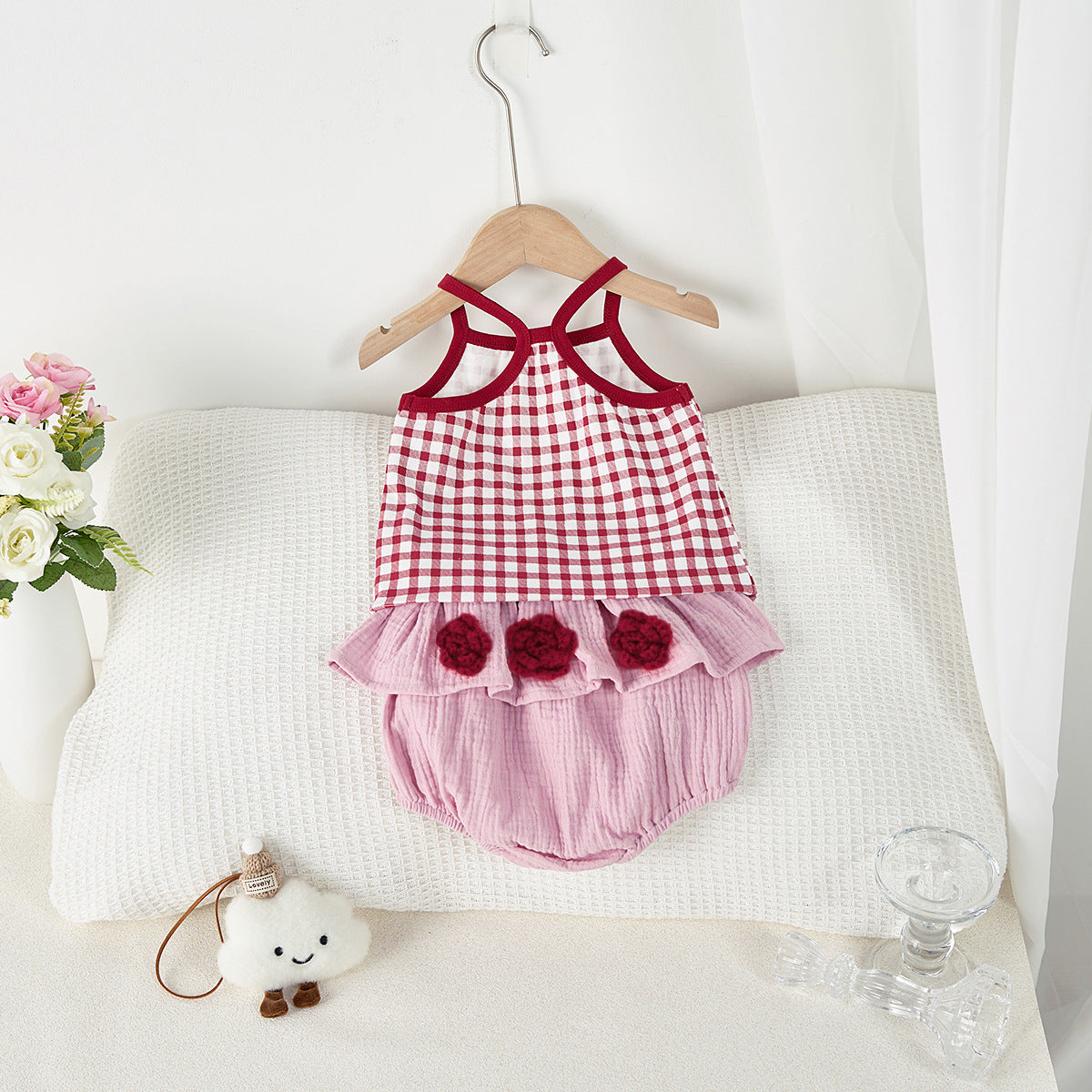 【BABY】夏新作 チェック柄タンクトップ&花柄ショートパンツSK072308
