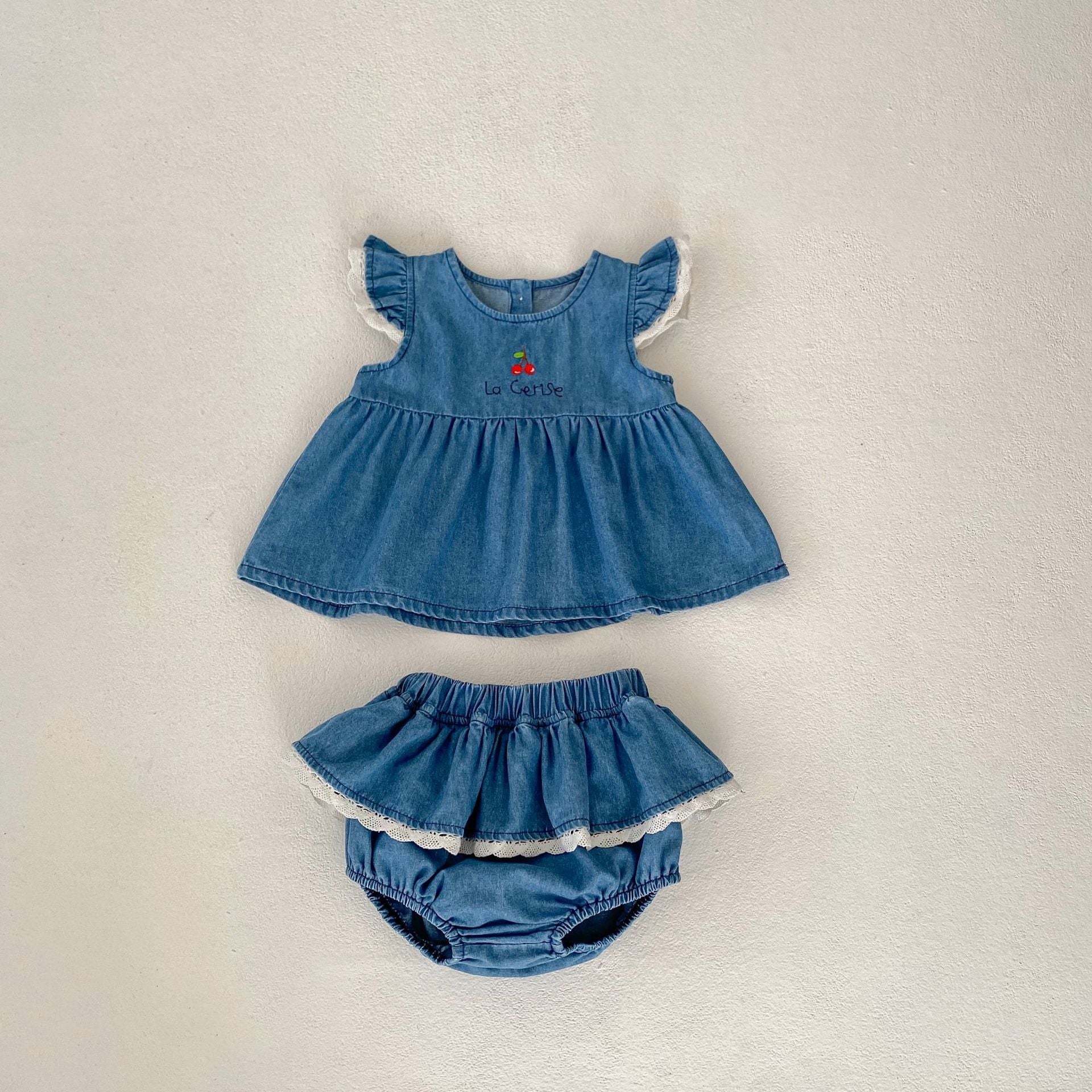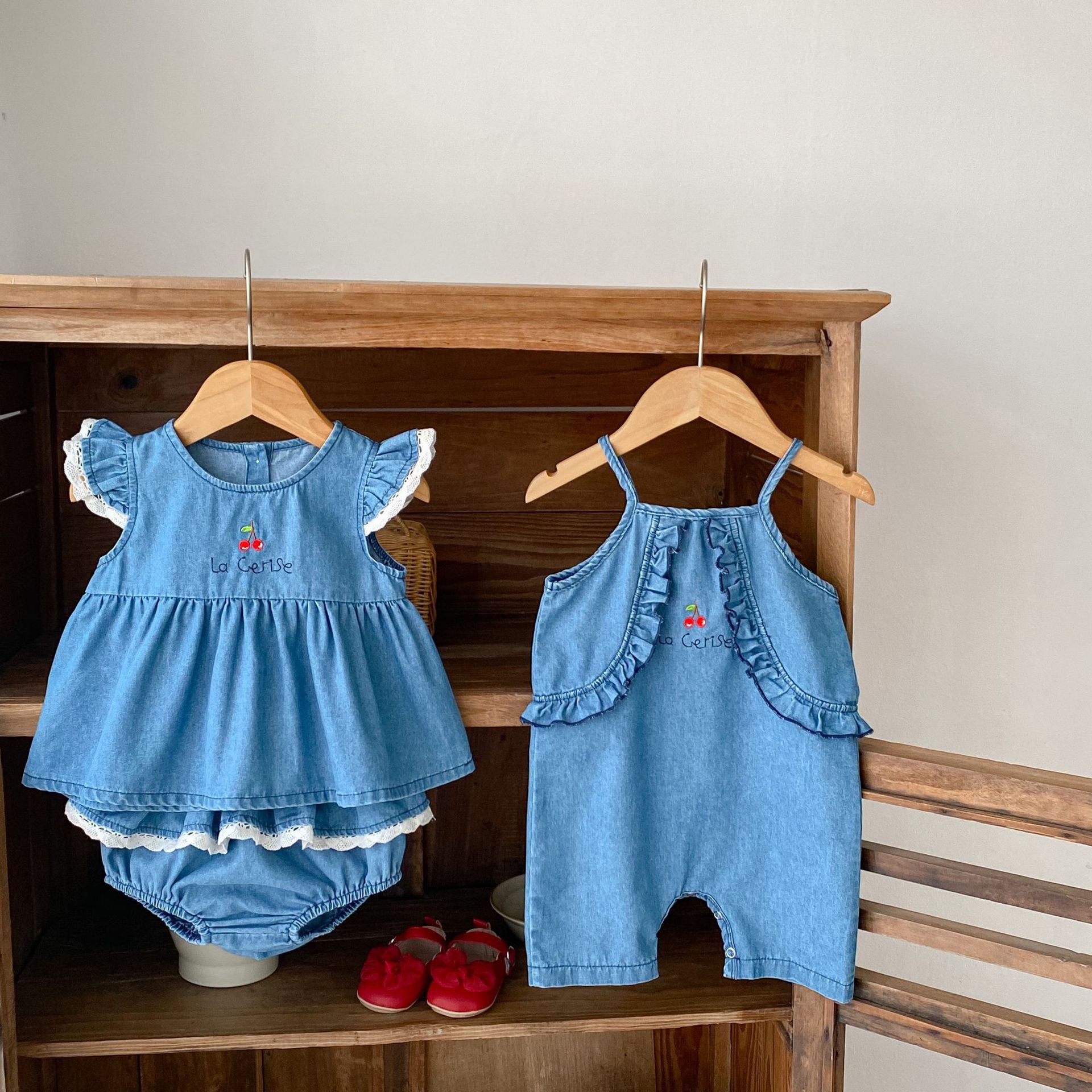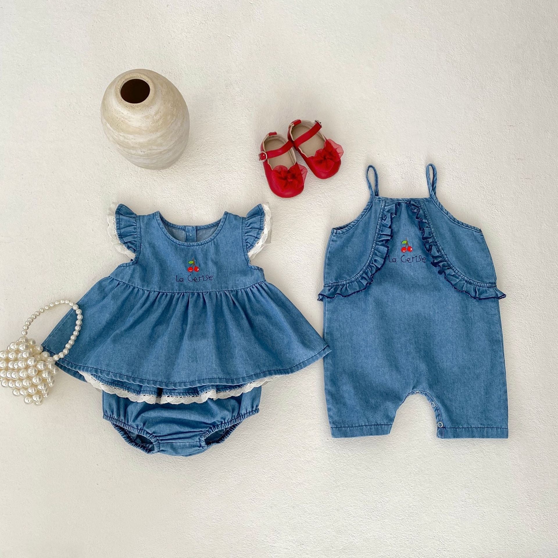 【BABY】夏新作 チェリー刺繍ロンパースorセットアップSK062709