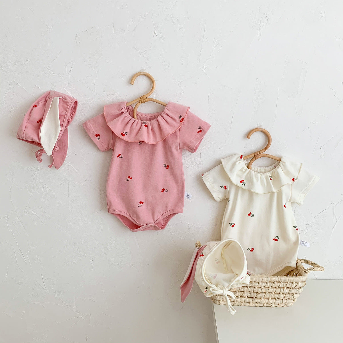 【BABY】夏新作 チェリー柄プリンセスロンパース&帽子SK072017