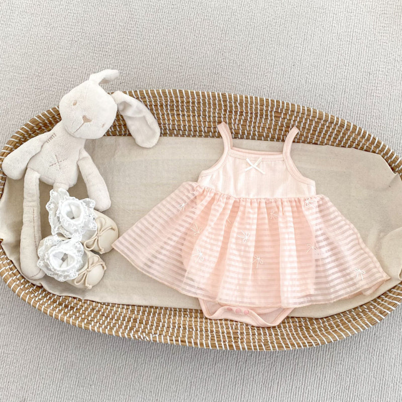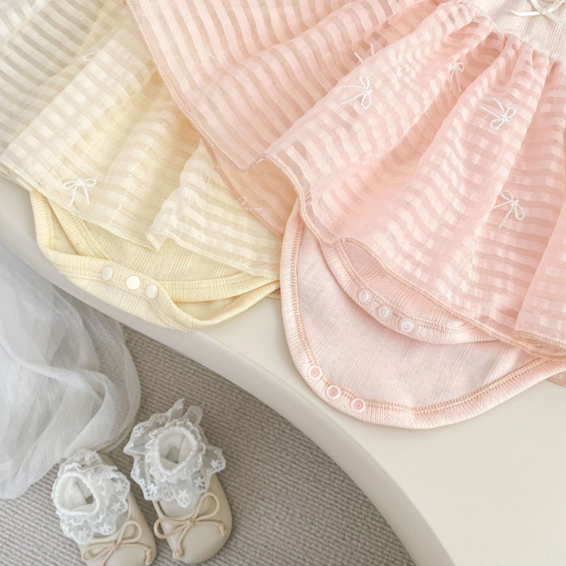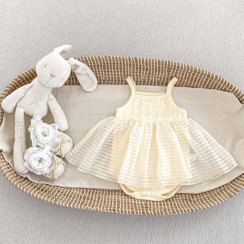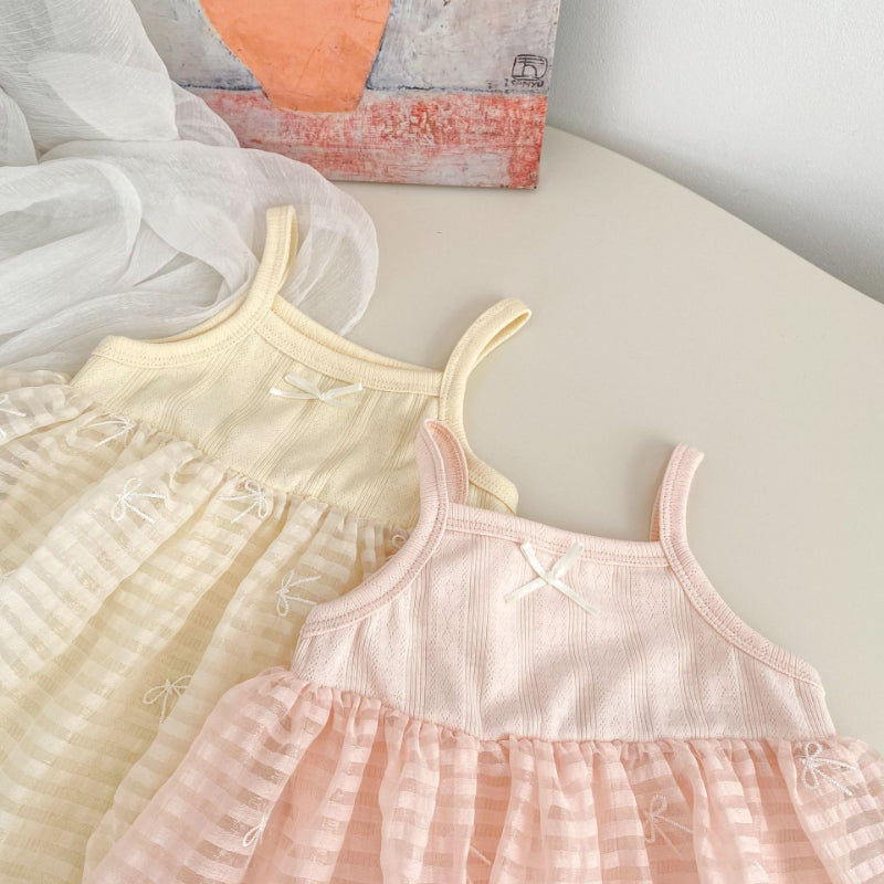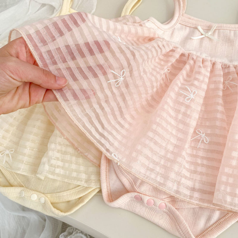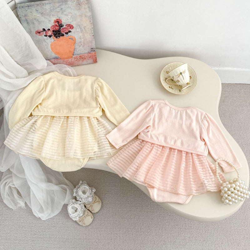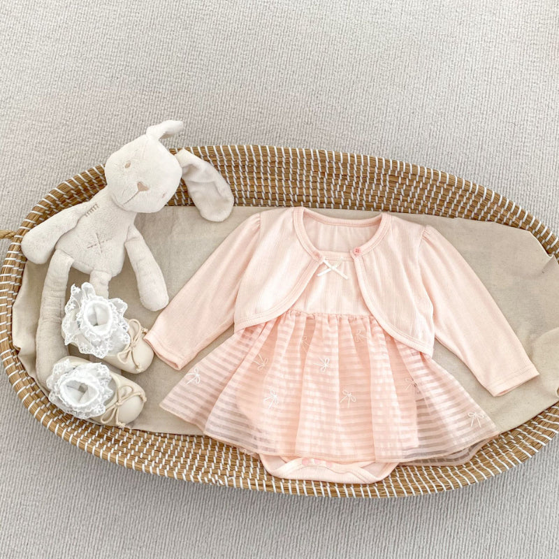 【BABY】夏新作 チュールリボンロンパースワンピース&無地カーディガンSK072306