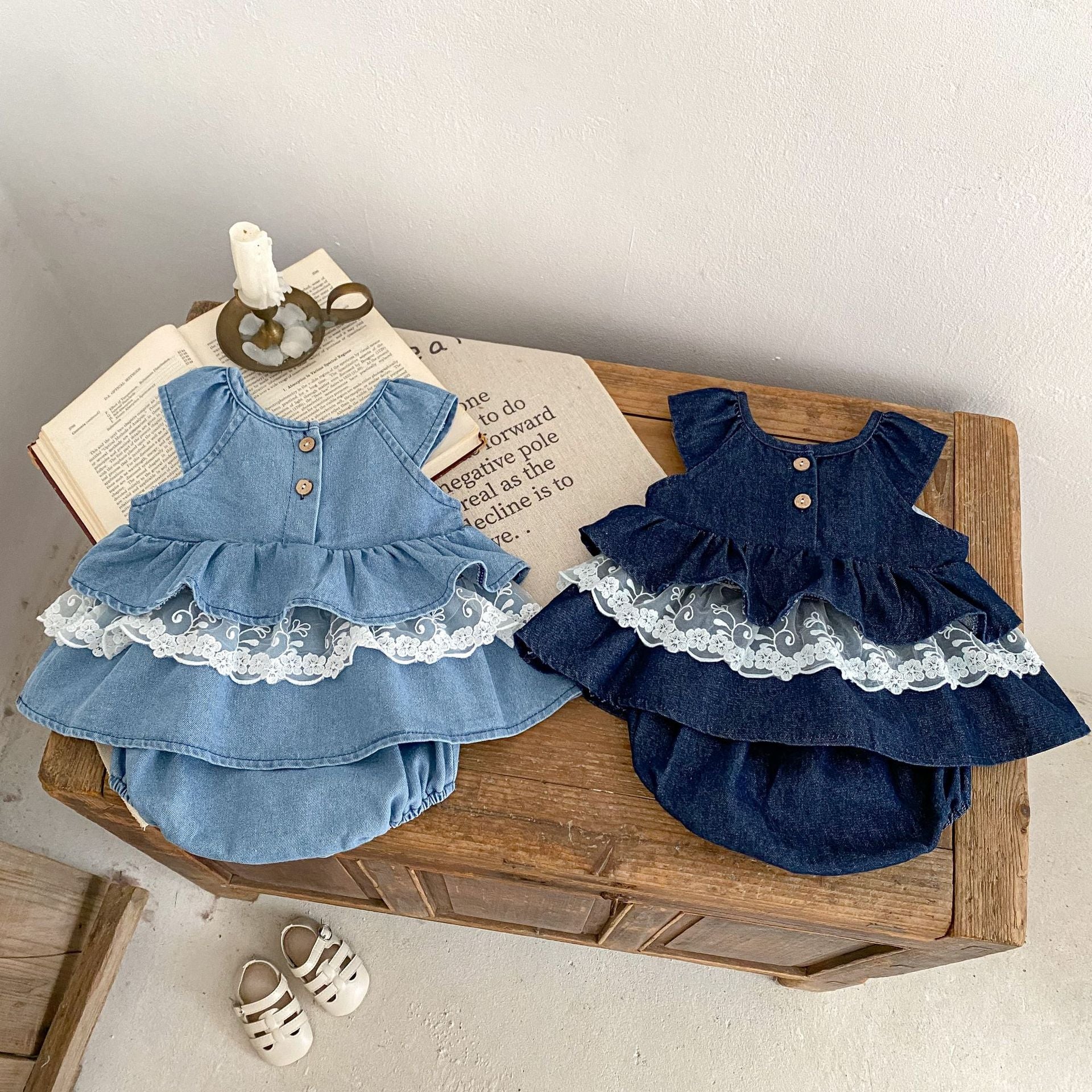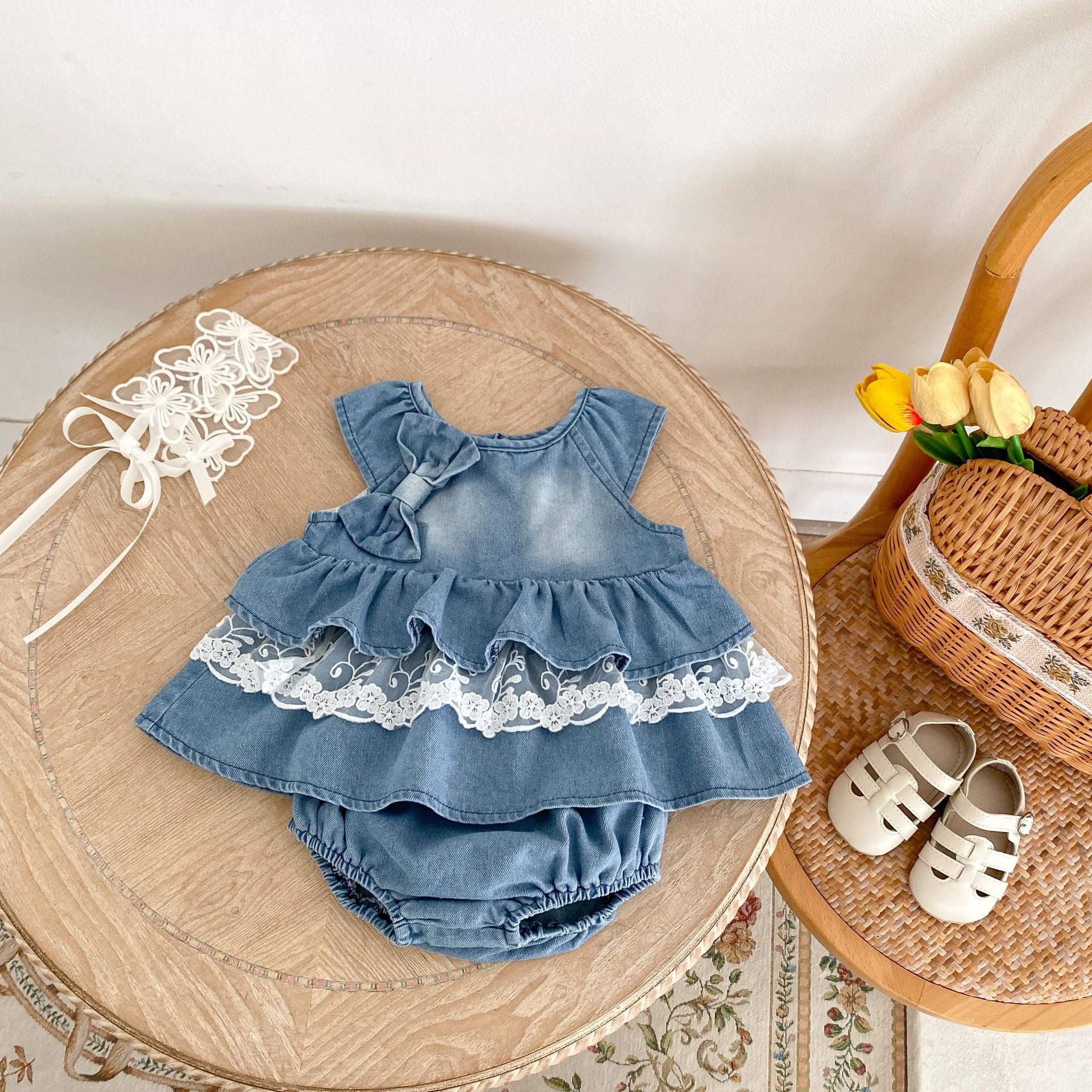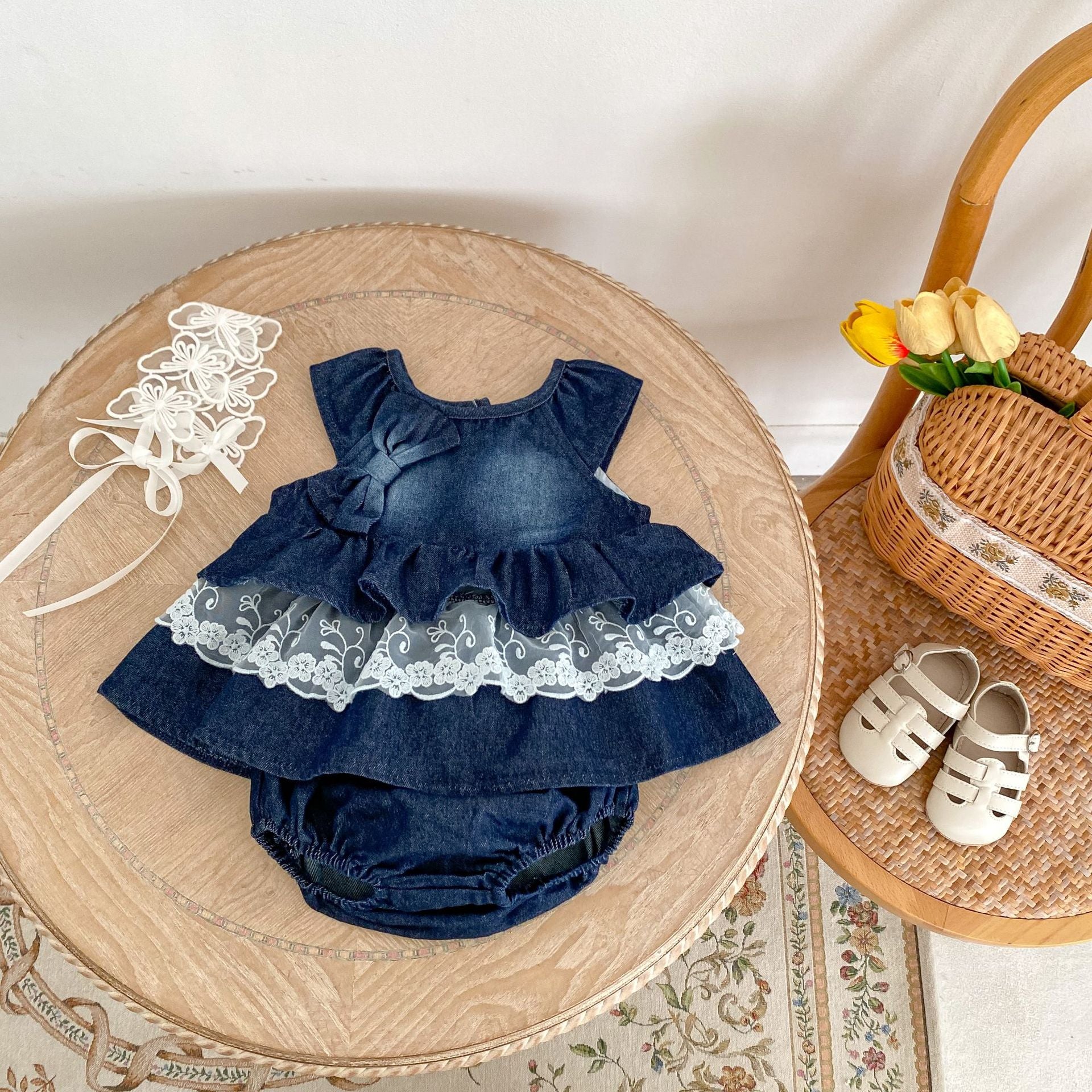【BABY】夏新作 デニムレーストップス&ブルマSK081313