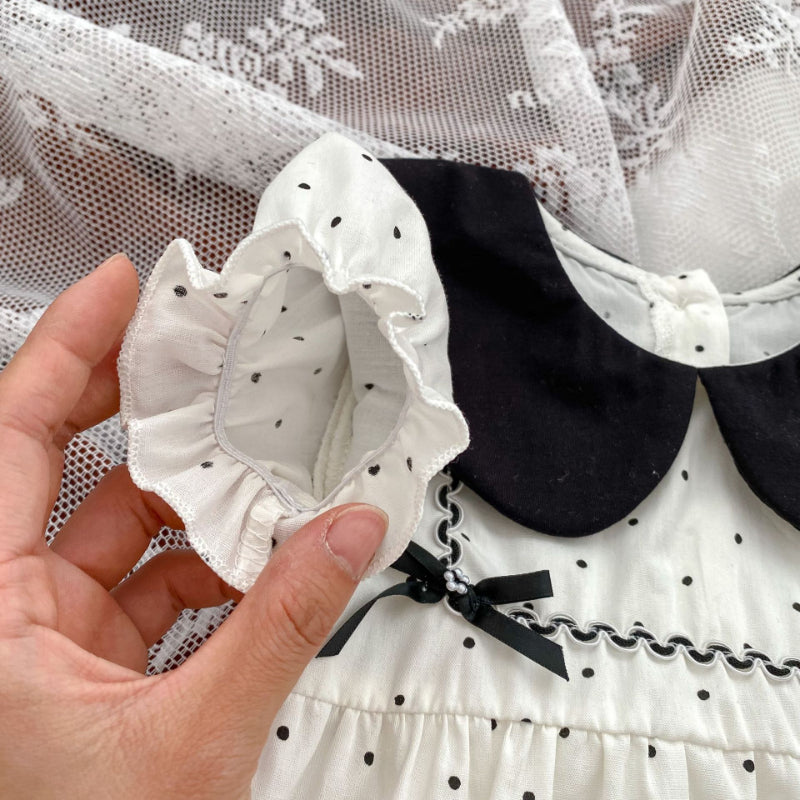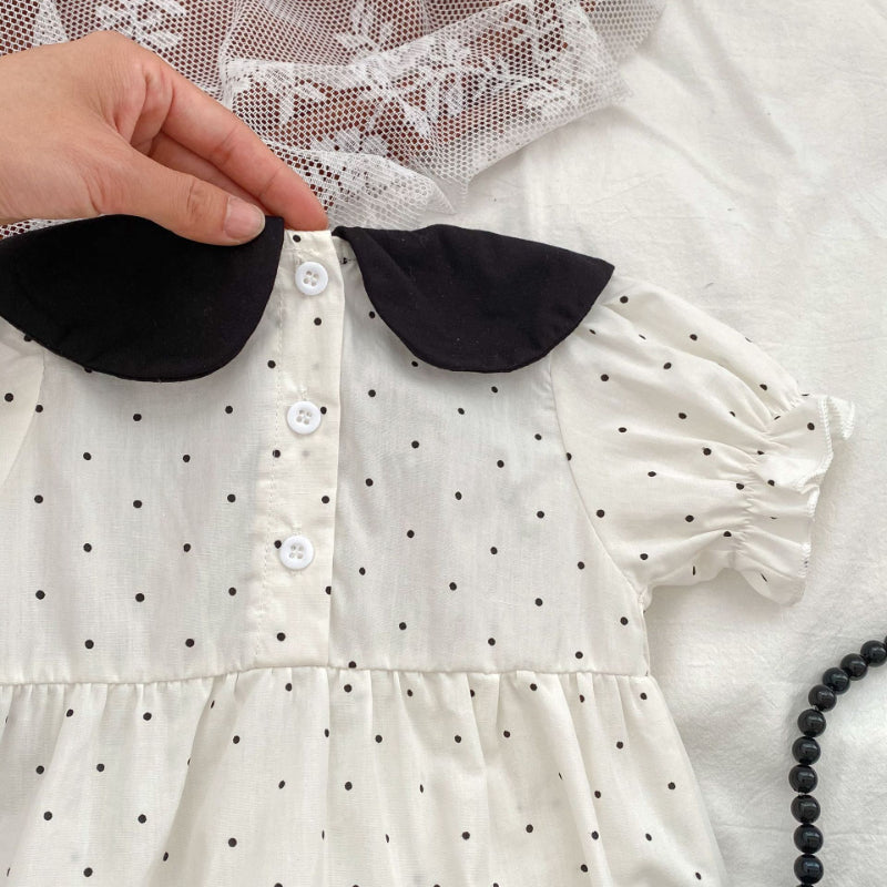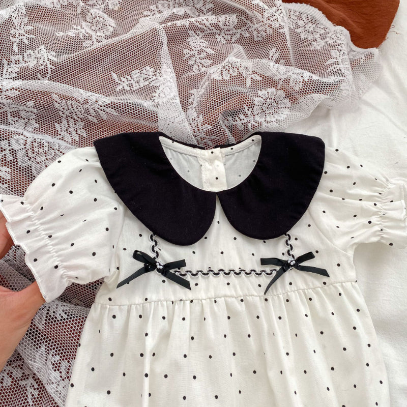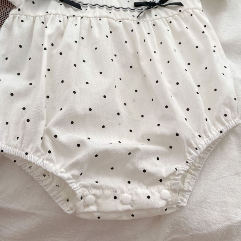 【BABY】夏新作 ドット柄蝶結び半袖ロンパースSK092209