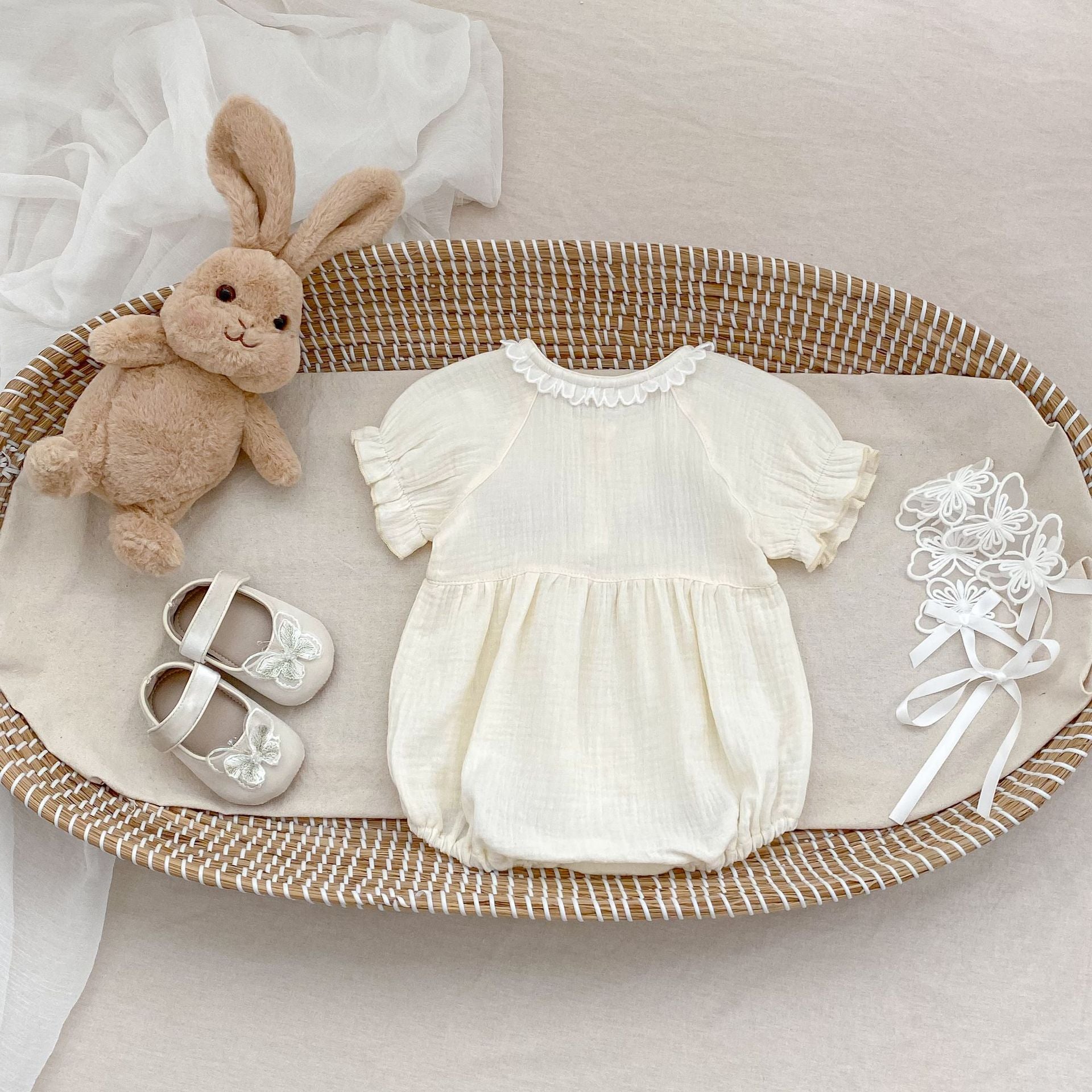 【BABY】夏新作 ナチュラルしわコットン刺繍ロンパースSK062311
