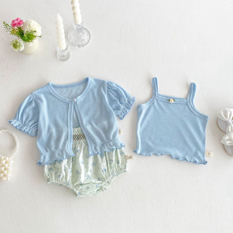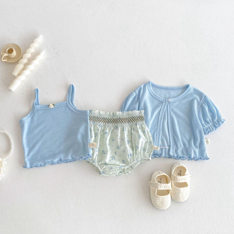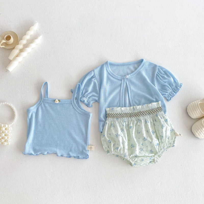 【BABY】夏新作 ニットカーディガン&タンクトップ&ショートパンツの3点SK072207