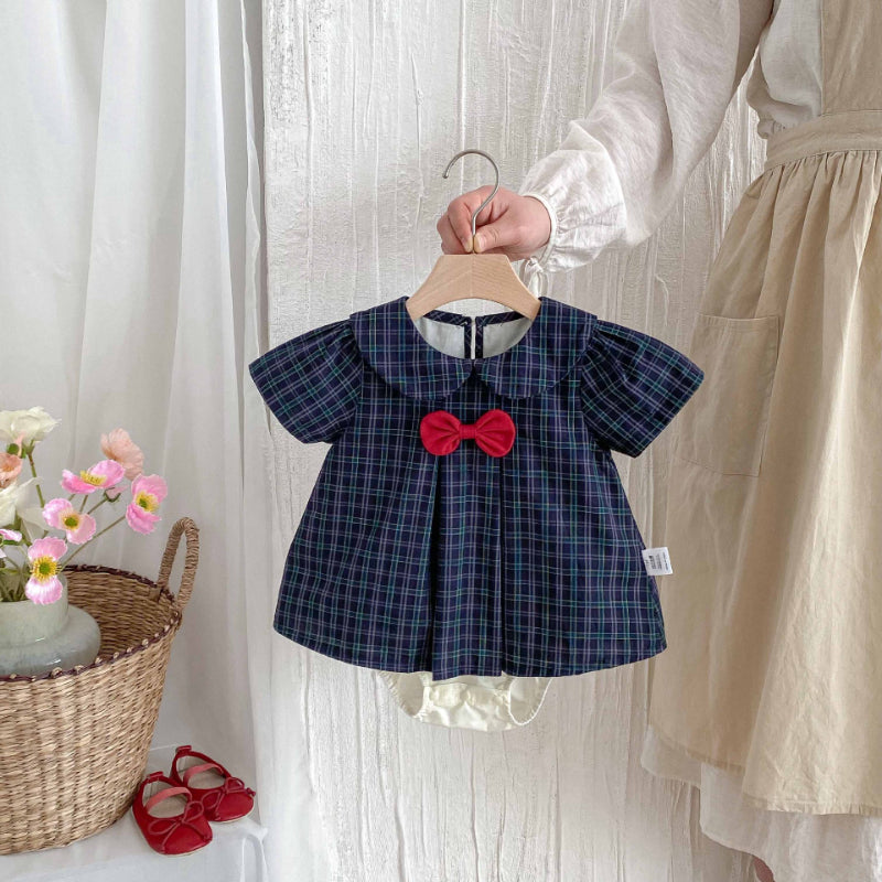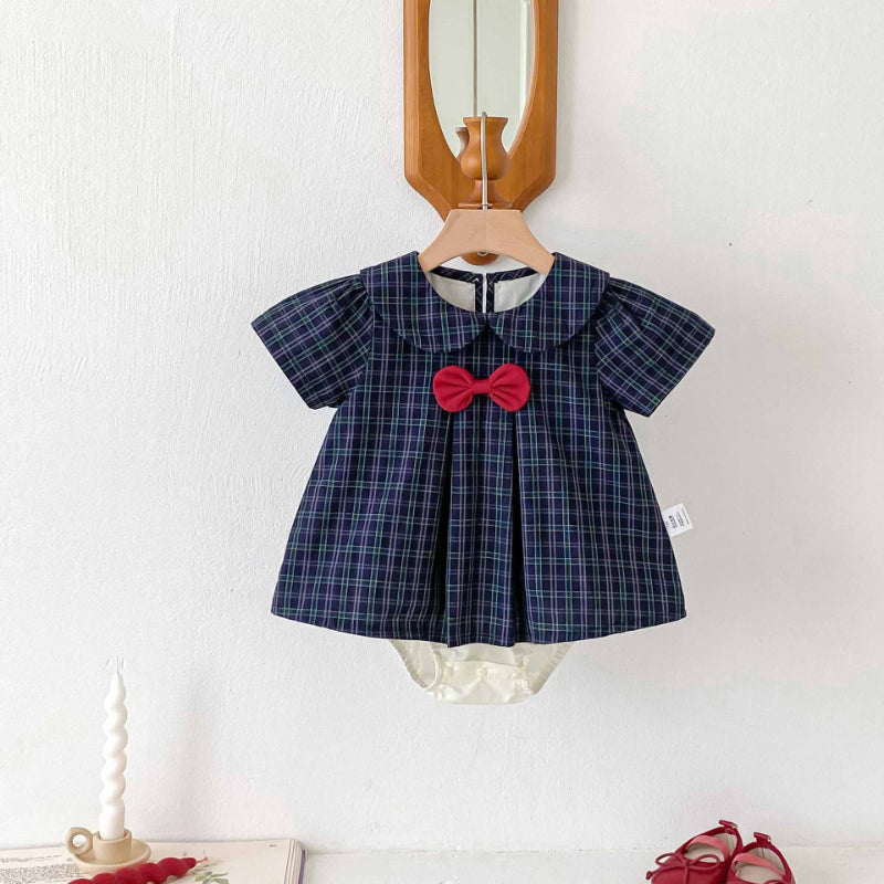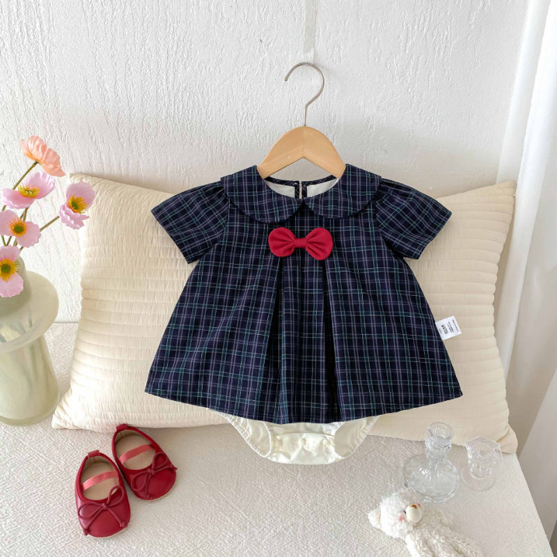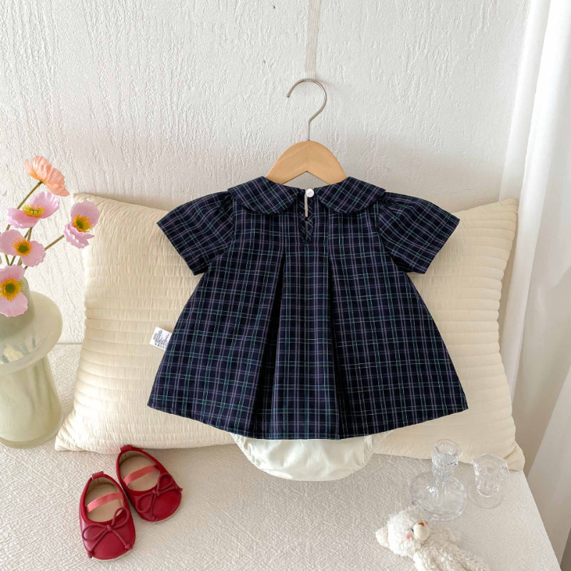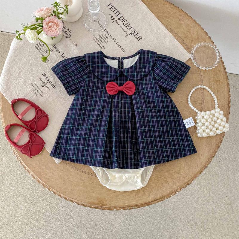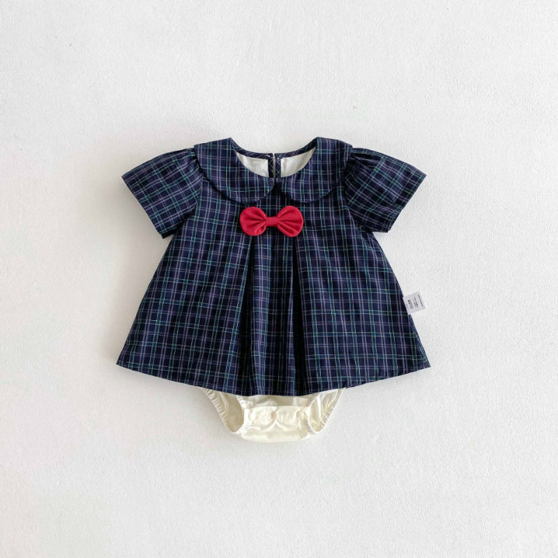 【BABY】夏新作 ネイビーチェックセーラーロンパースSK071003