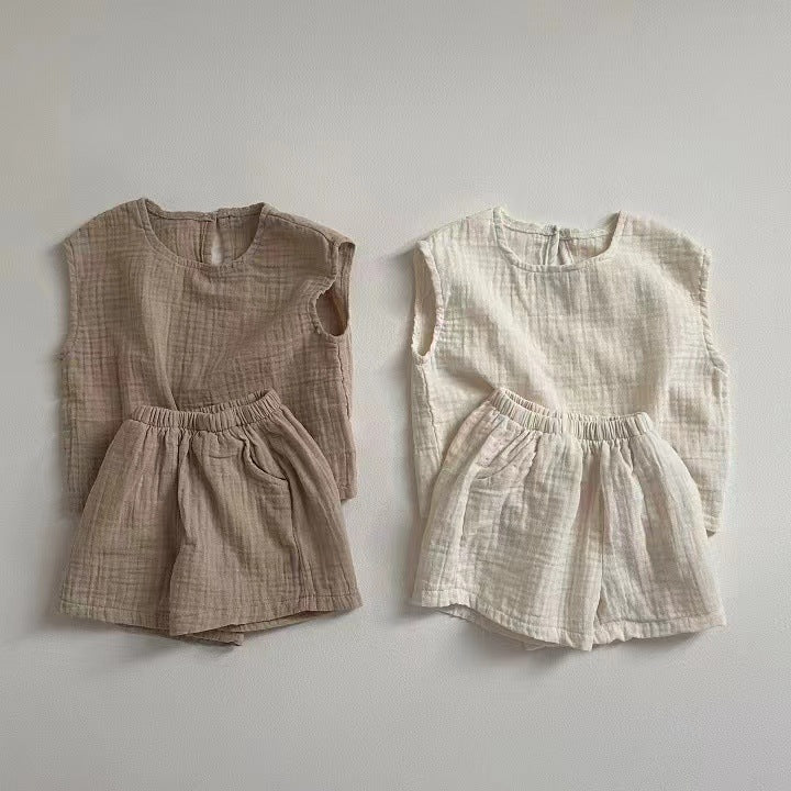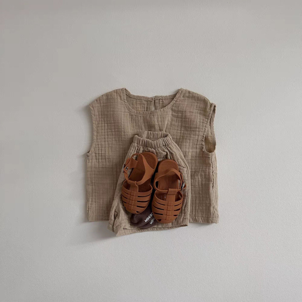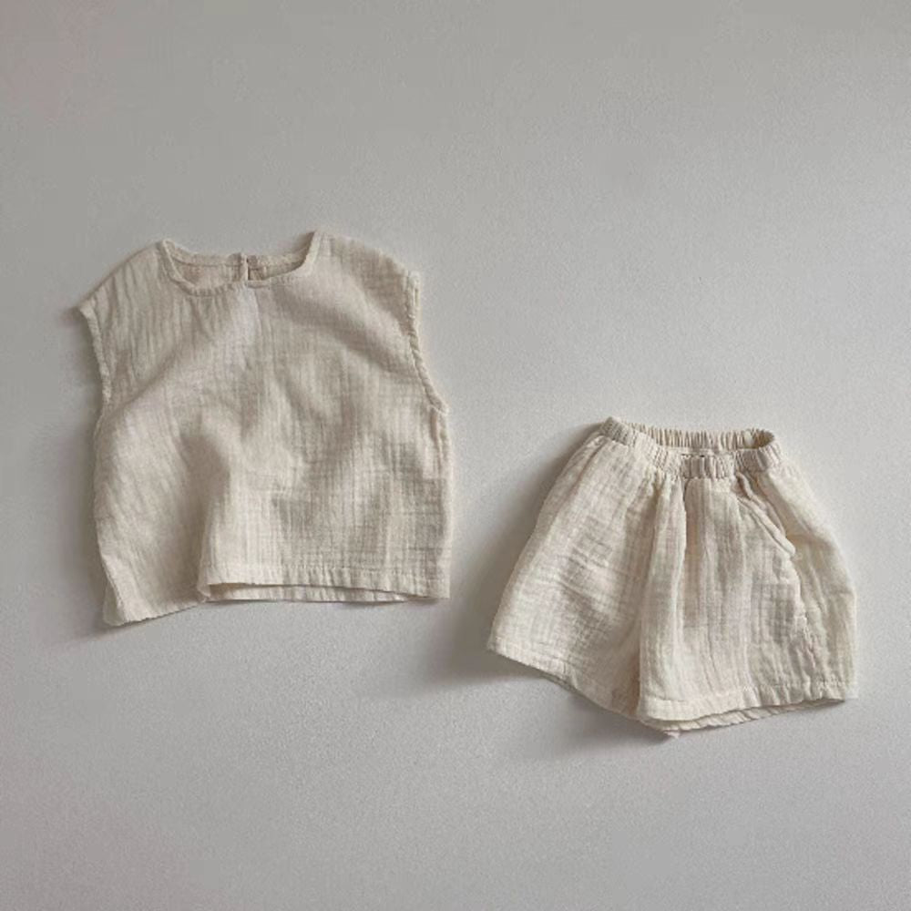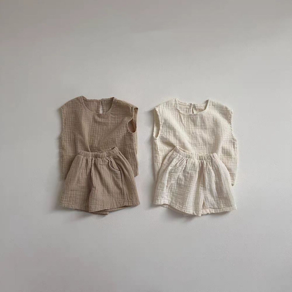 【BABY】夏新作 ノーカラーリネンセットアップSK070219