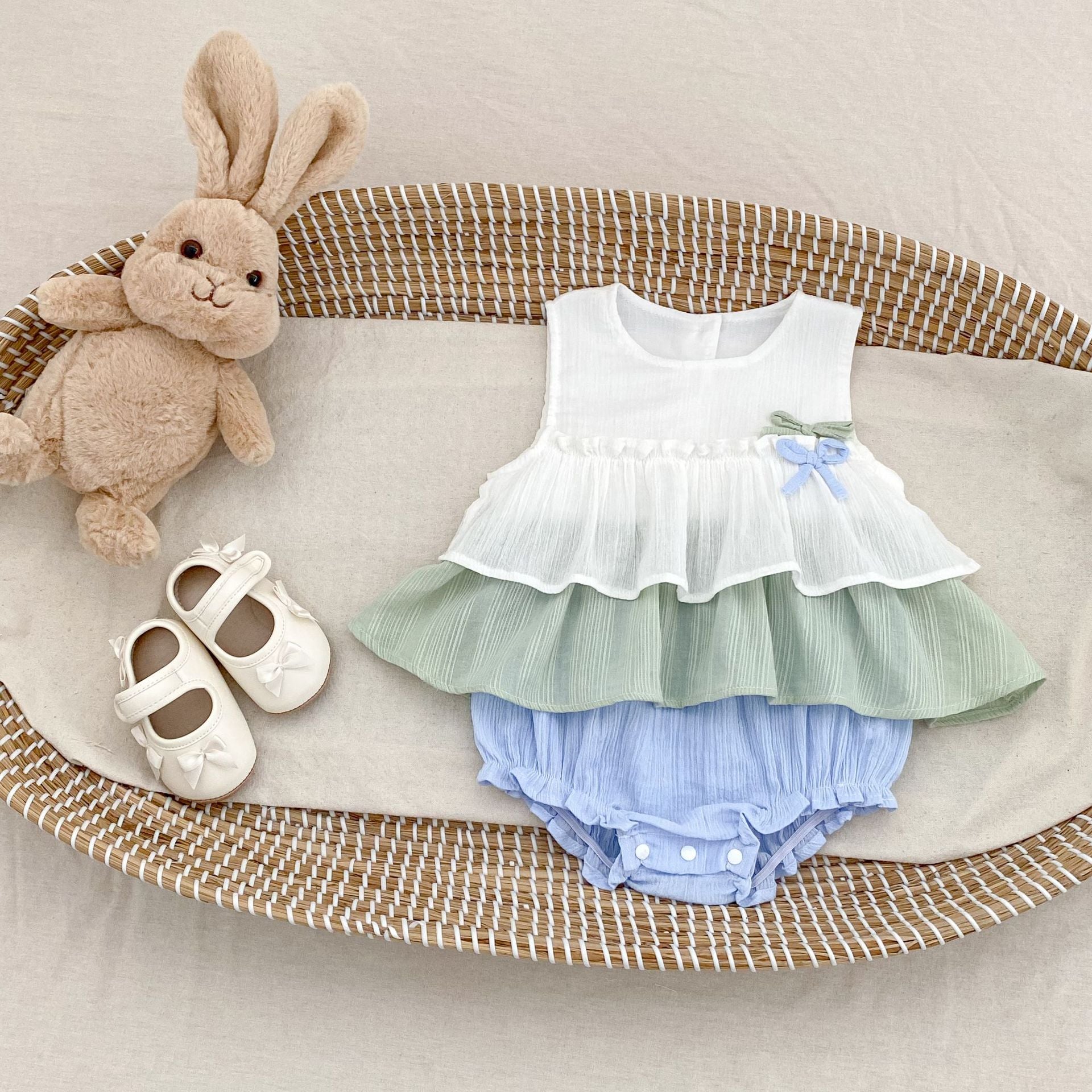 【BABY】夏新作 ノースリーブカラーバリロンパースSK071519