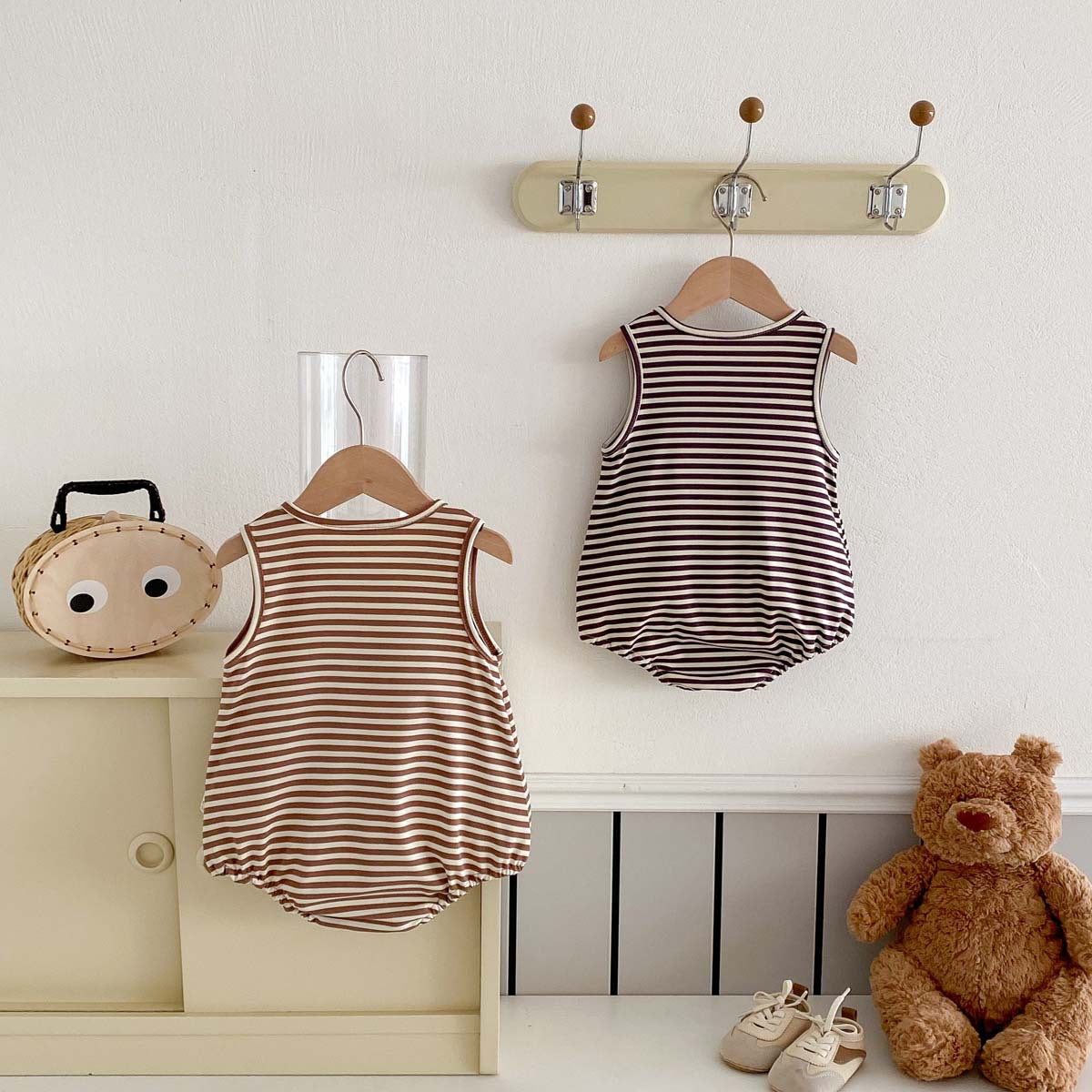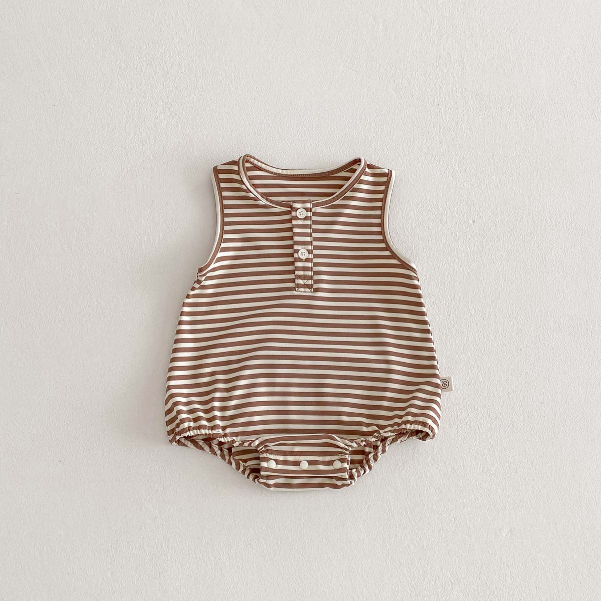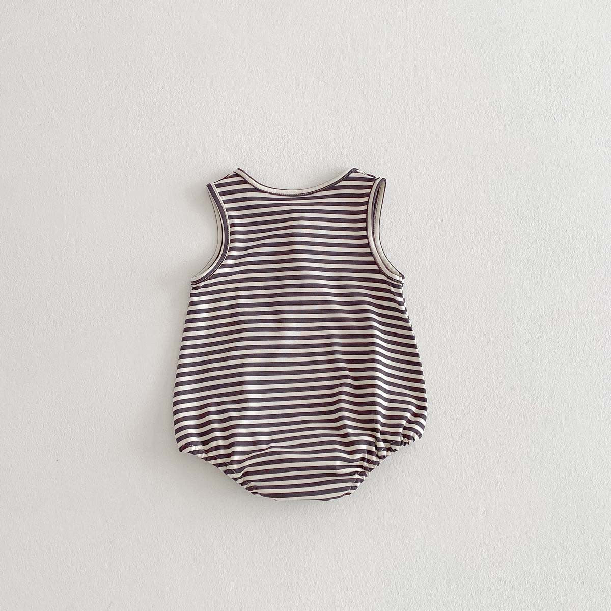 【BABY】夏新作 ノースリーブストライプベビーロンパースSK062716