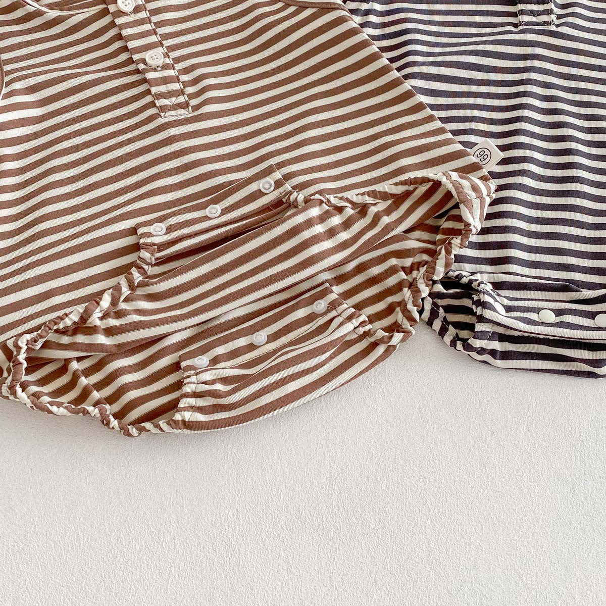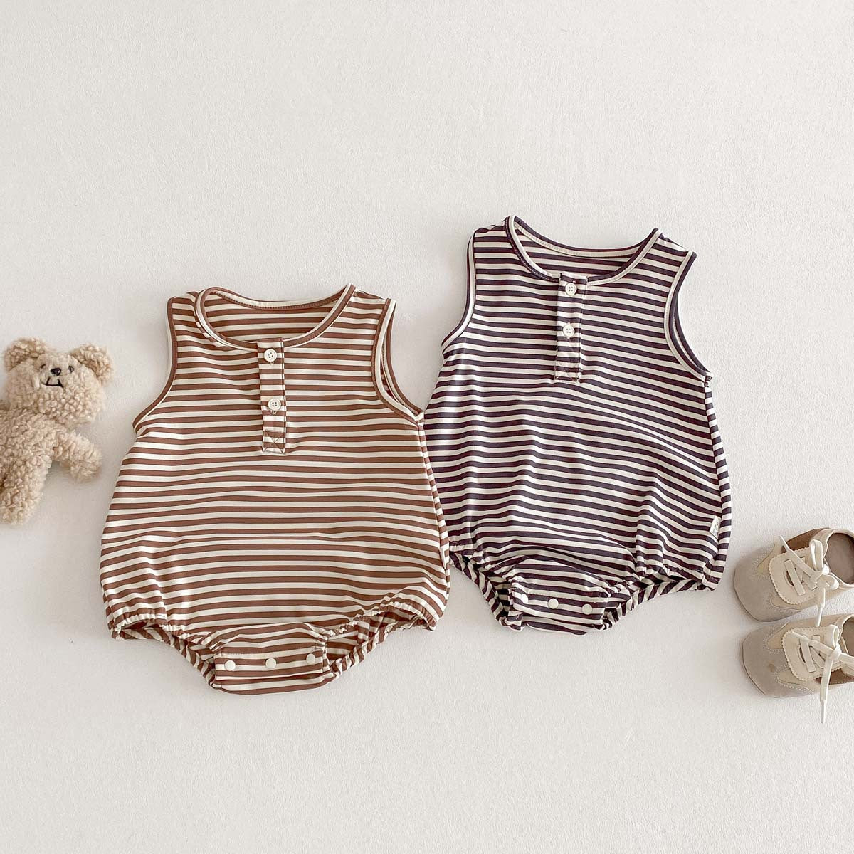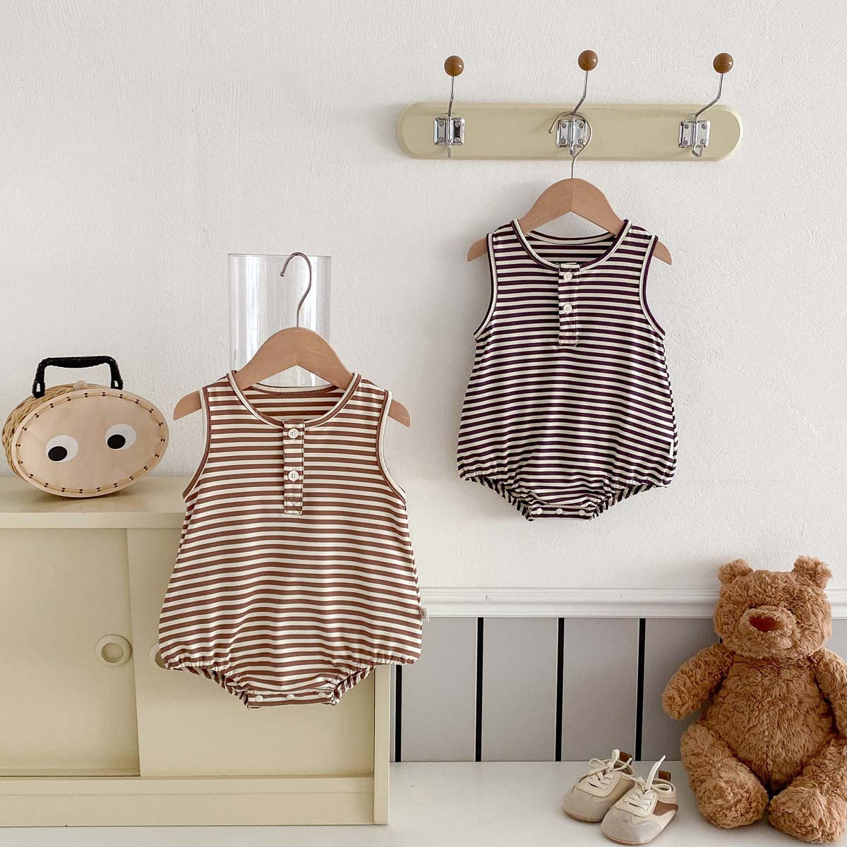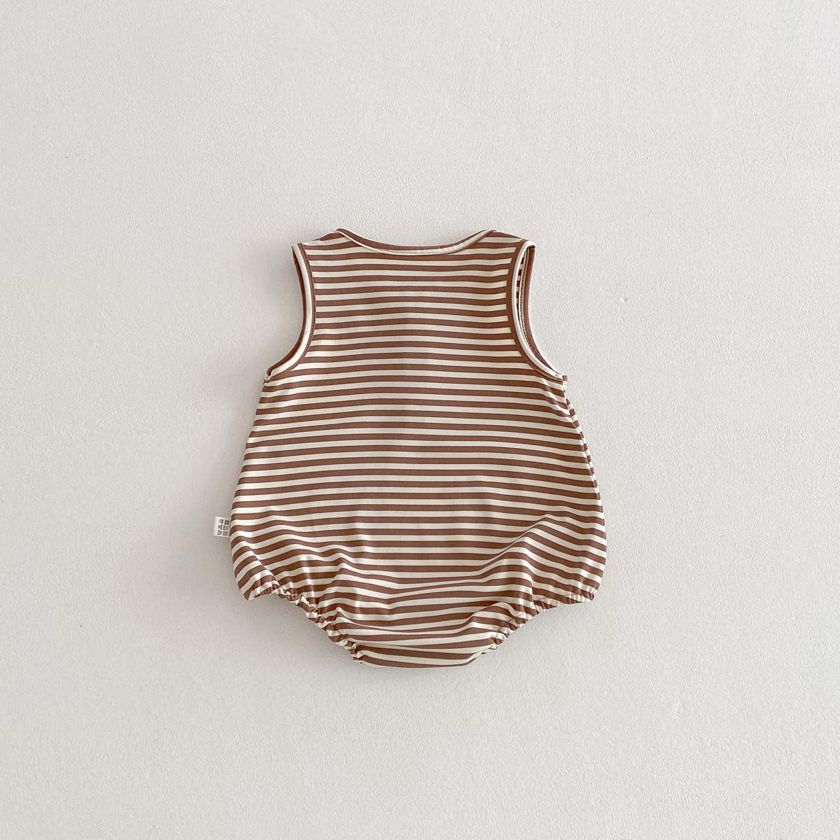 【BABY】夏新作 ノースリーブストライプベビーロンパースSK062716
