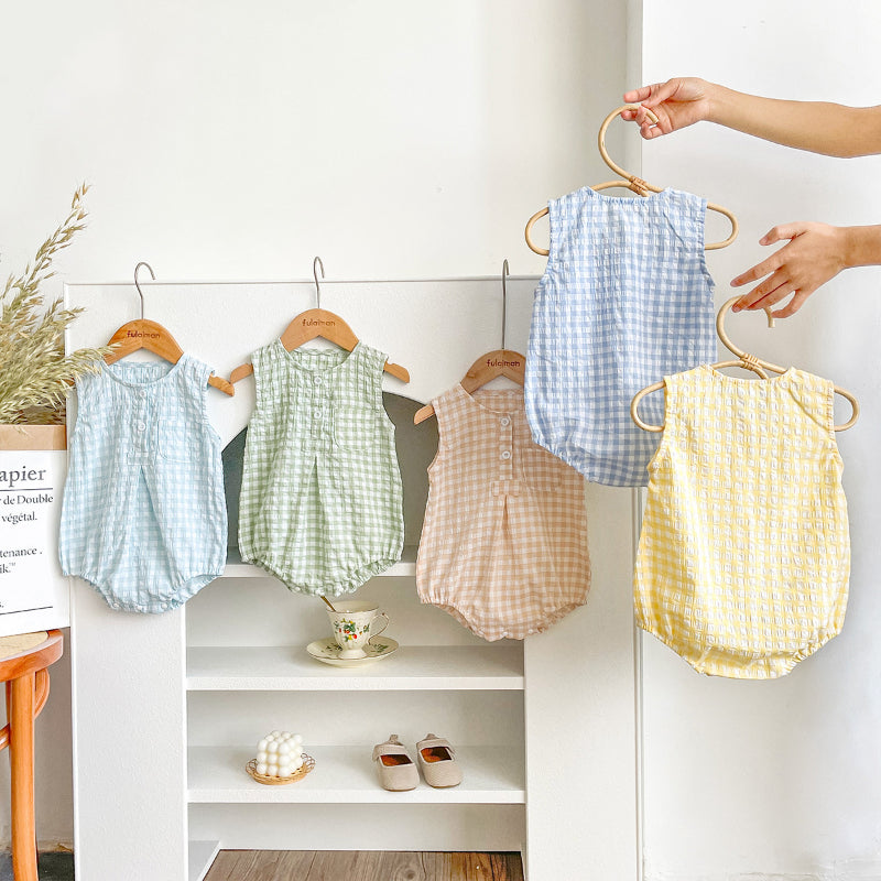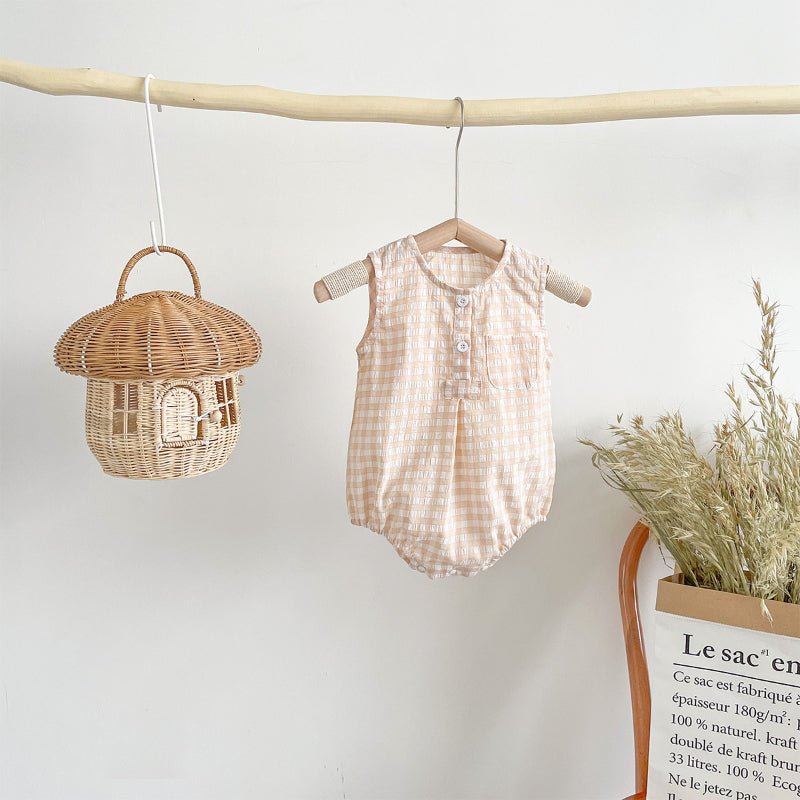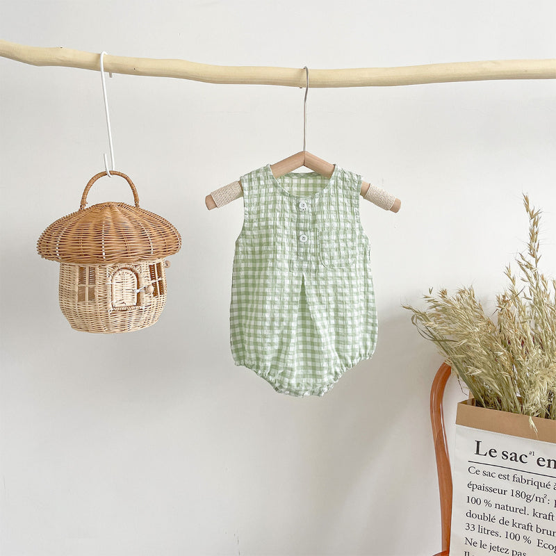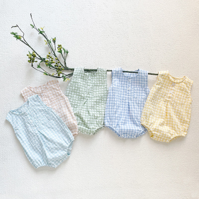 【BABY】夏新作 ノースリーブチェックロンパースSK072221