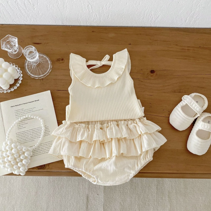 【BABY】夏新作 ノースリーブフリル襟トップス&2層スカートパンツSK092201