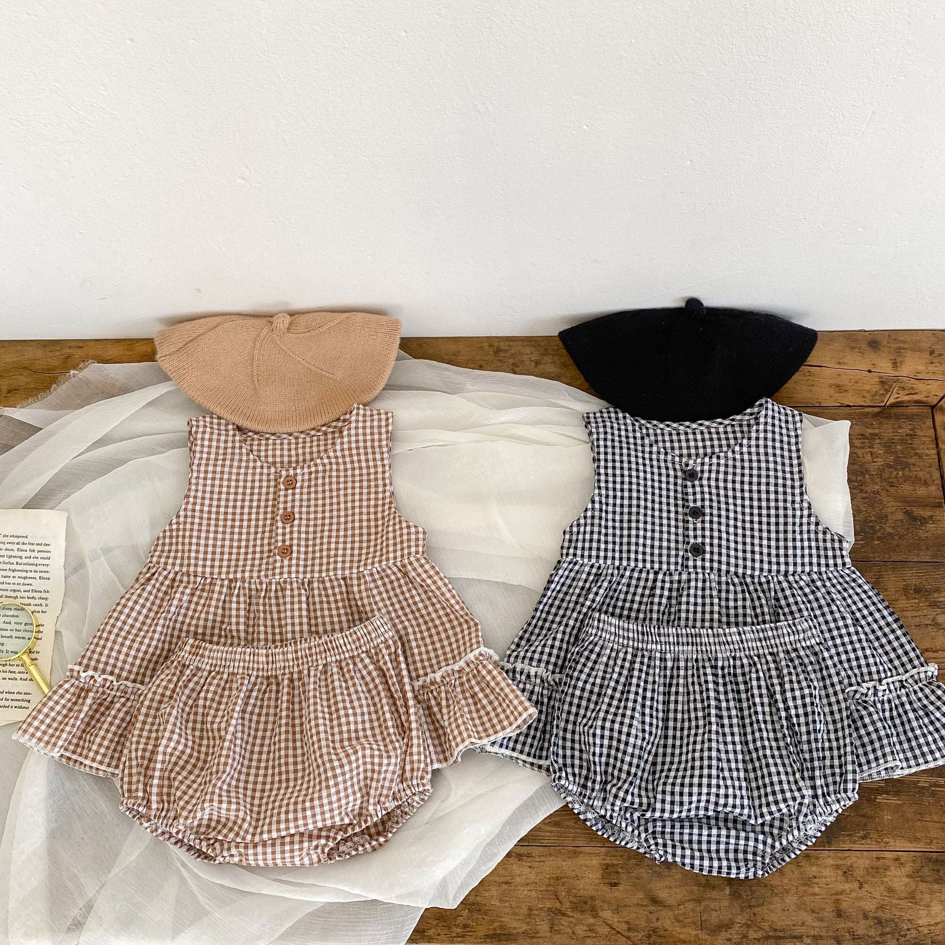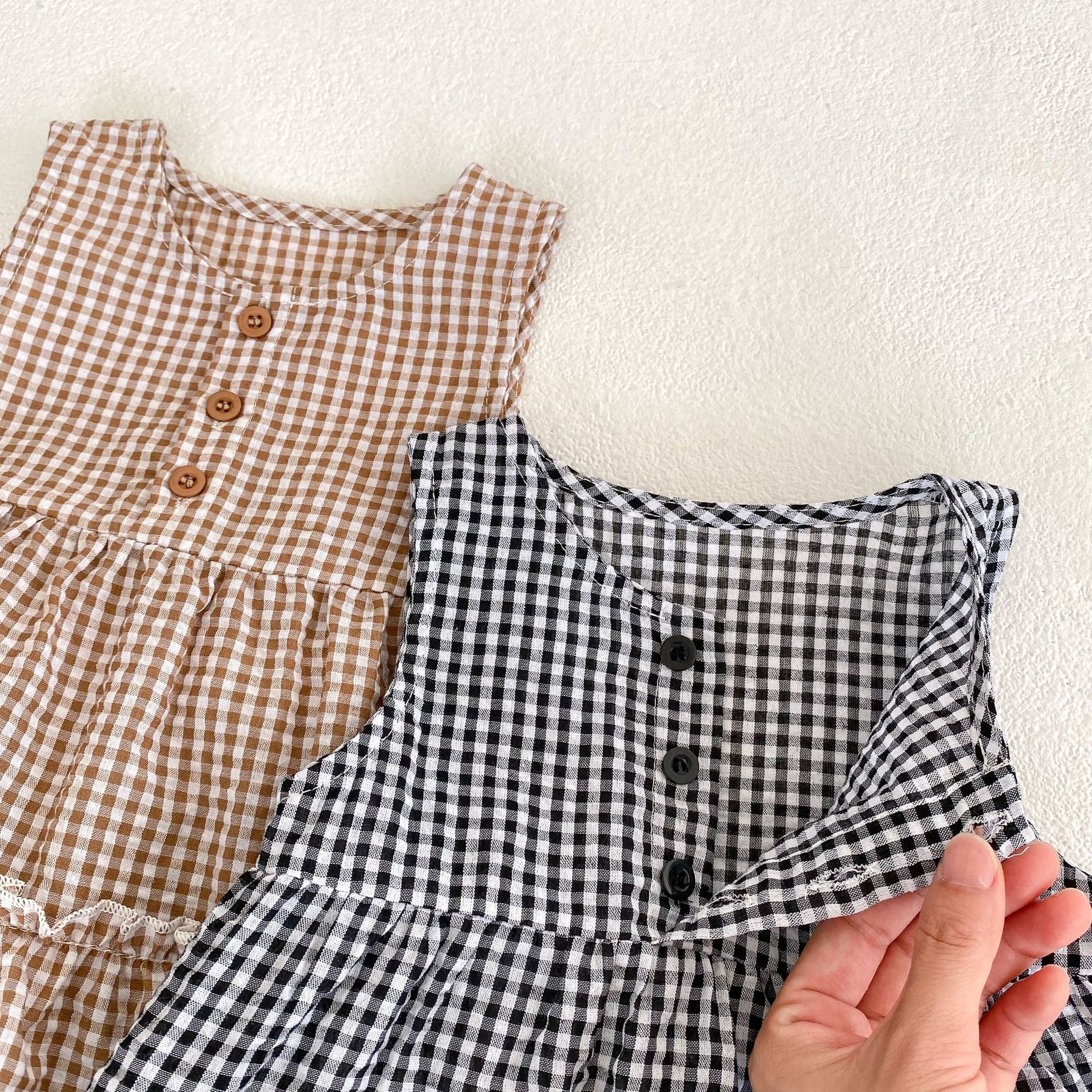 【BABY】夏新作 ノースリーブボタンチェックセットアップSK071606