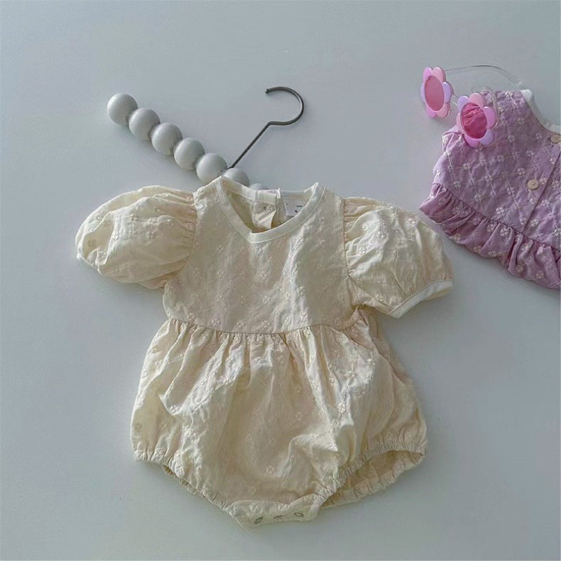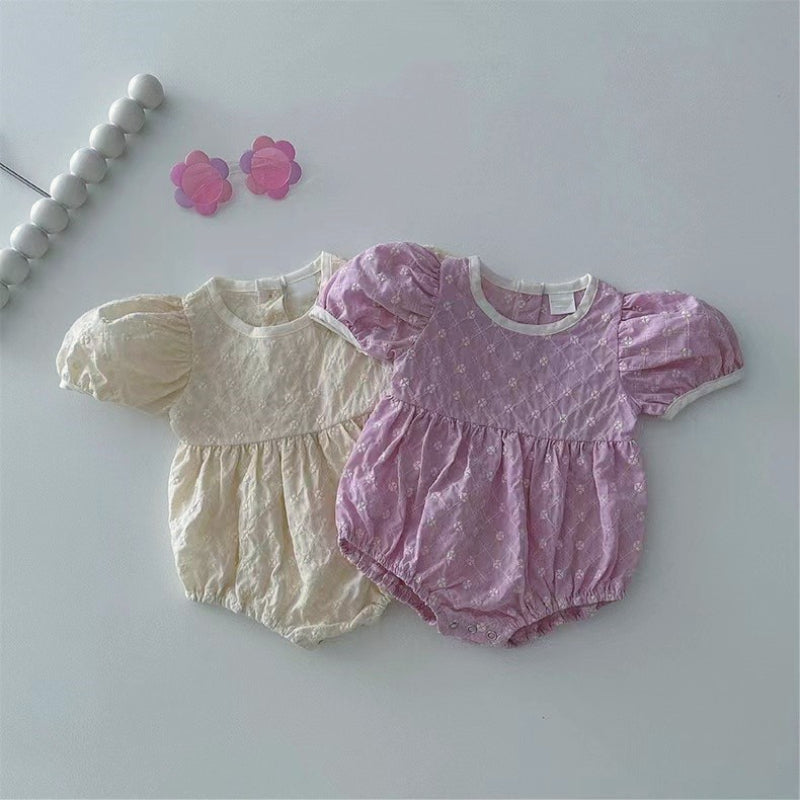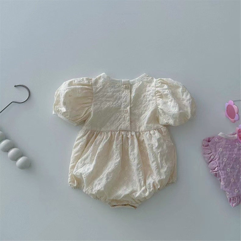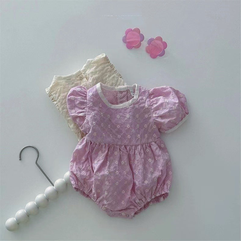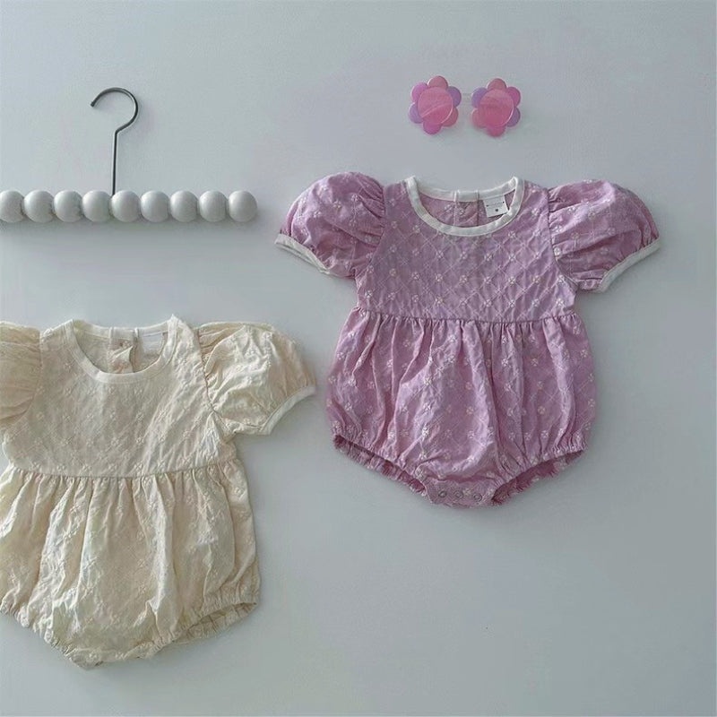 【BABY】夏新作 パフスリーブ刺繍ロンパースSK090312