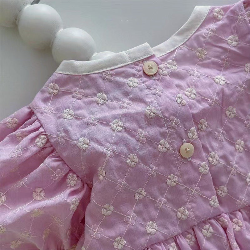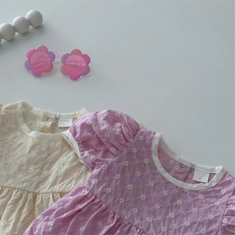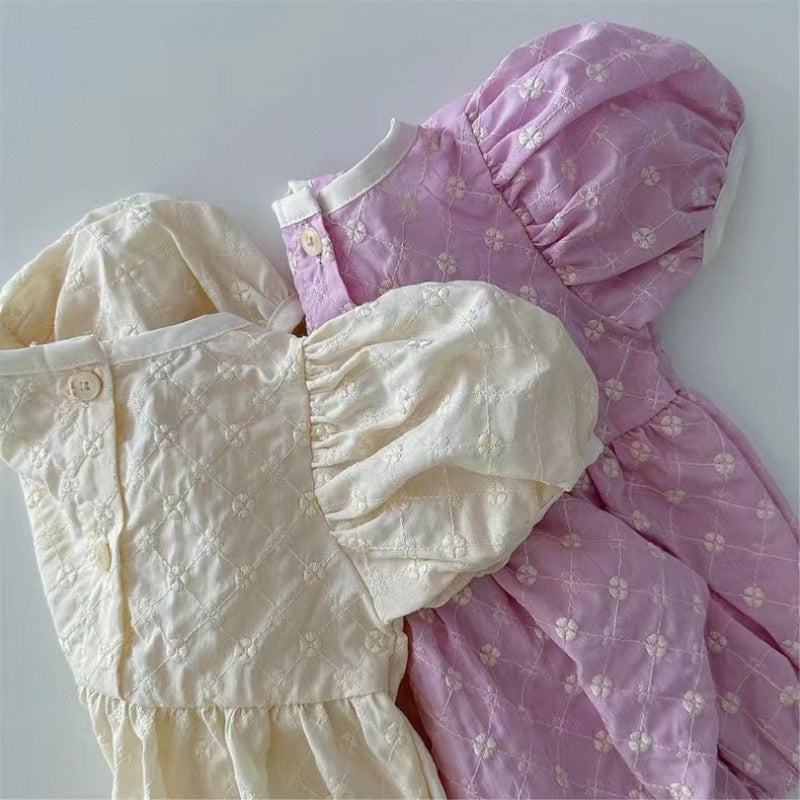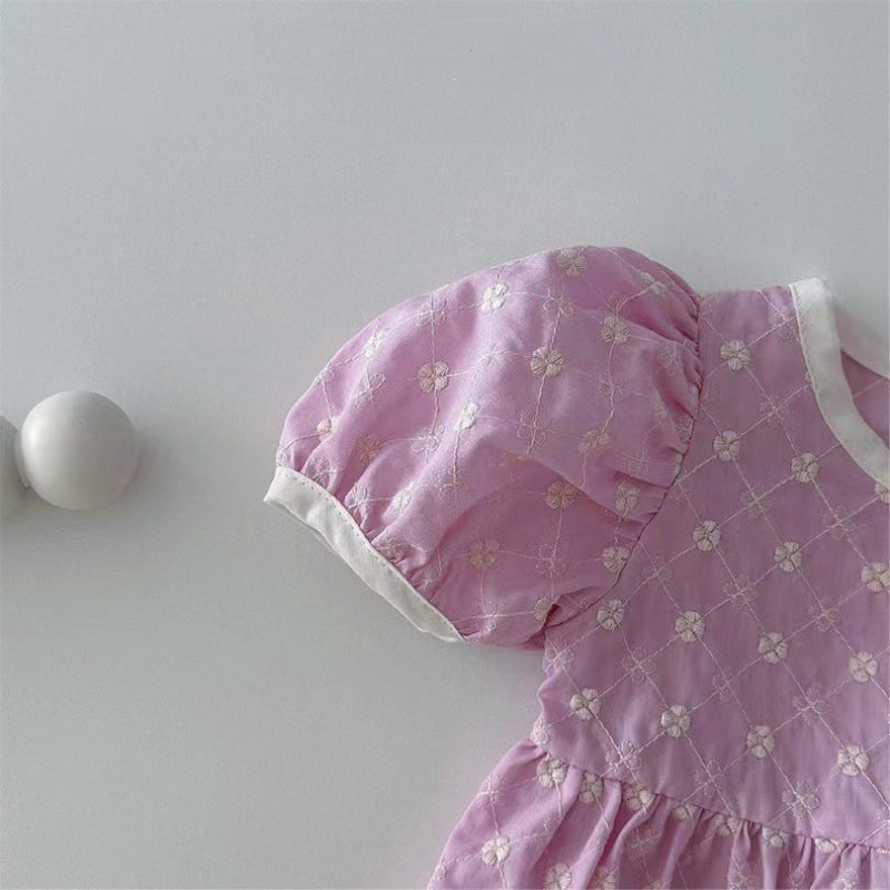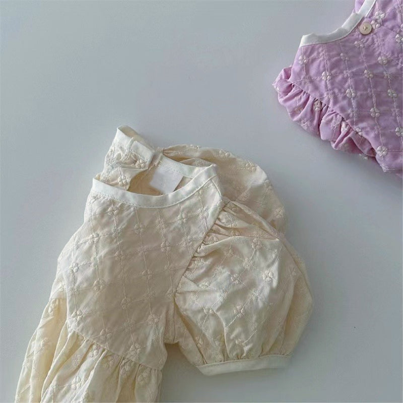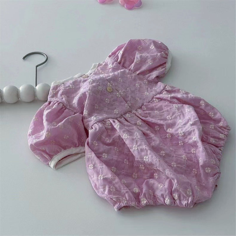 【BABY】夏新作 パフスリーブ刺繍ロンパースSK090312