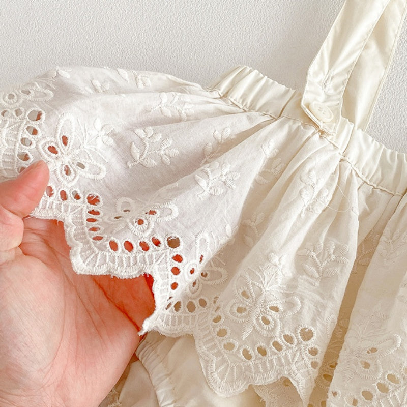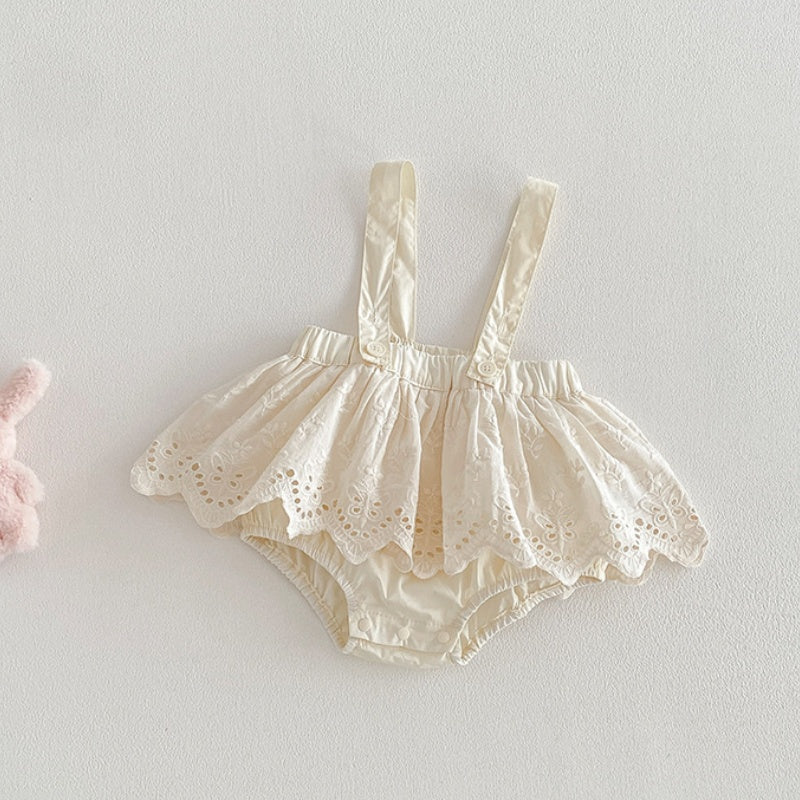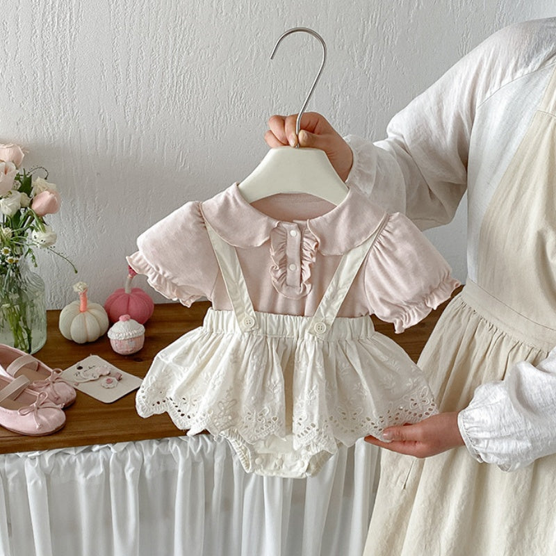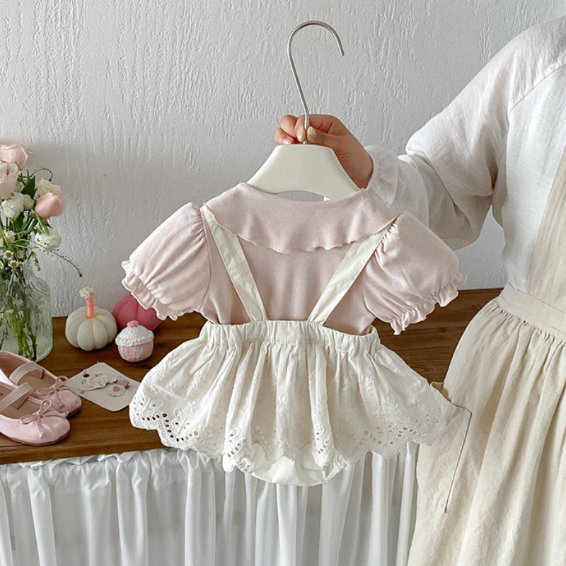 【BABY】夏新作 パフスリーブTシャツ&レースサロペットショートパンツSK104817