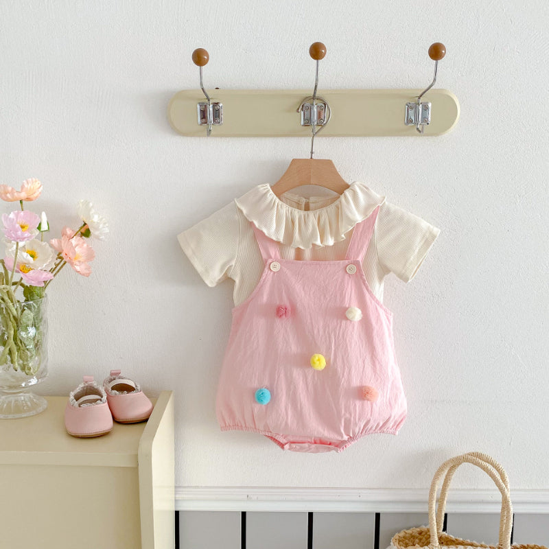 【BABY】夏新作 ピンクサロペット&トップスセットSK082603