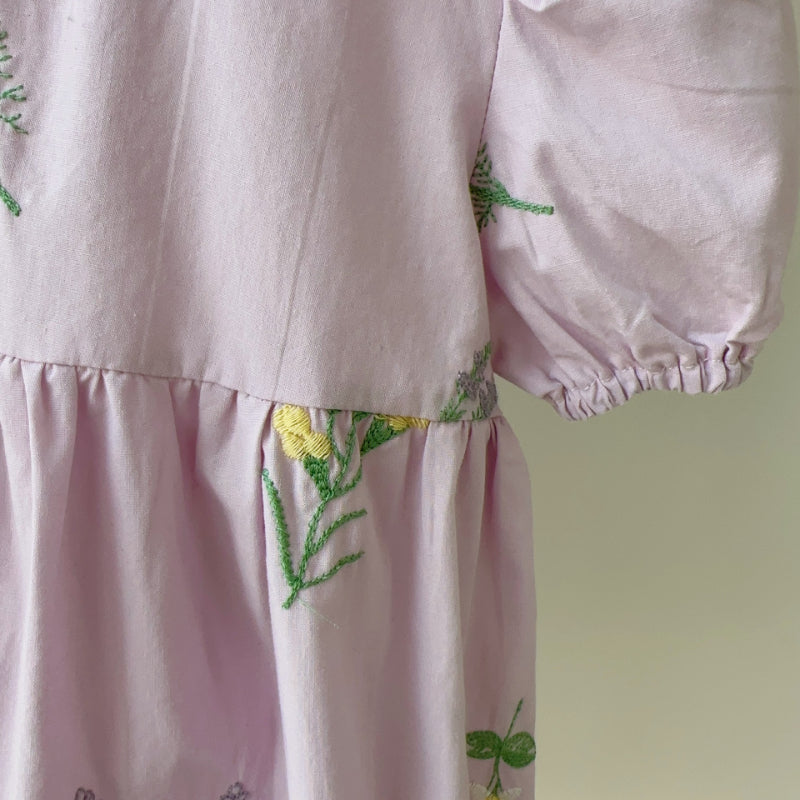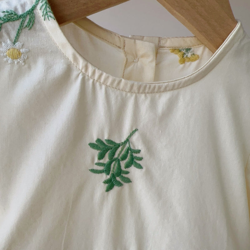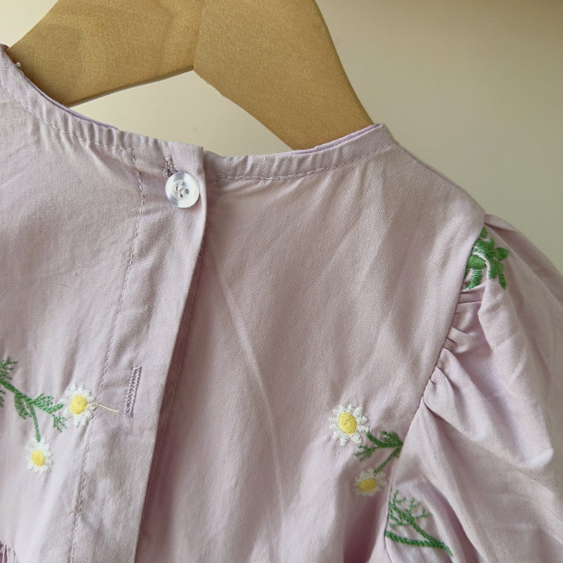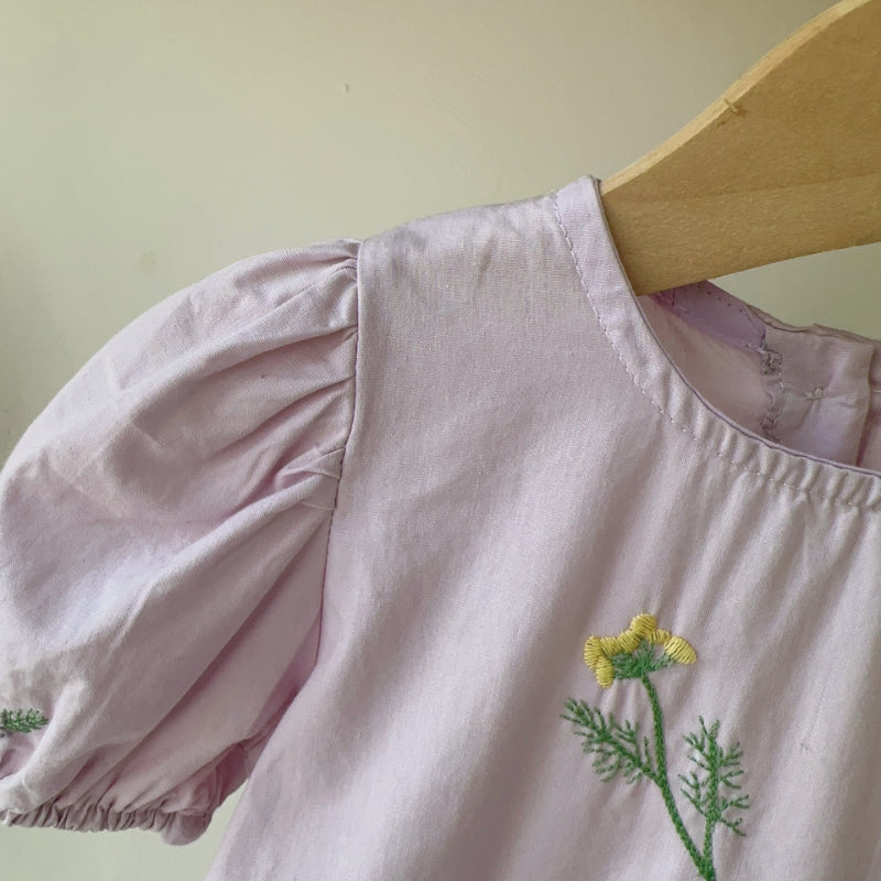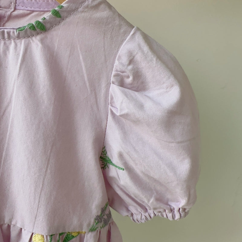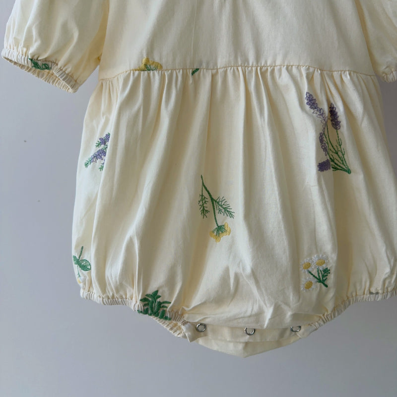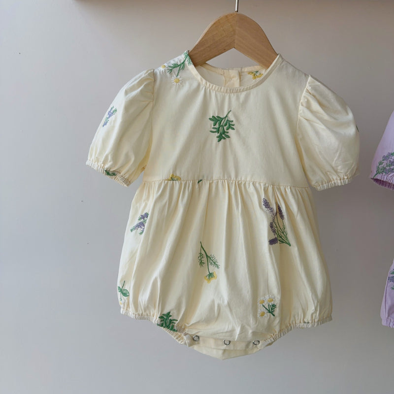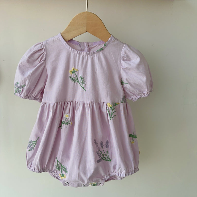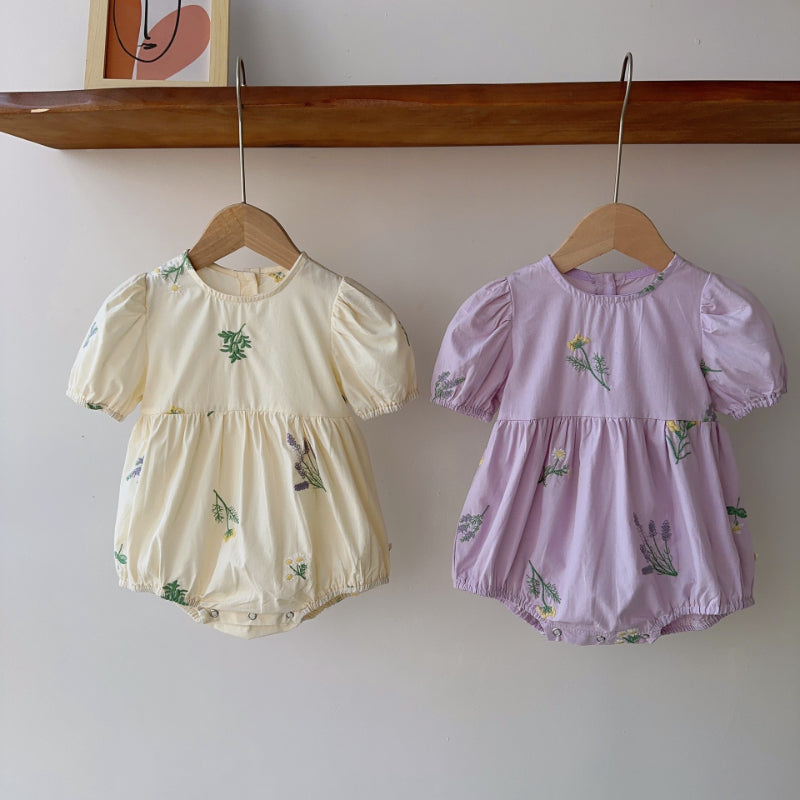 【BABY】夏新作 フラワー刺繍パフスリーブロンパースSK082312