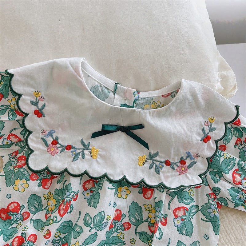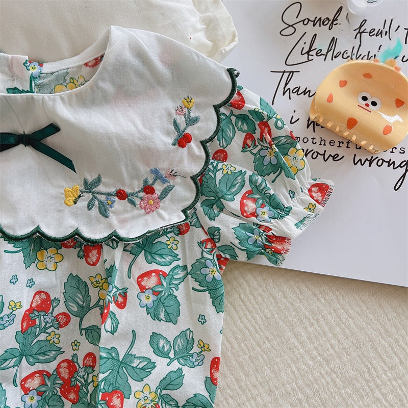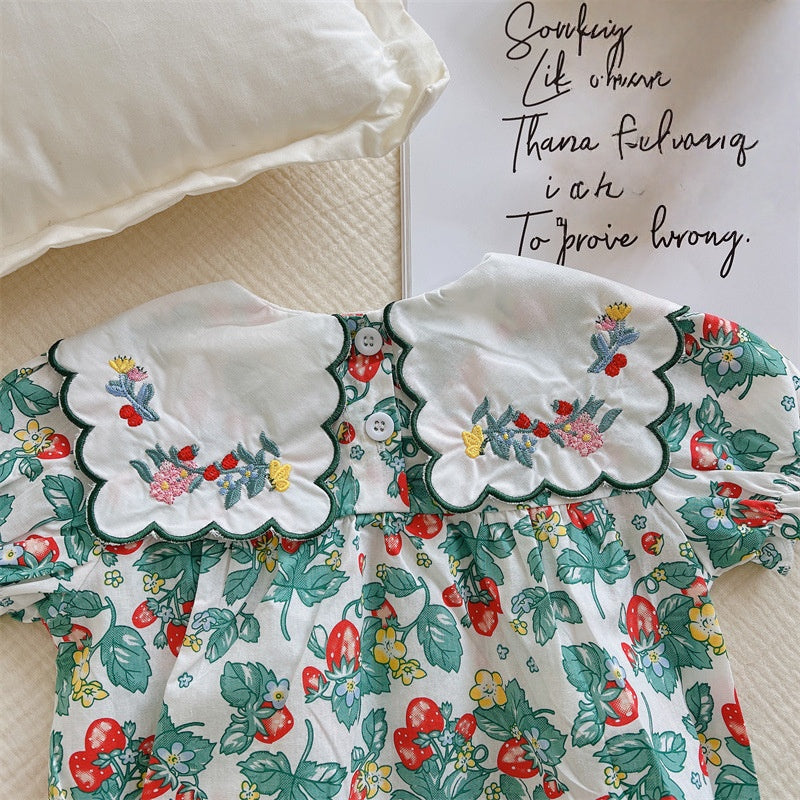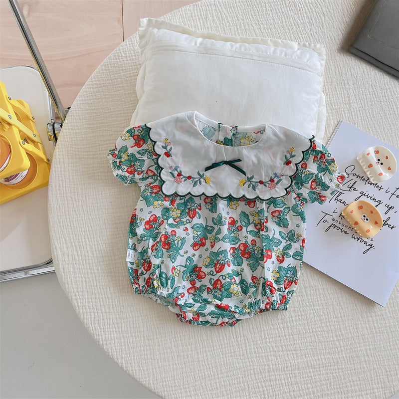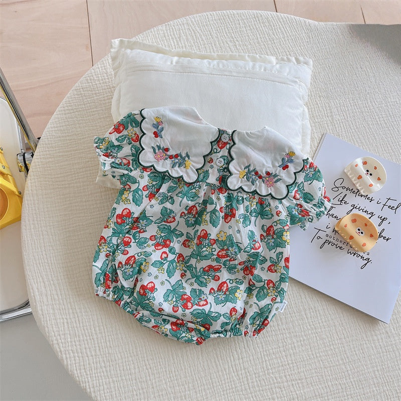【BABY】夏新作 フラワー刺繍ロンパースSK092105