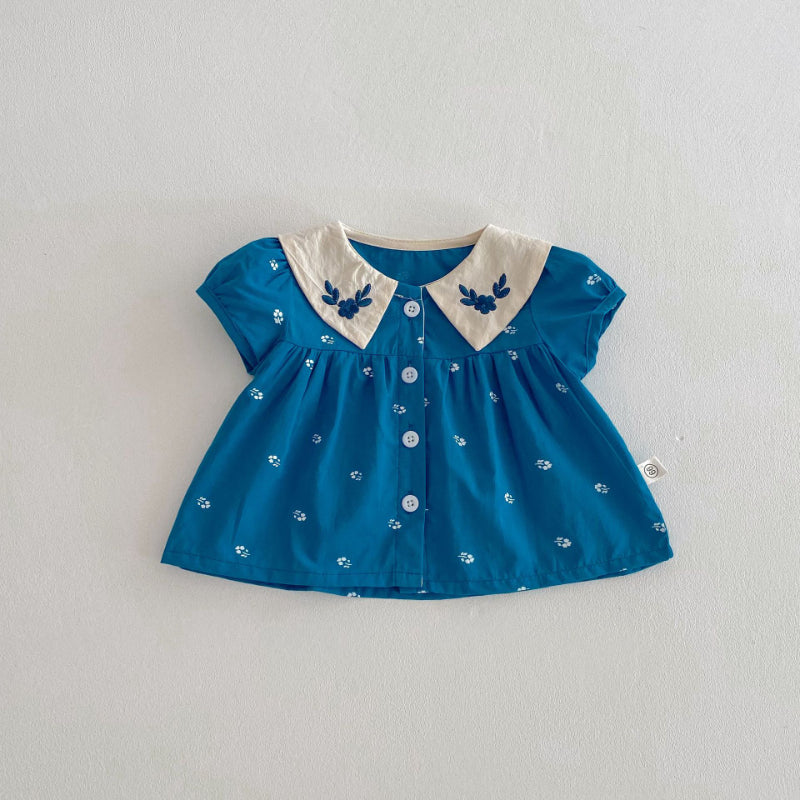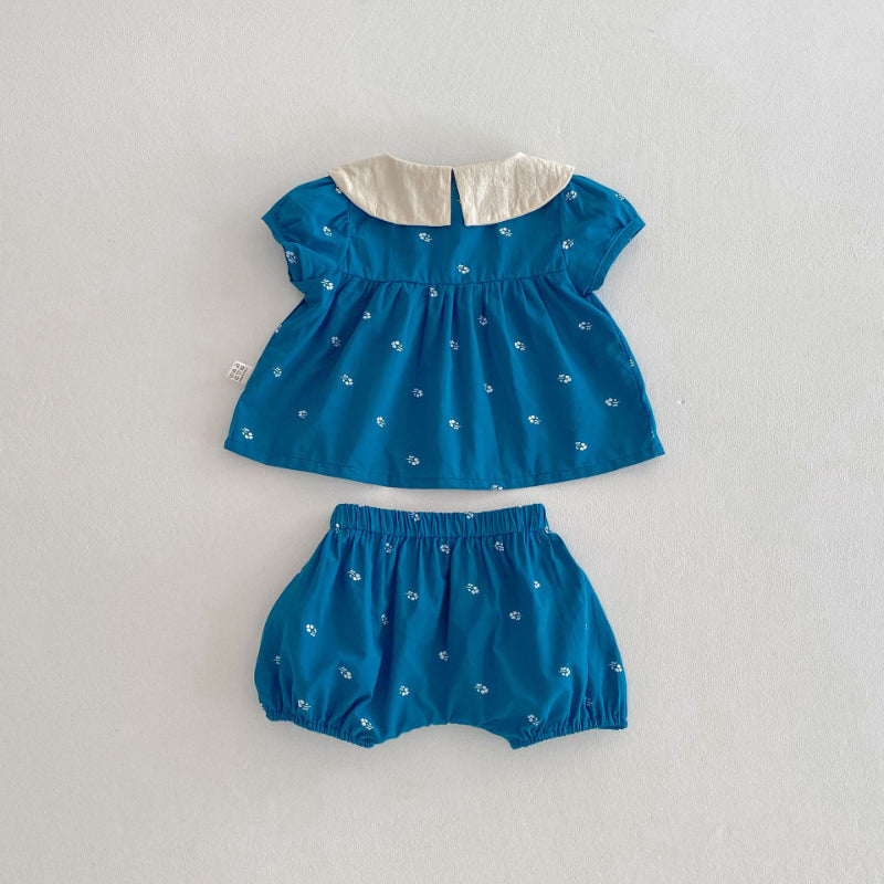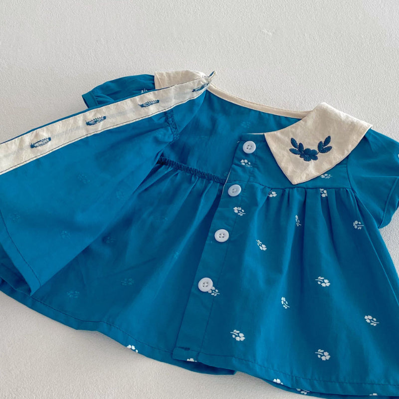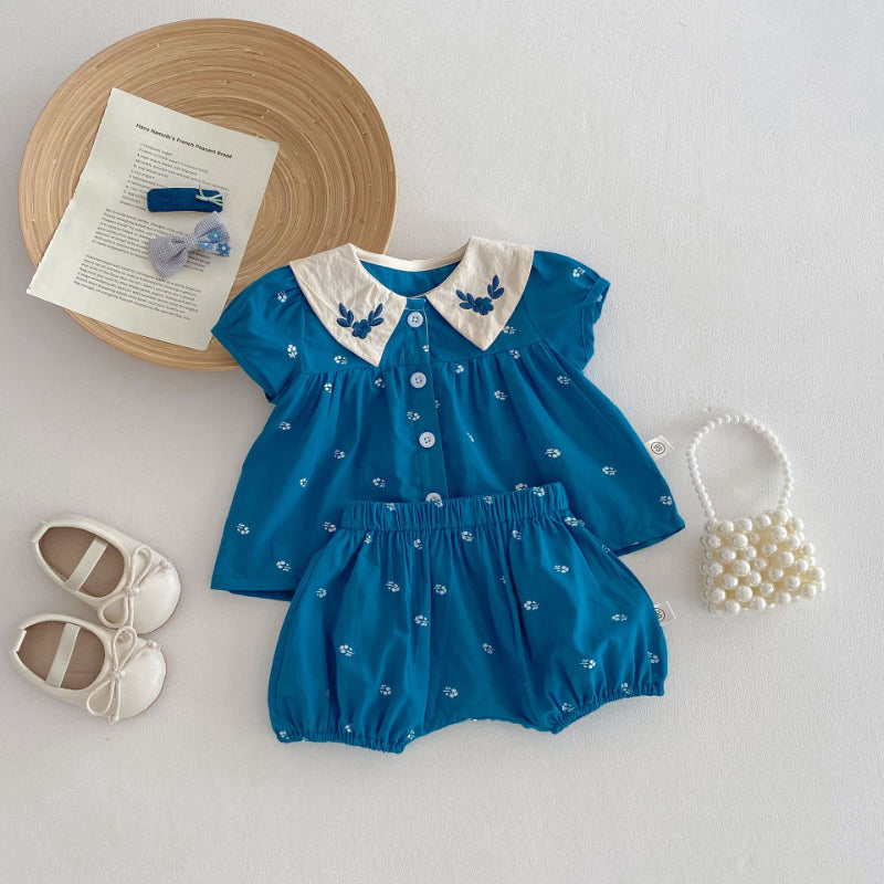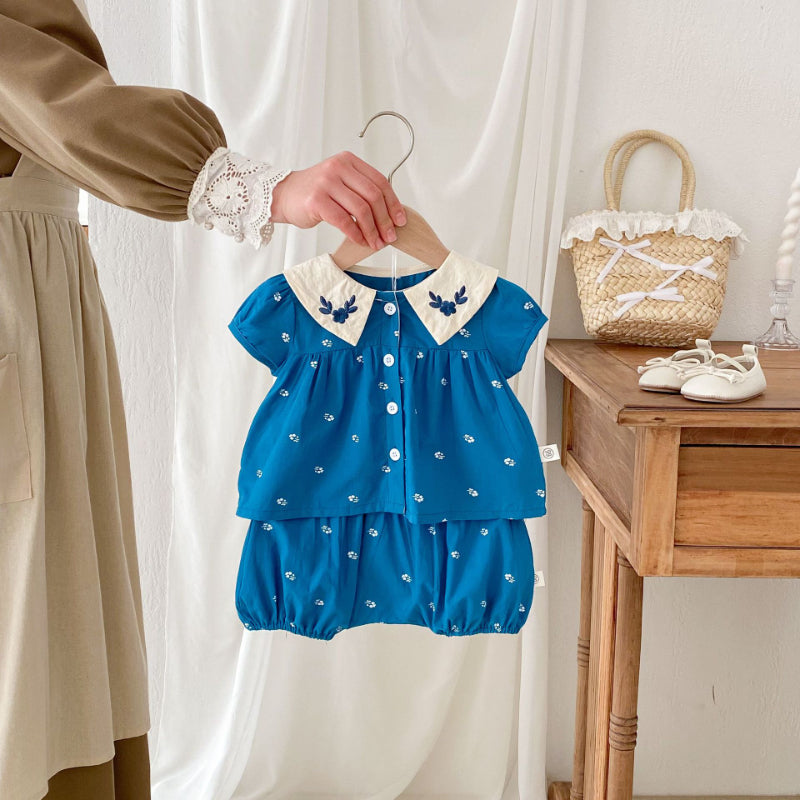 【BABY】夏新作 フラワー刺繍襟セットアップSK072604