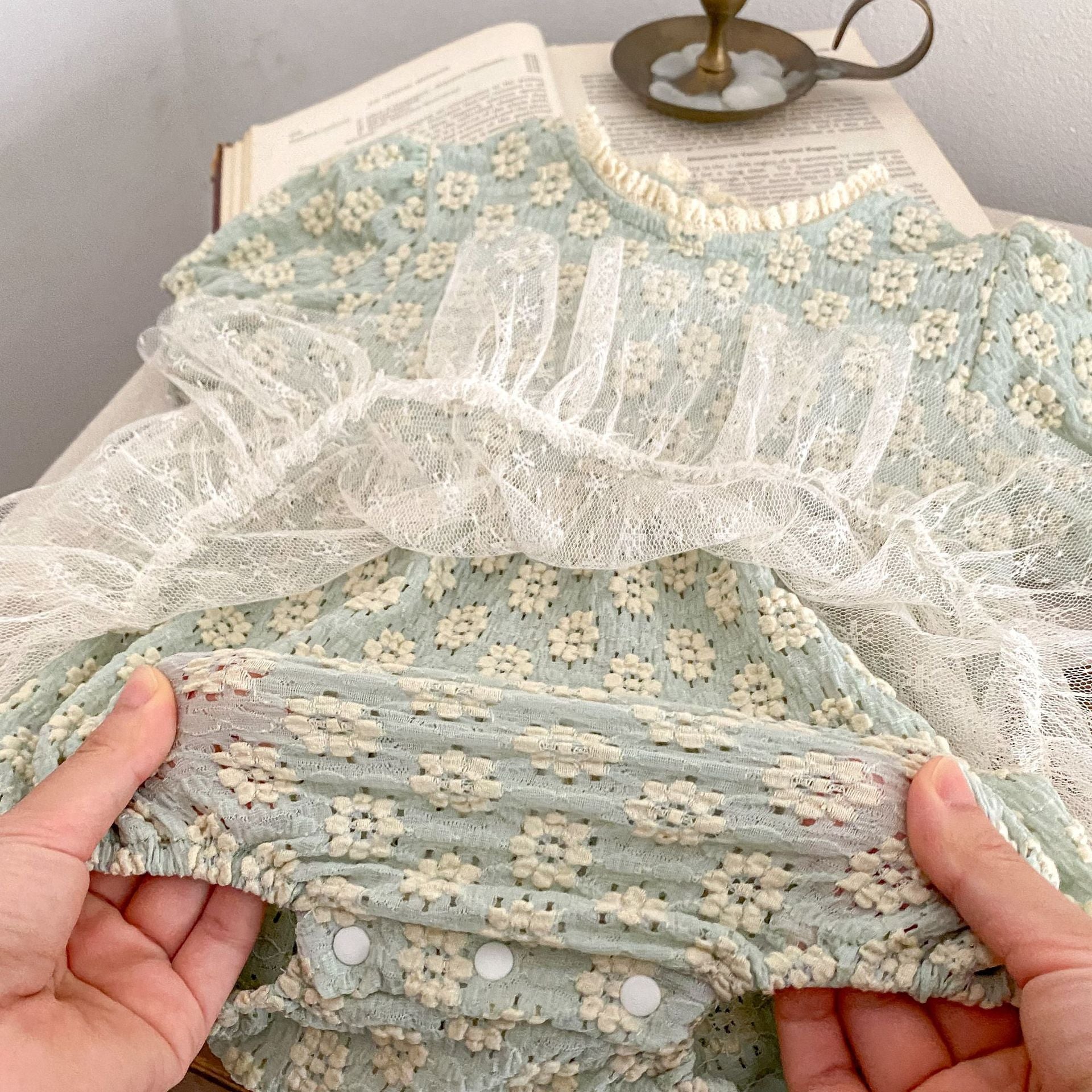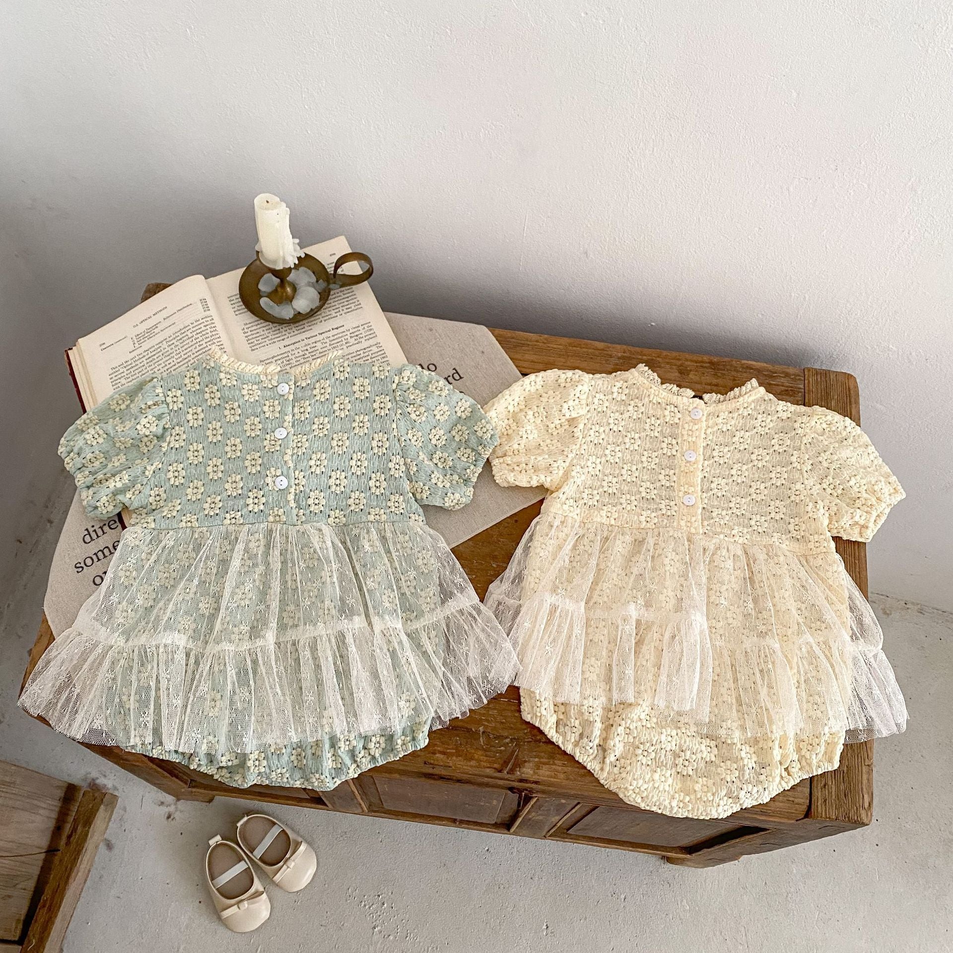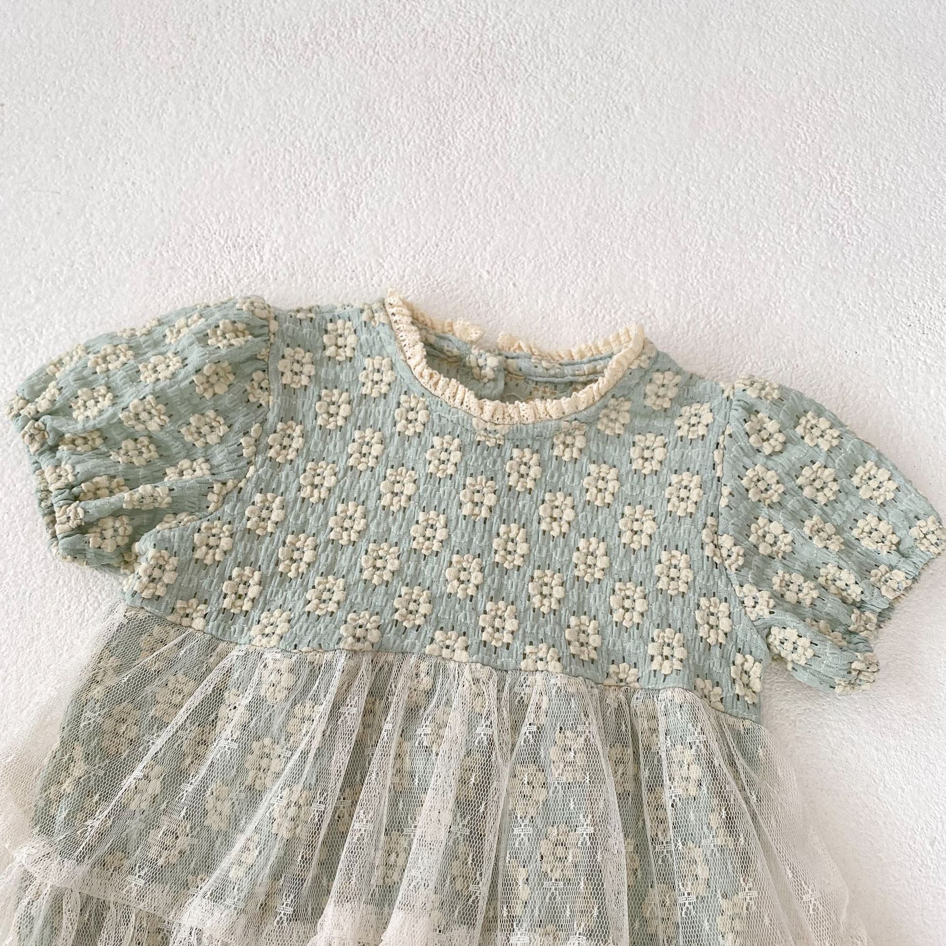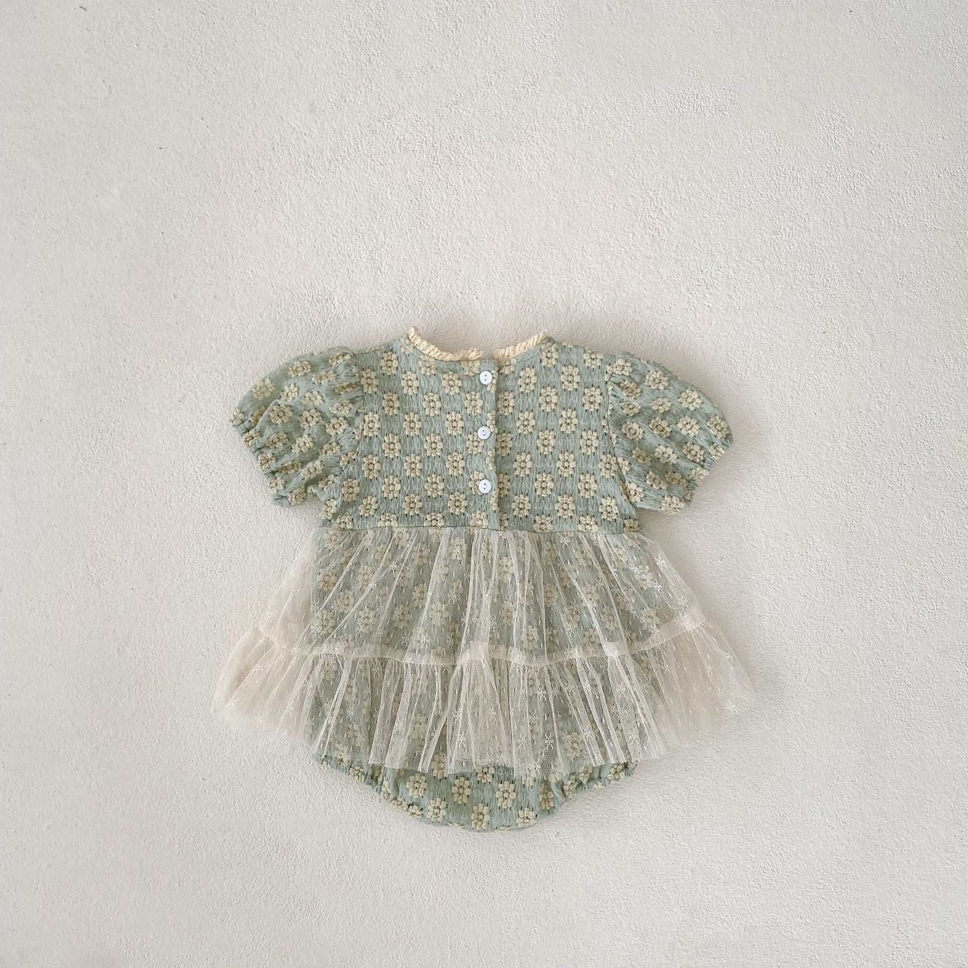 【BABY】夏新作 フラワー刺繡ワンピース風ロンパースSK063104