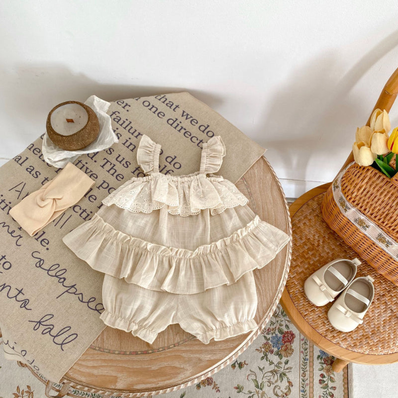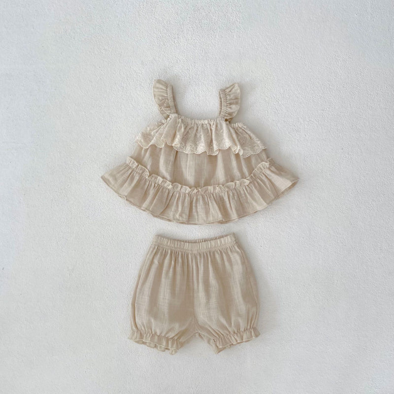 【BABY】夏新作 フリルキャミ&無地ショートパンツセットアップSK071918