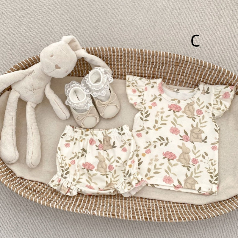 【BABY】夏新作 フリル袖トップス&レースショートパンツSK080828
