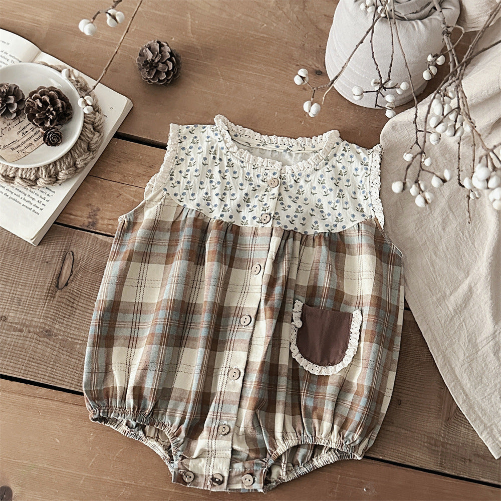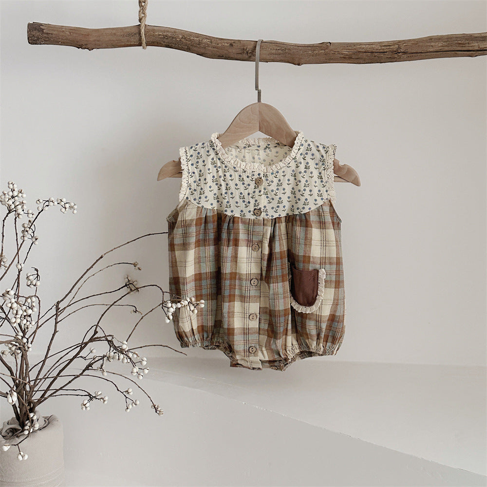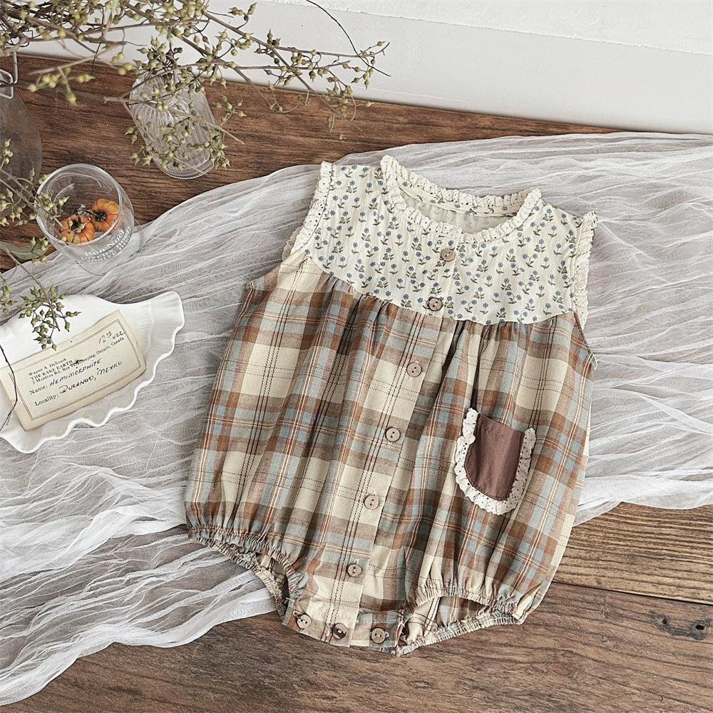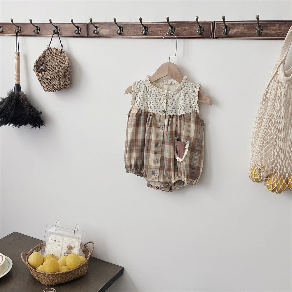 【BABY】夏新作 ブラウンチェックノースリーブロンパースSK061817