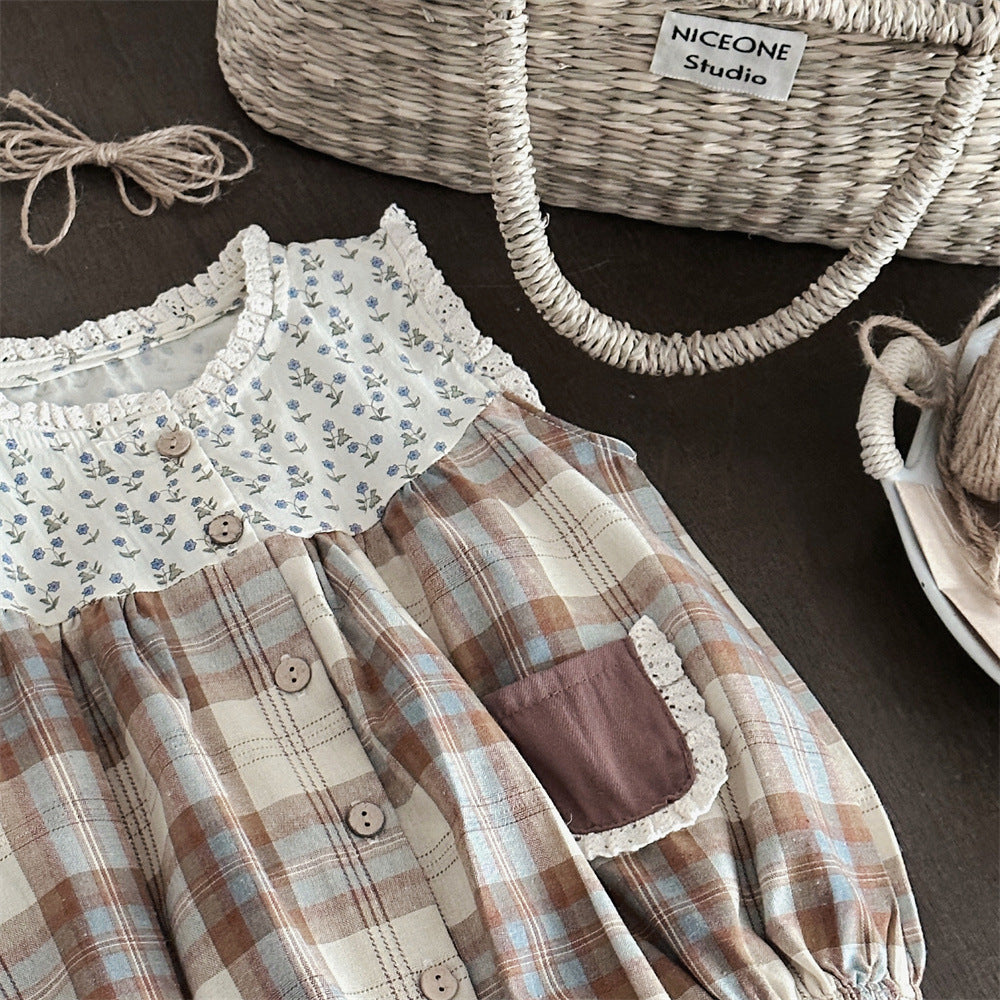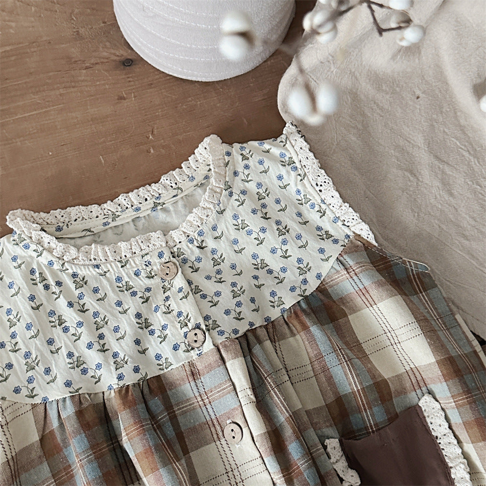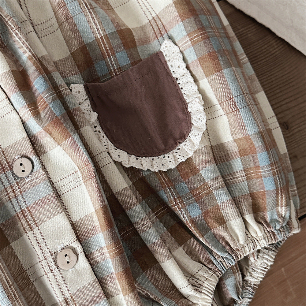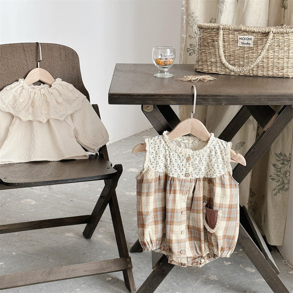 【BABY】夏新作 ブラウンチェックノースリーブロンパースSK061817