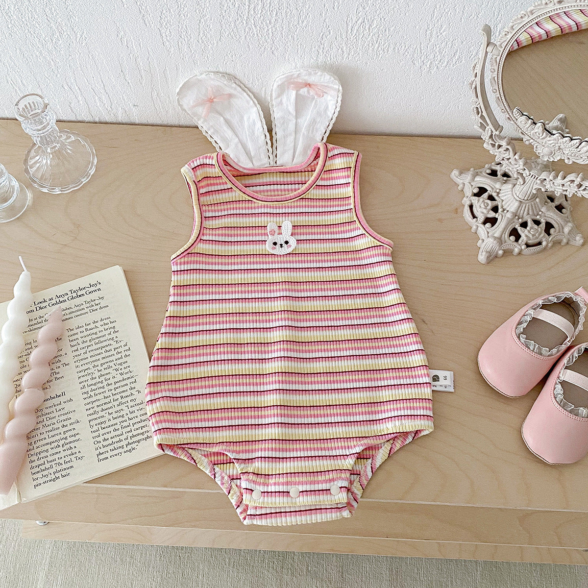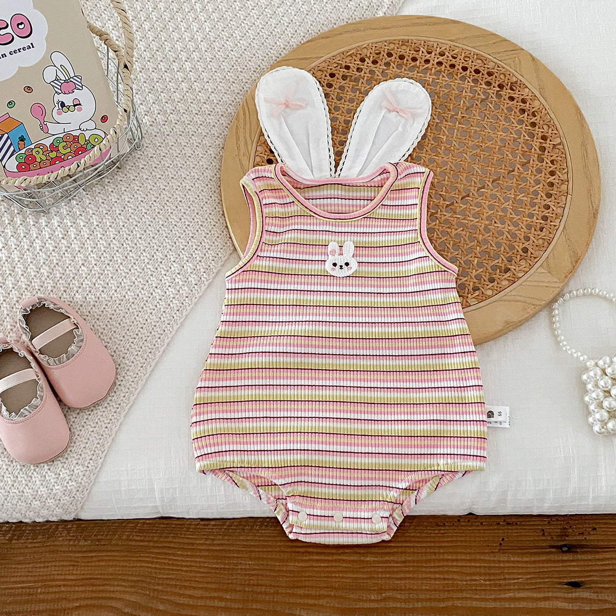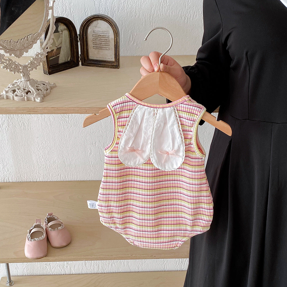 【BABY】夏新作 ボーダーウサギロンパースSK071701