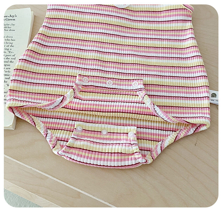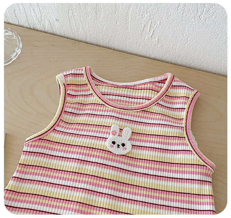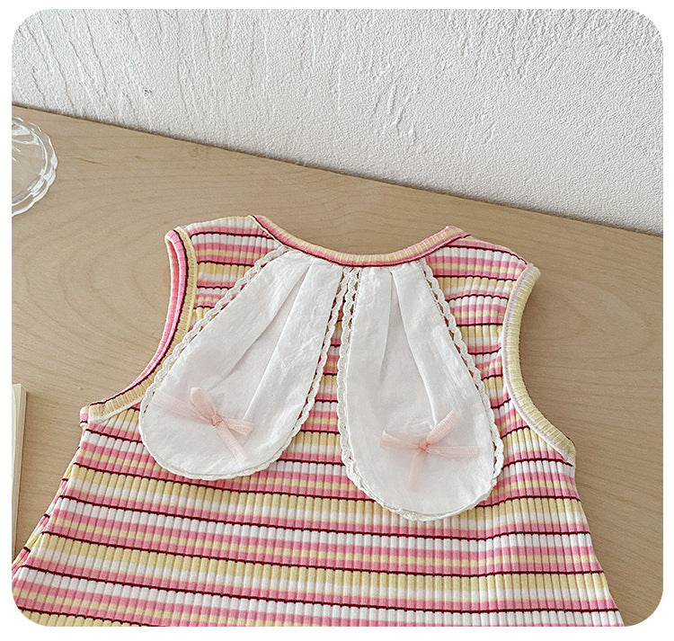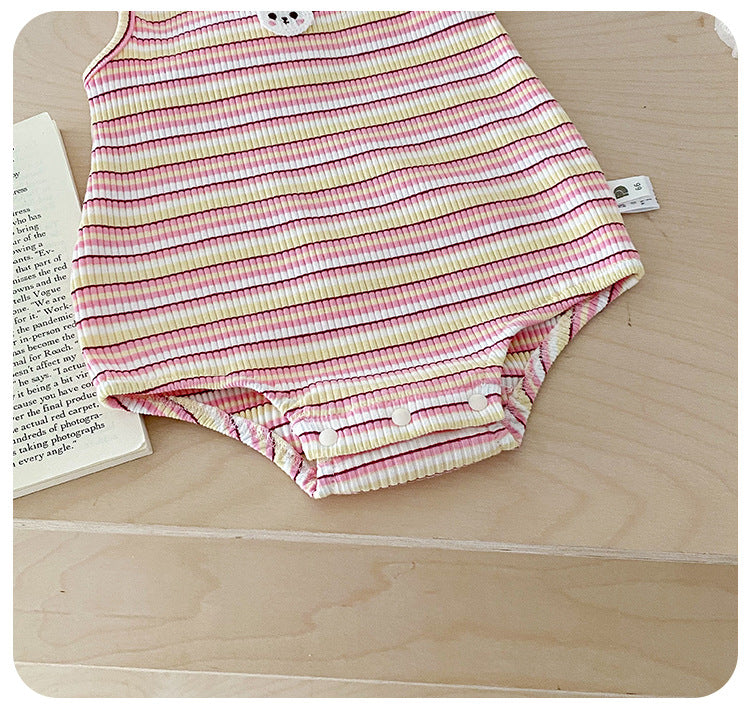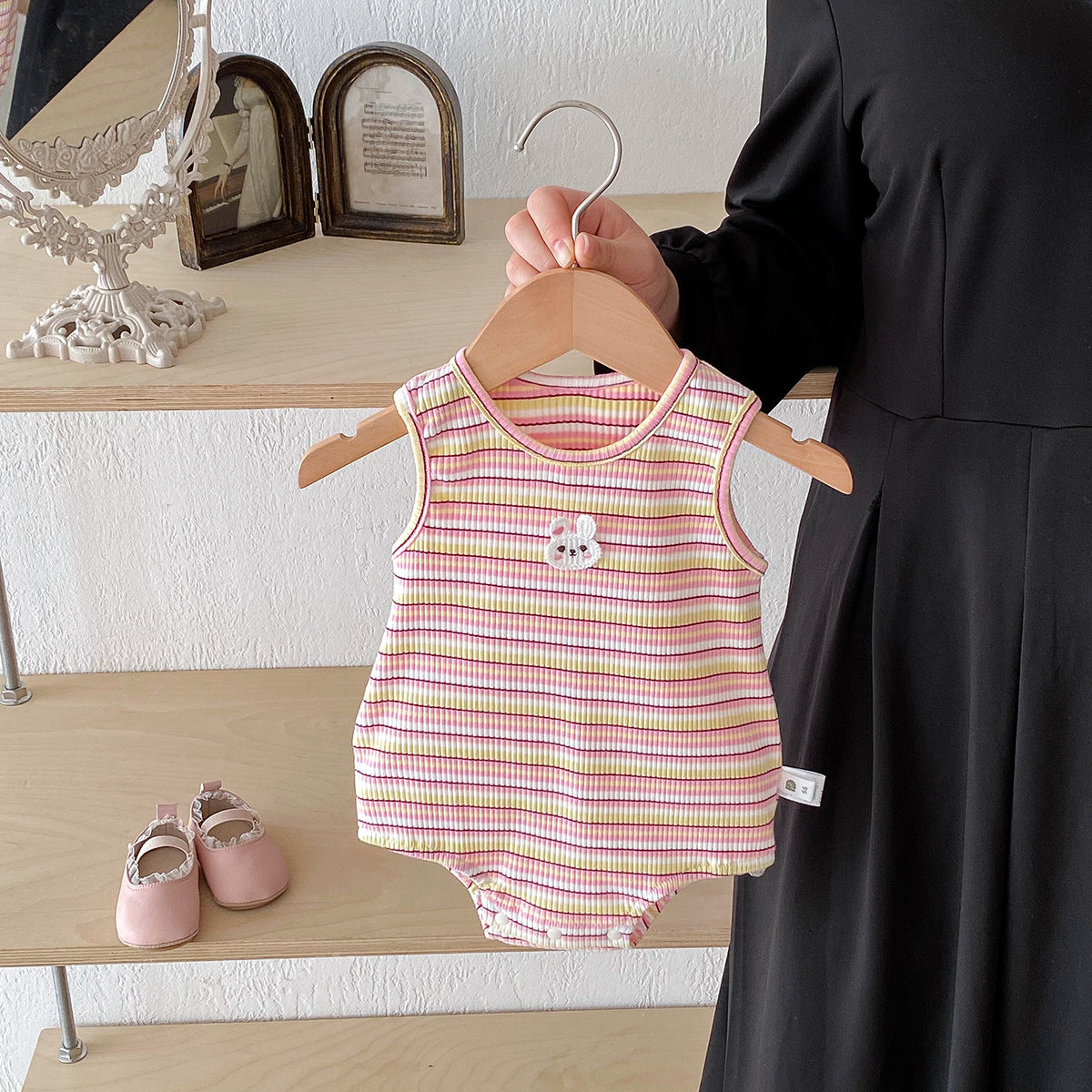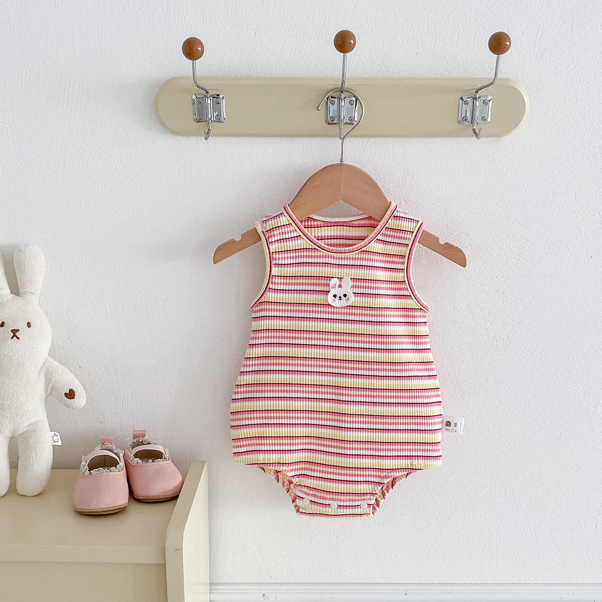 【BABY】夏新作 ボーダーウサギロンパースSK071701