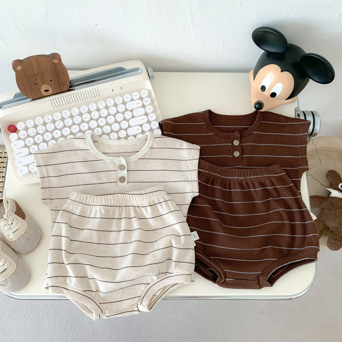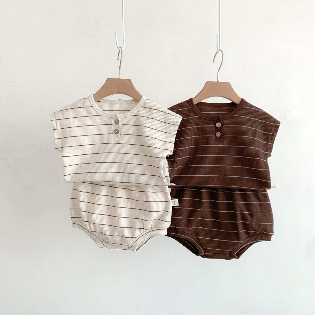 【BABY】夏新作 ボーダーワッフルセットアップSK062907