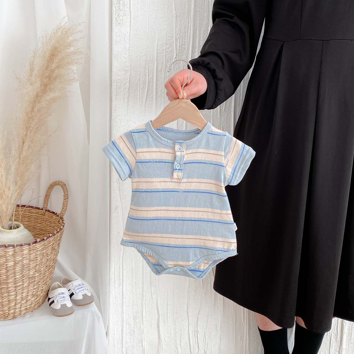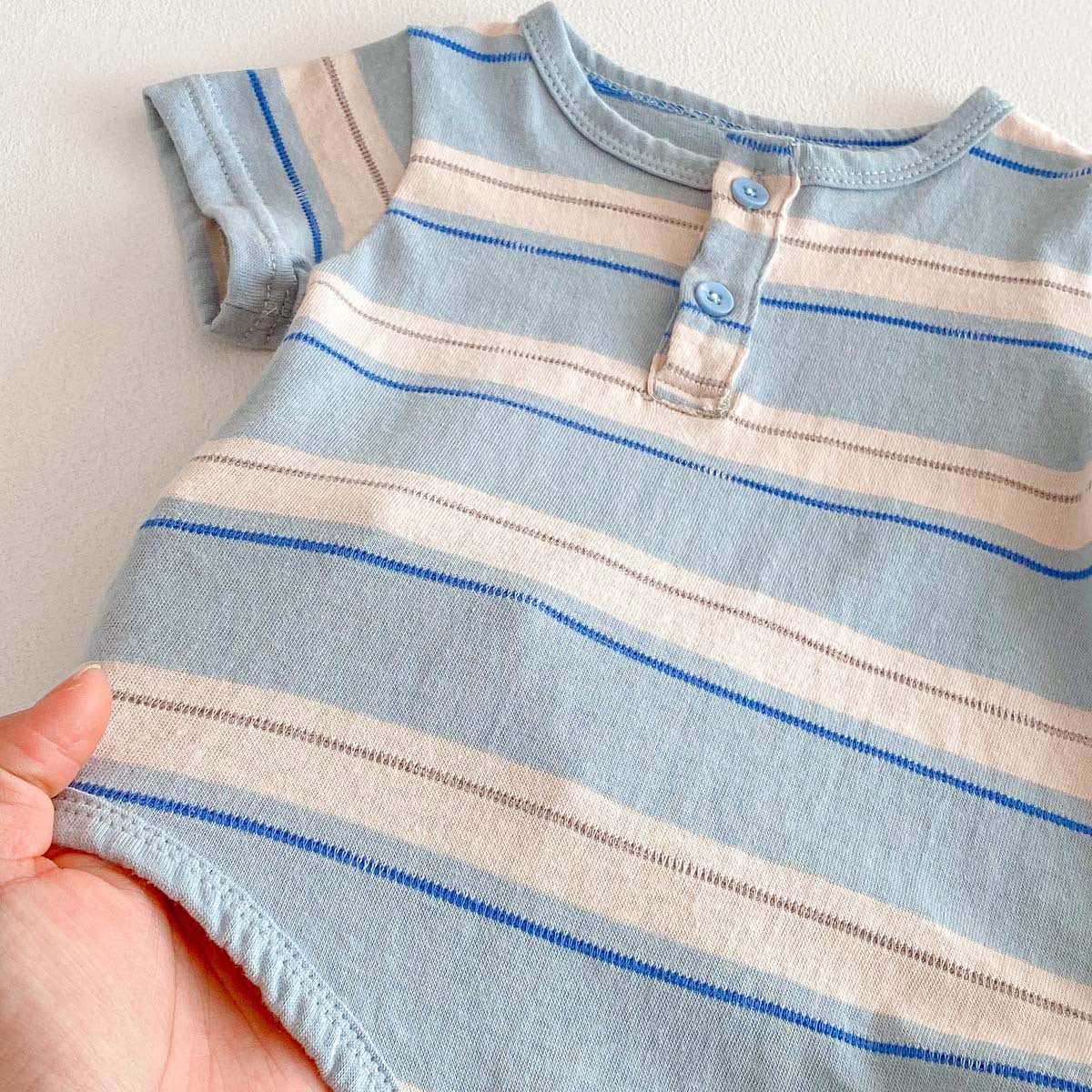 【BABY】夏新作 ラウンドネックストライプロンパースSK062712