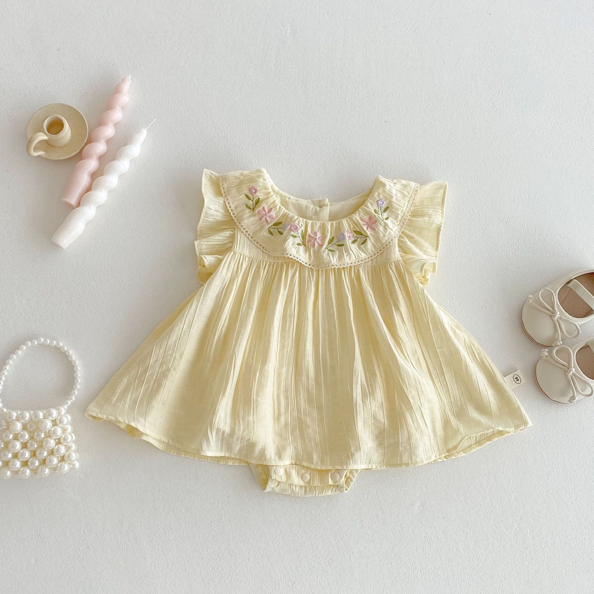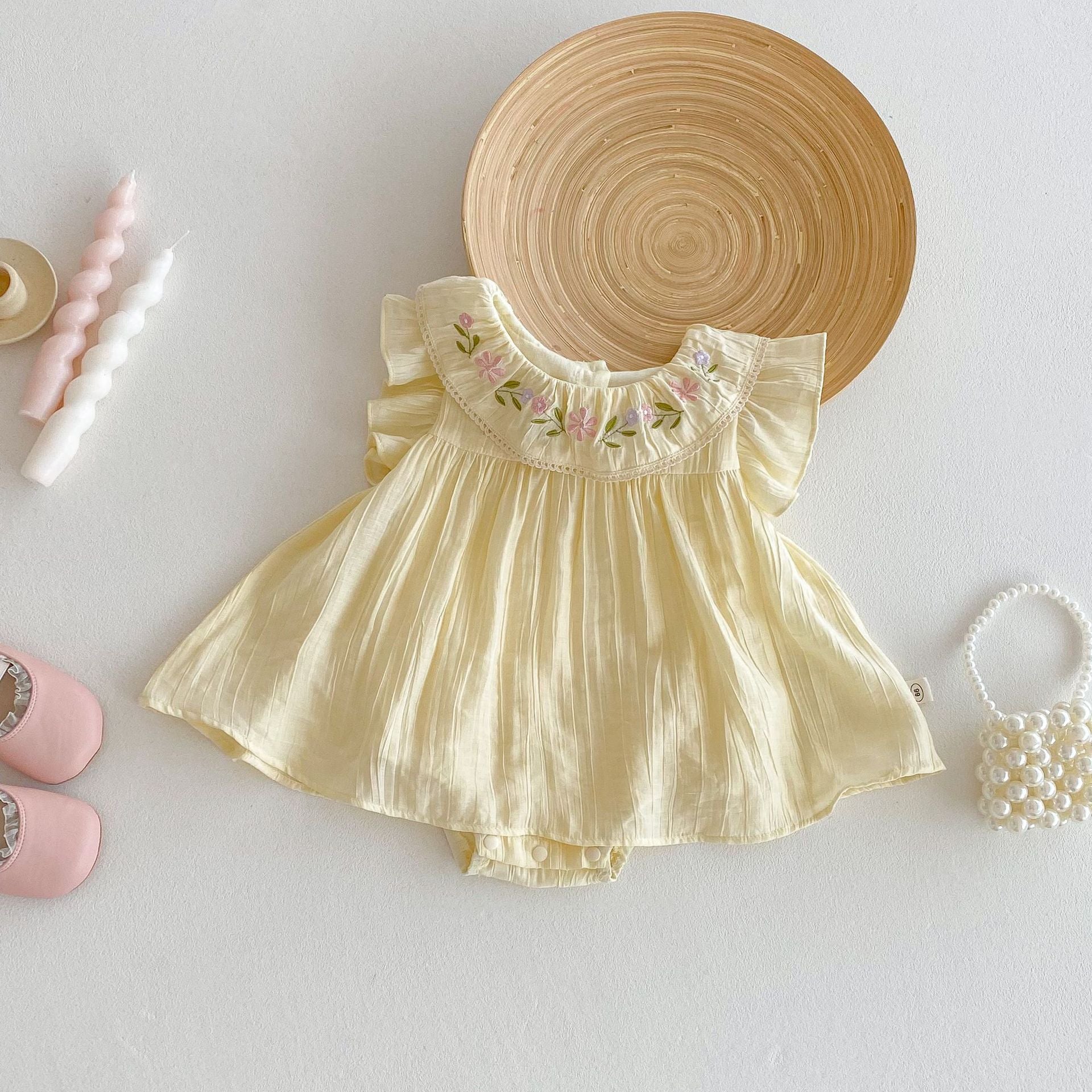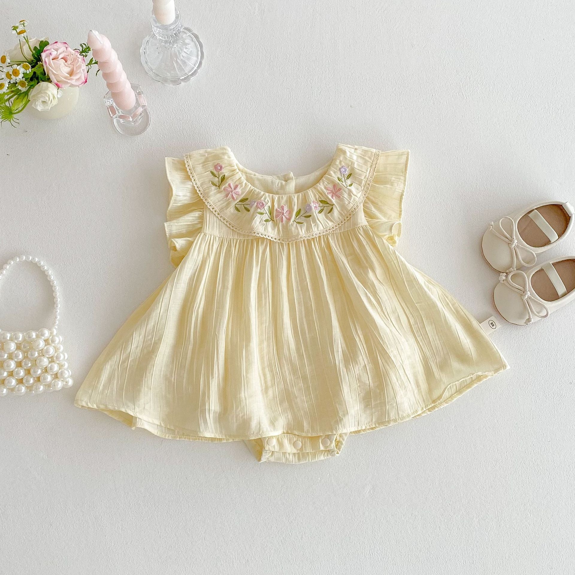【BABY】夏新作 ラウンドネック刺繍フリルロンパースSK070110