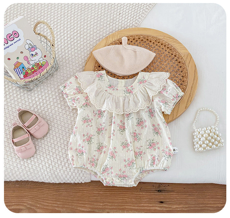 【BABY】夏新作 ラペルフローラルプリンセスロンパースSK071718