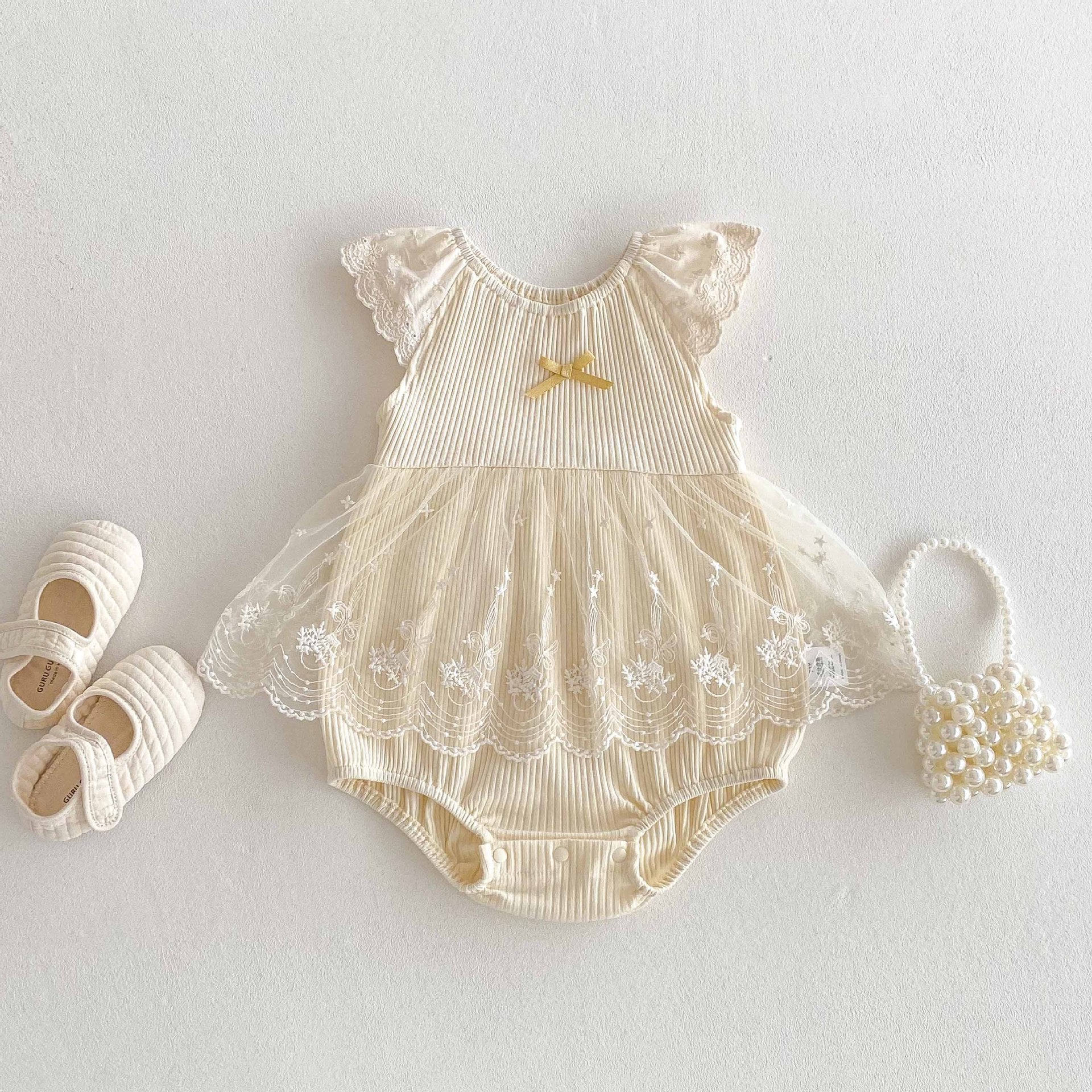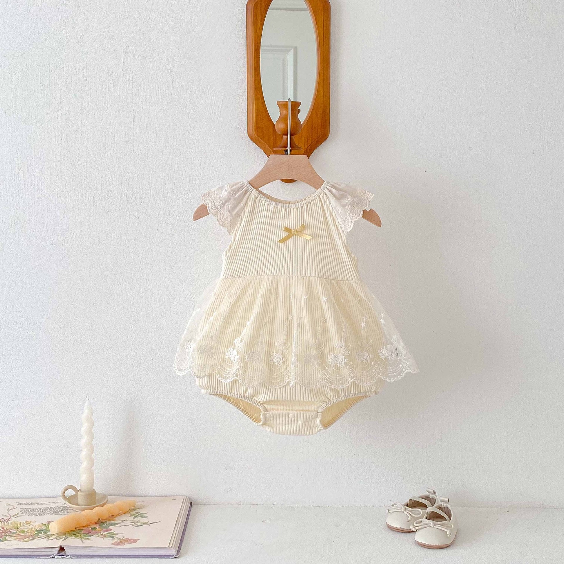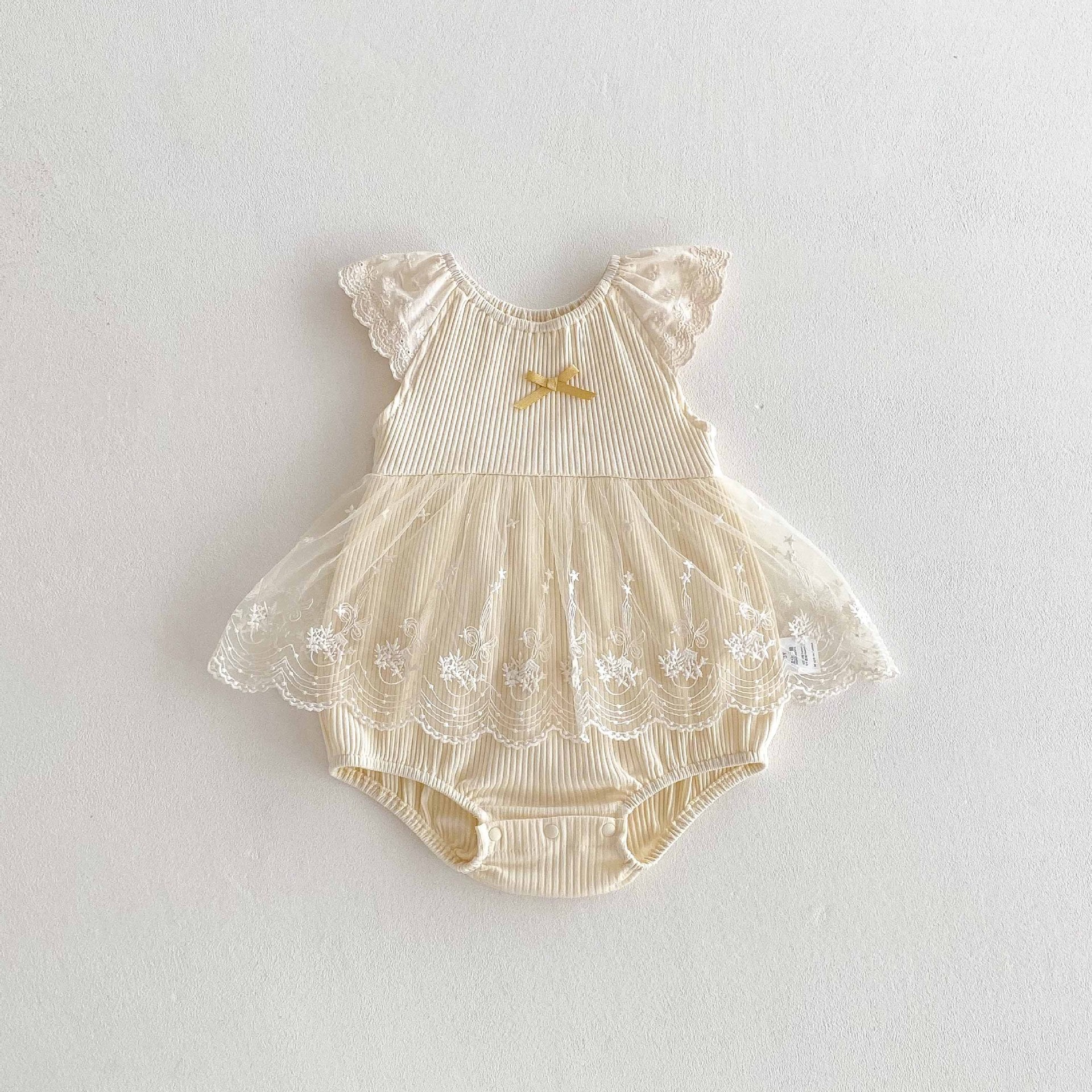 【BABY】夏新作 リボン付きレースリブロンパースSK062324