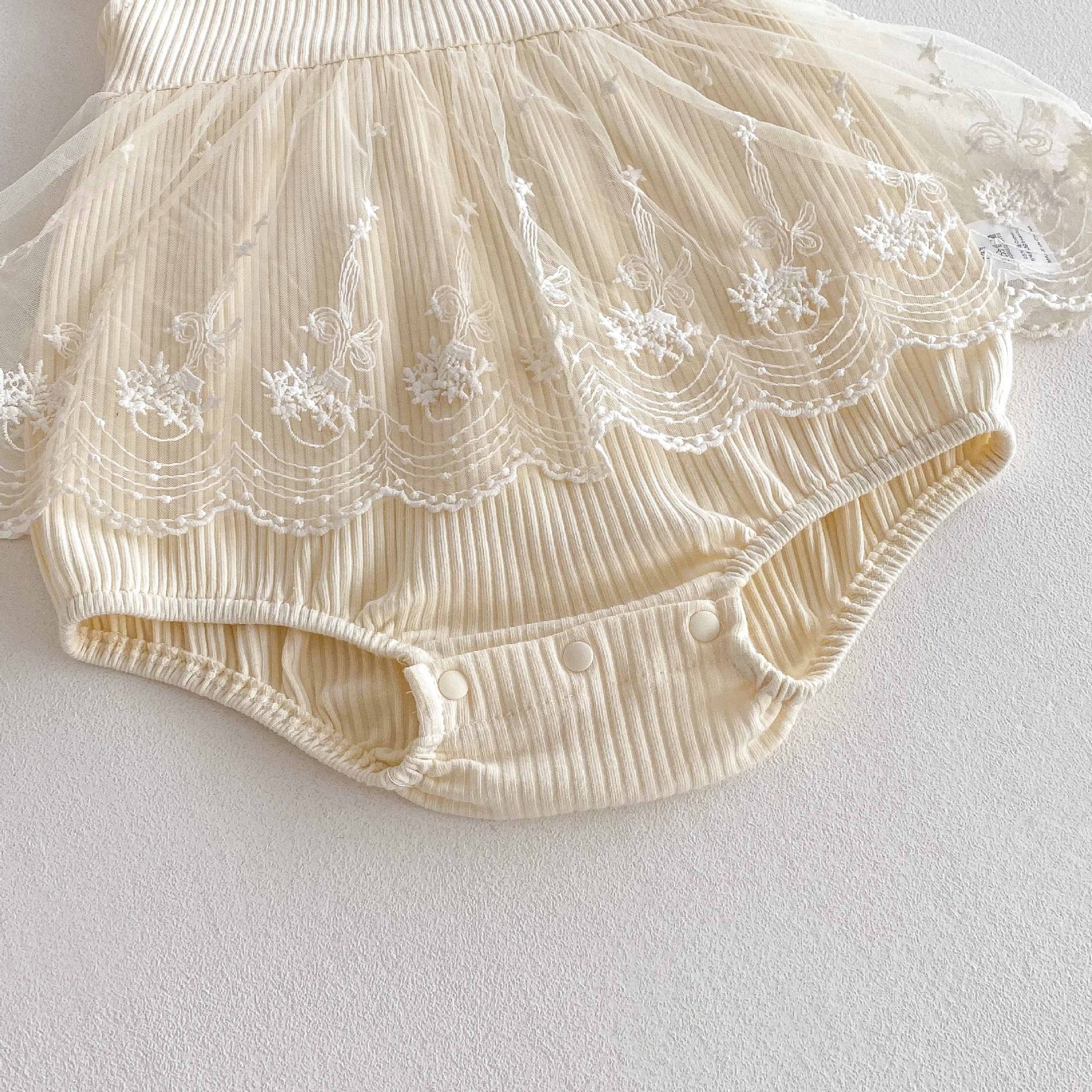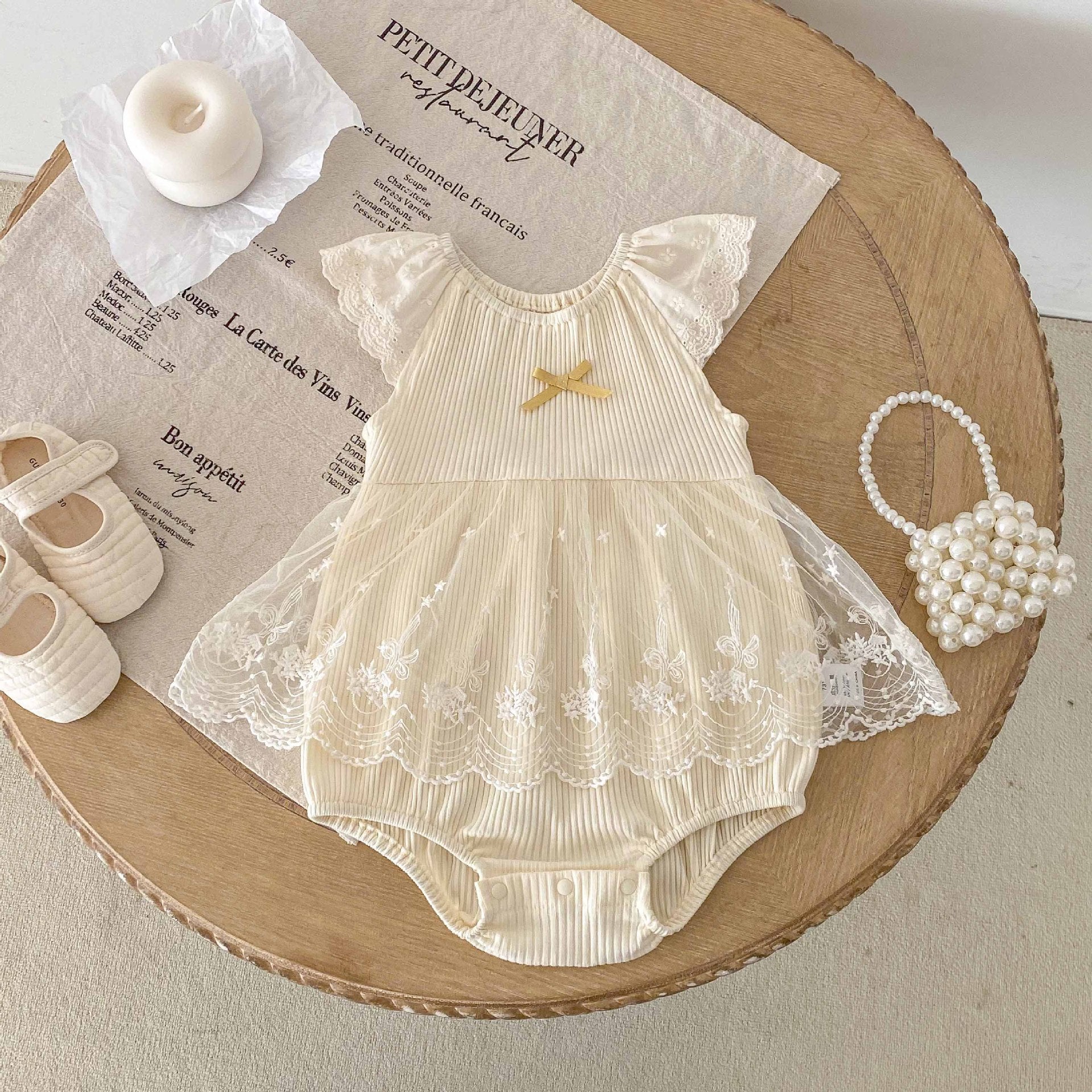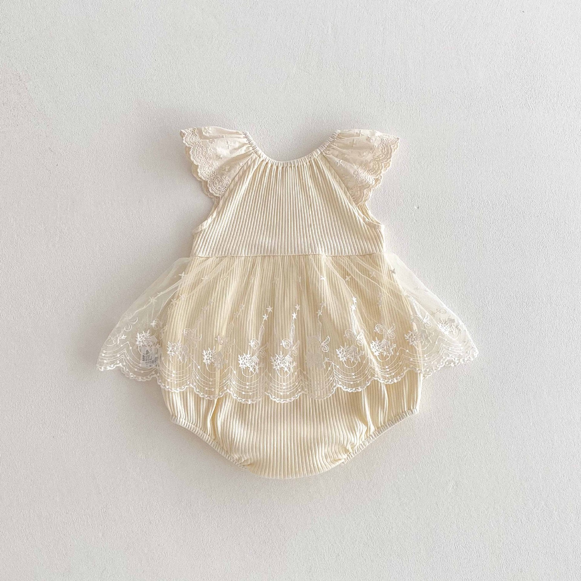 【BABY】夏新作 リボン付きレースリブロンパースSK062324