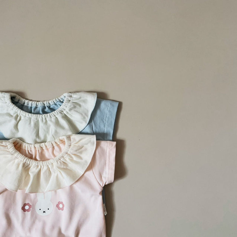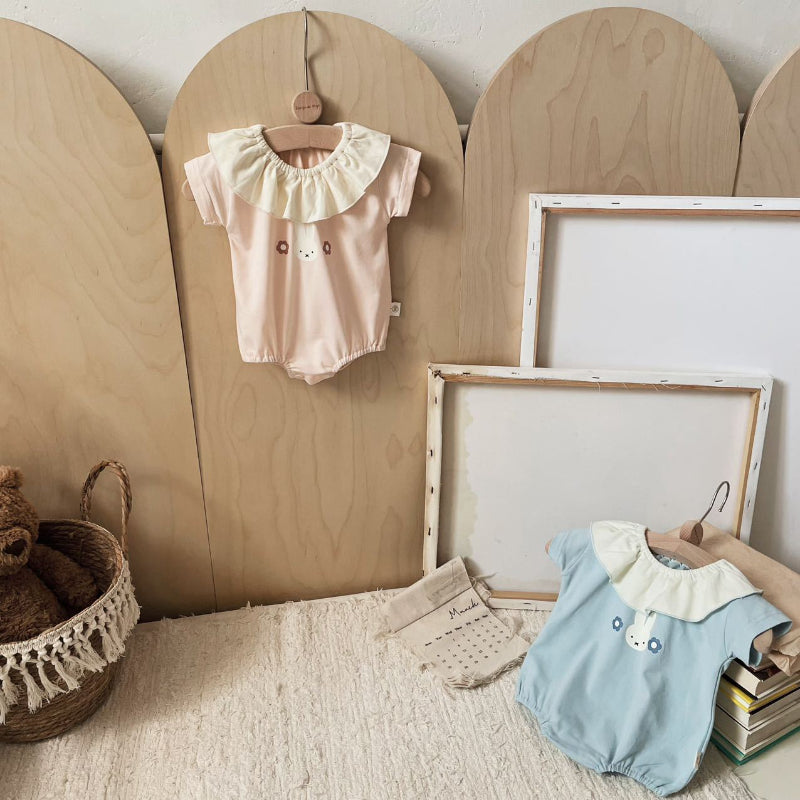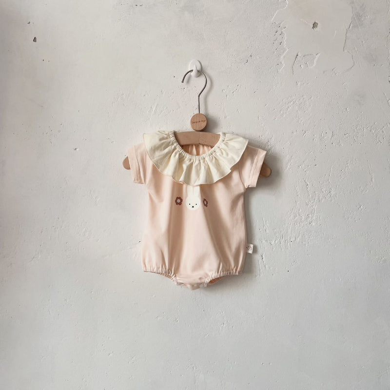 【BABY】夏新作 リル襟うさぎ柄ロンパースSK091329