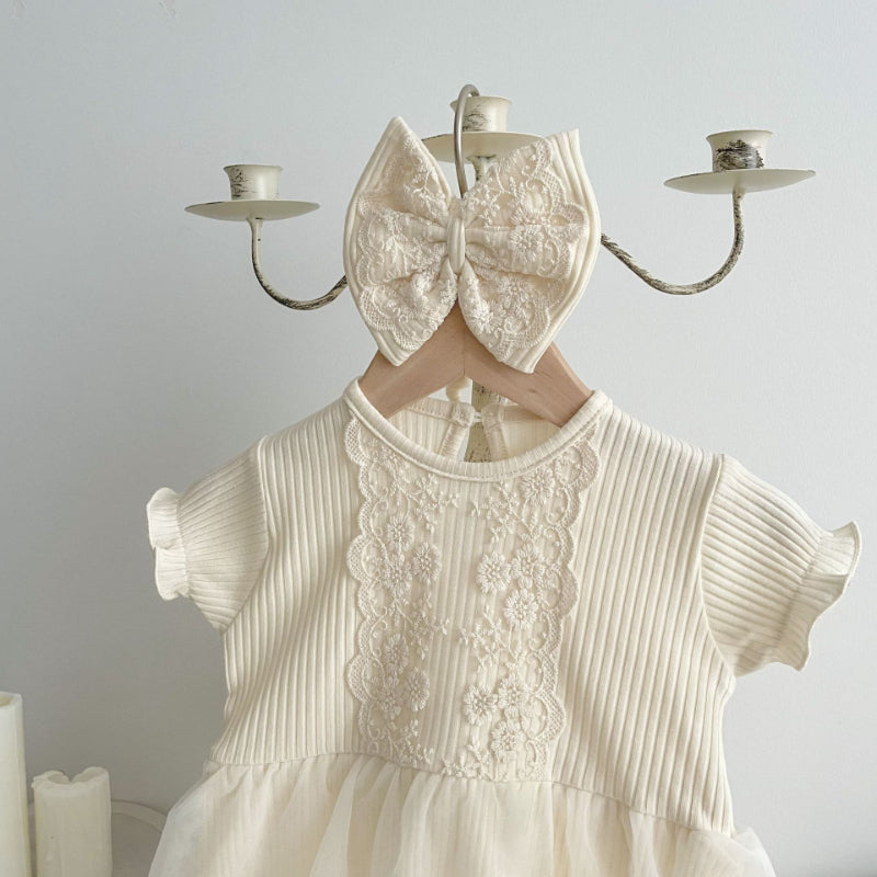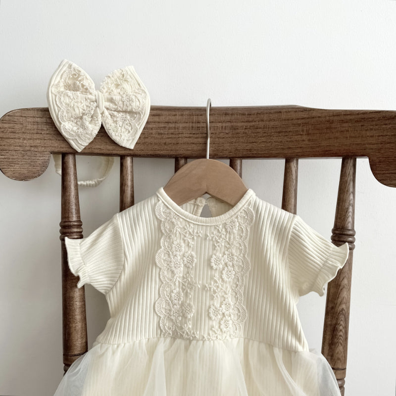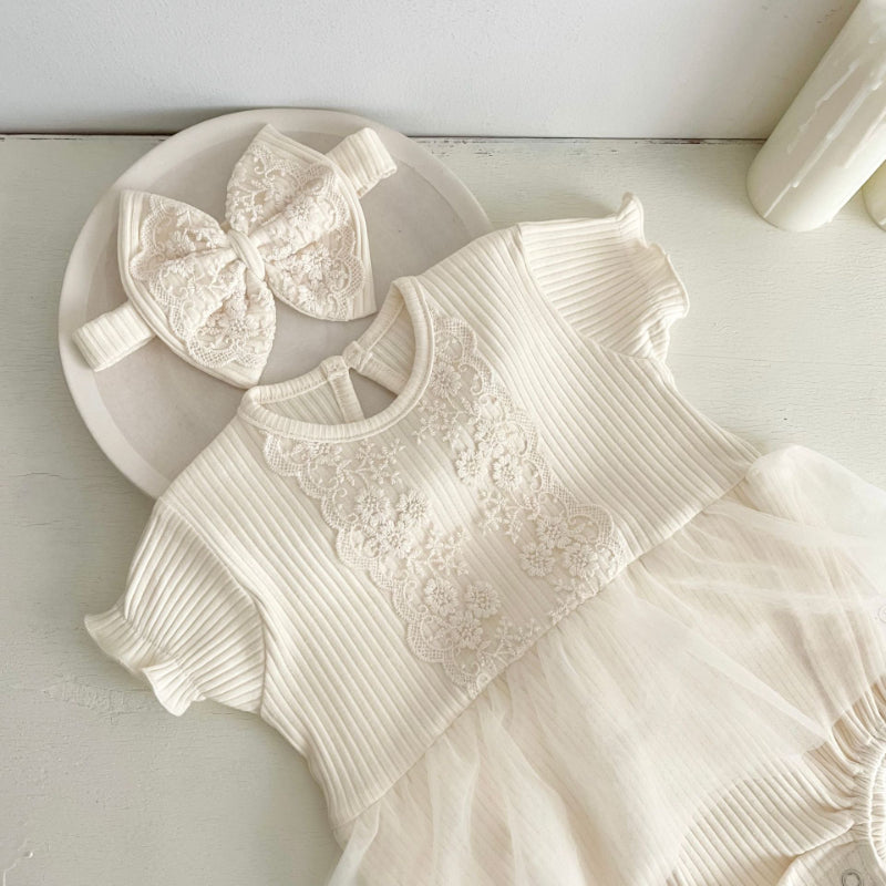 【BABY】夏新作 レースきリブロンパース&ヘアバンドSK090516