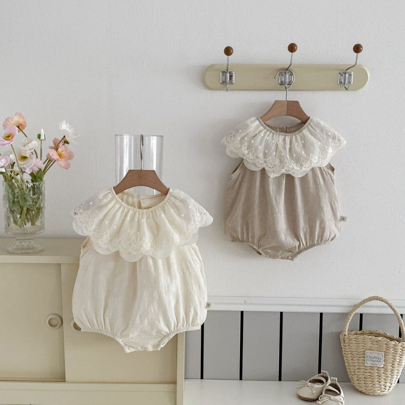 【BABY】夏新作 レースエッジ襟ノースリーブロンパースSK071909
