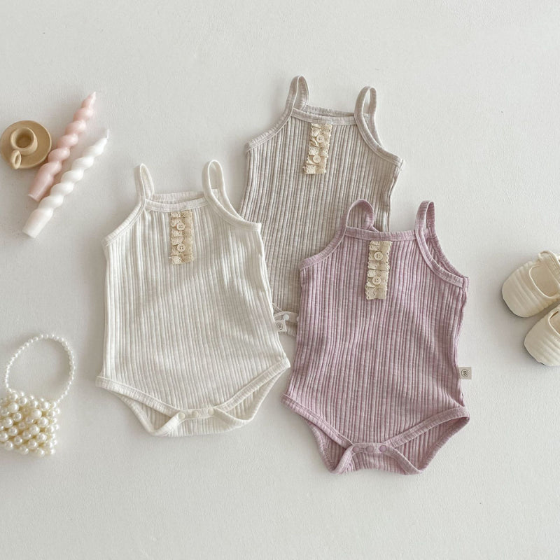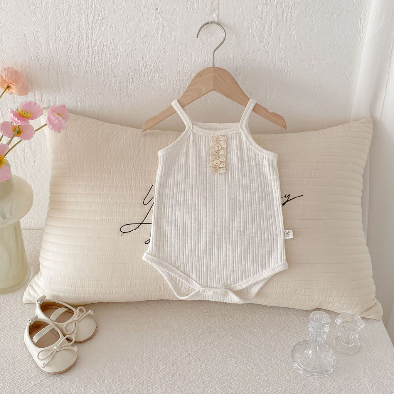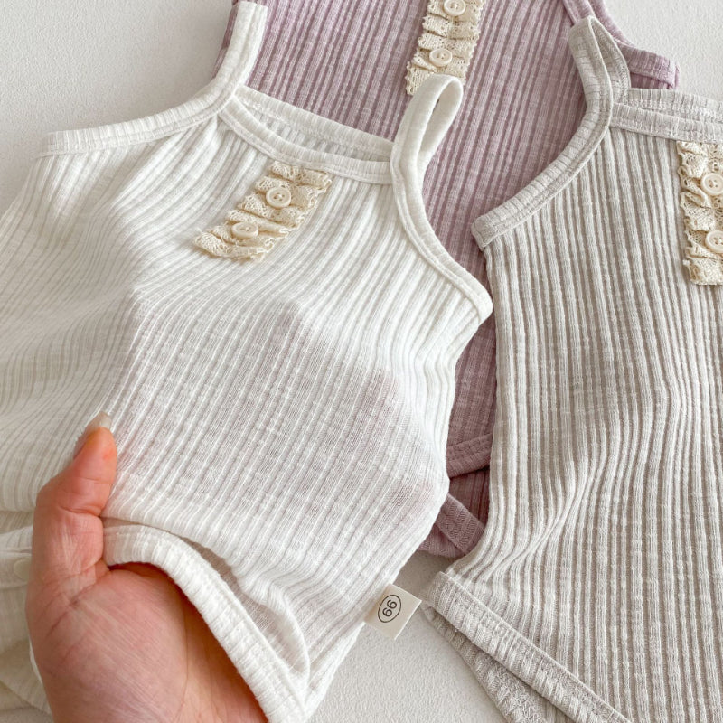 【BABY】夏新作 レースダブルボタンサスペンダーロンパースSK072218