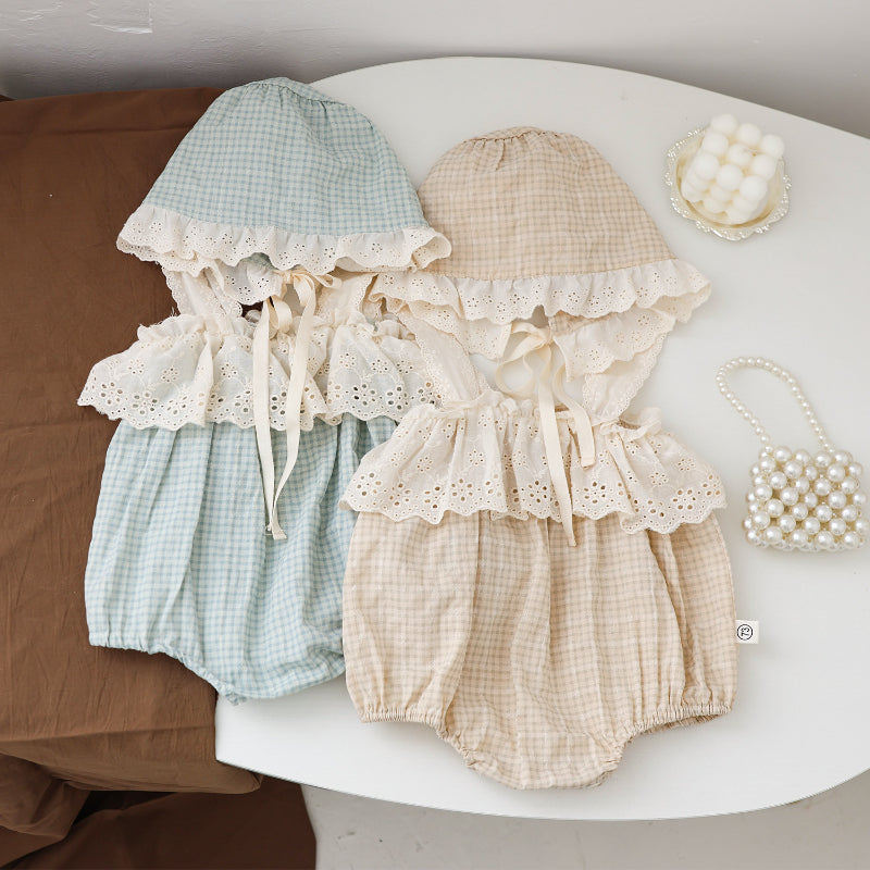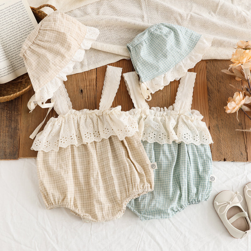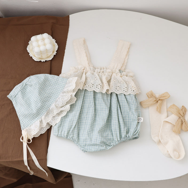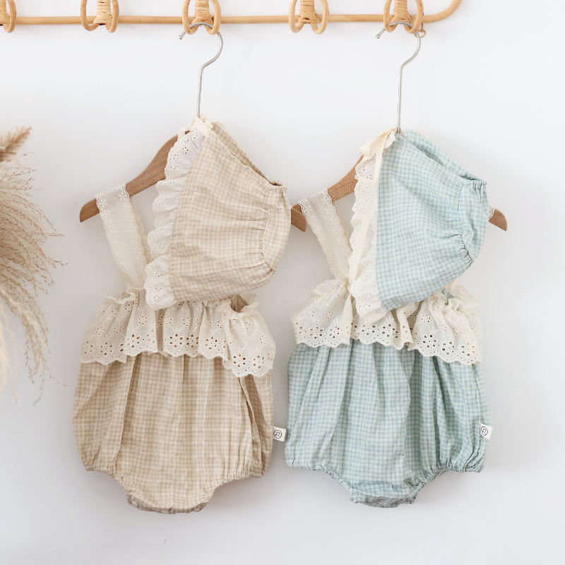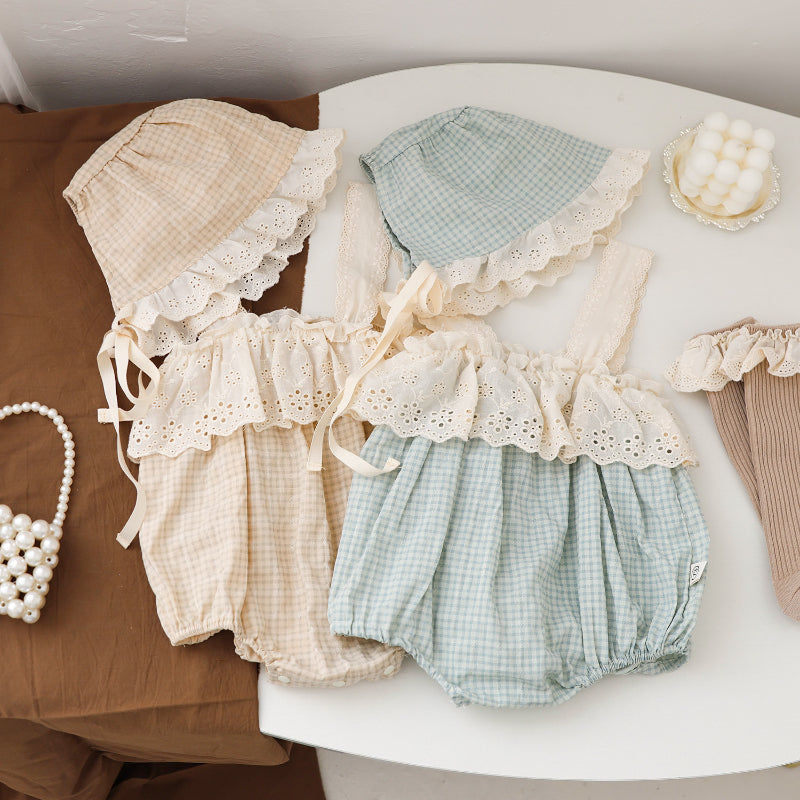 【BABY】夏新作 レースチェックキャミロンパース&帽子SK072222