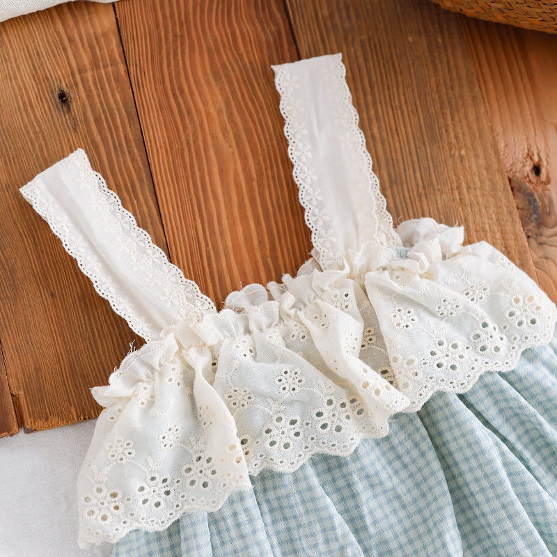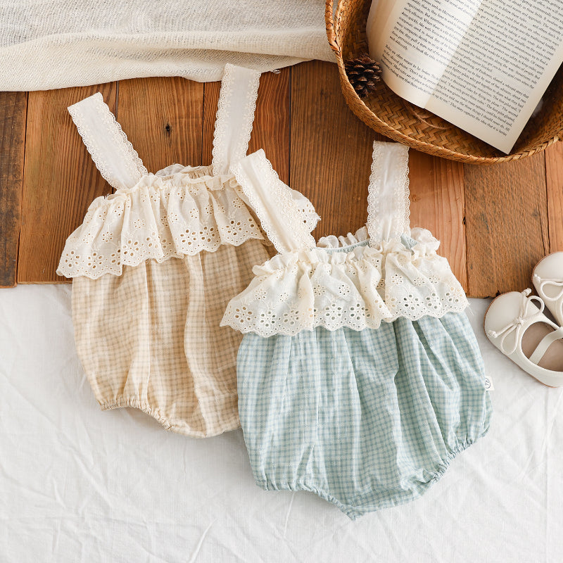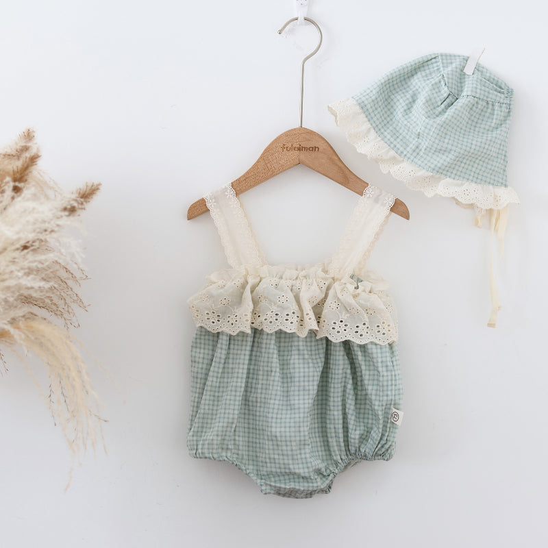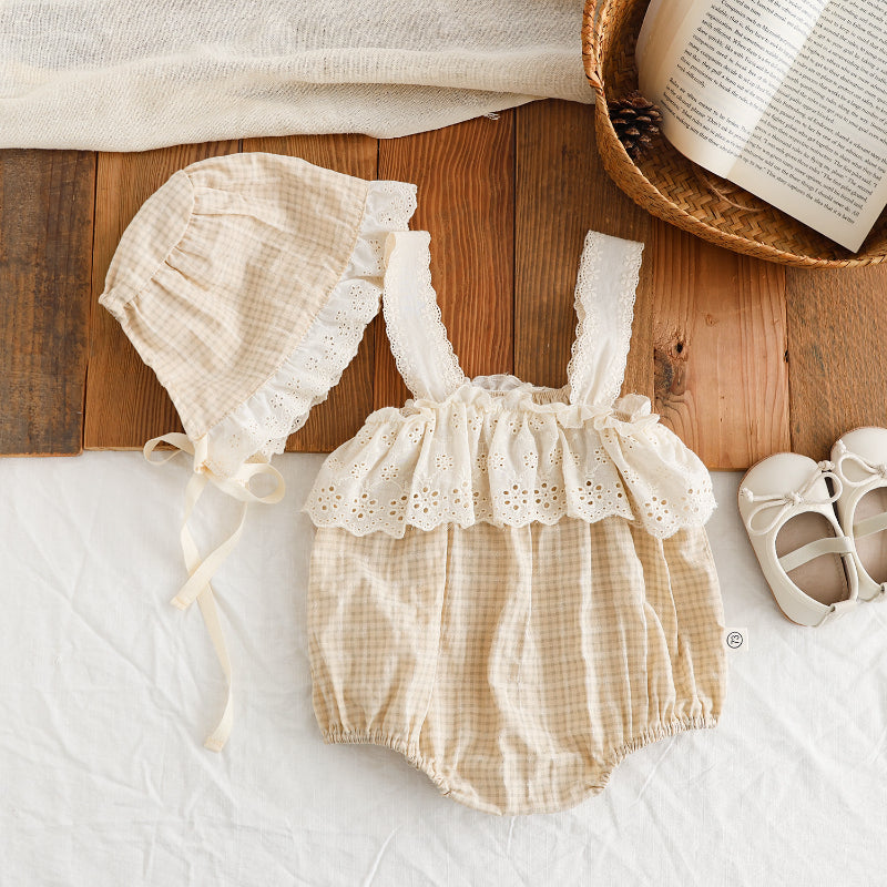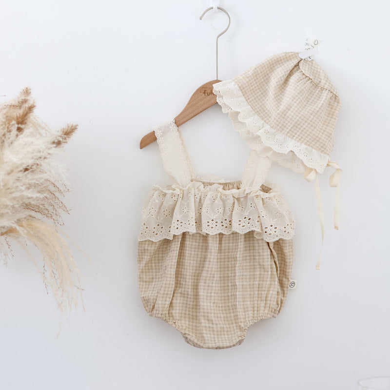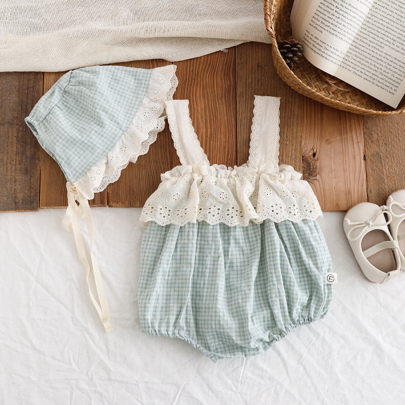 【BABY】夏新作 レースチェックキャミロンパース&帽子SK072222