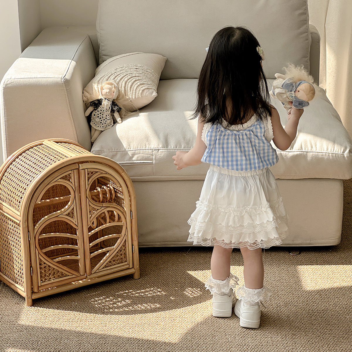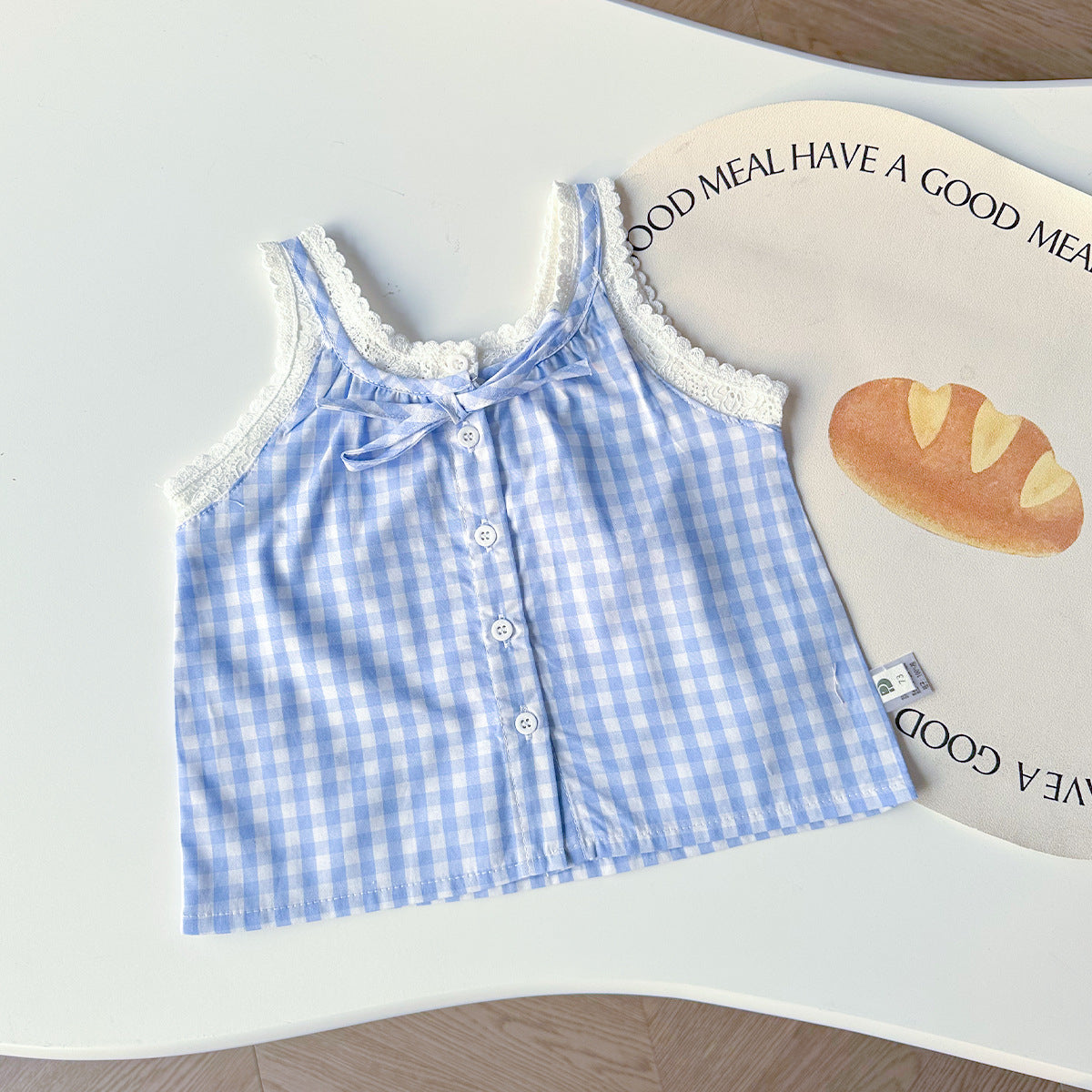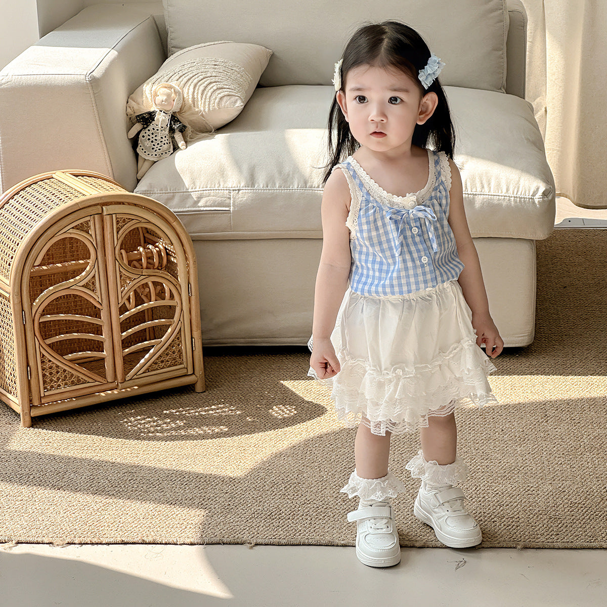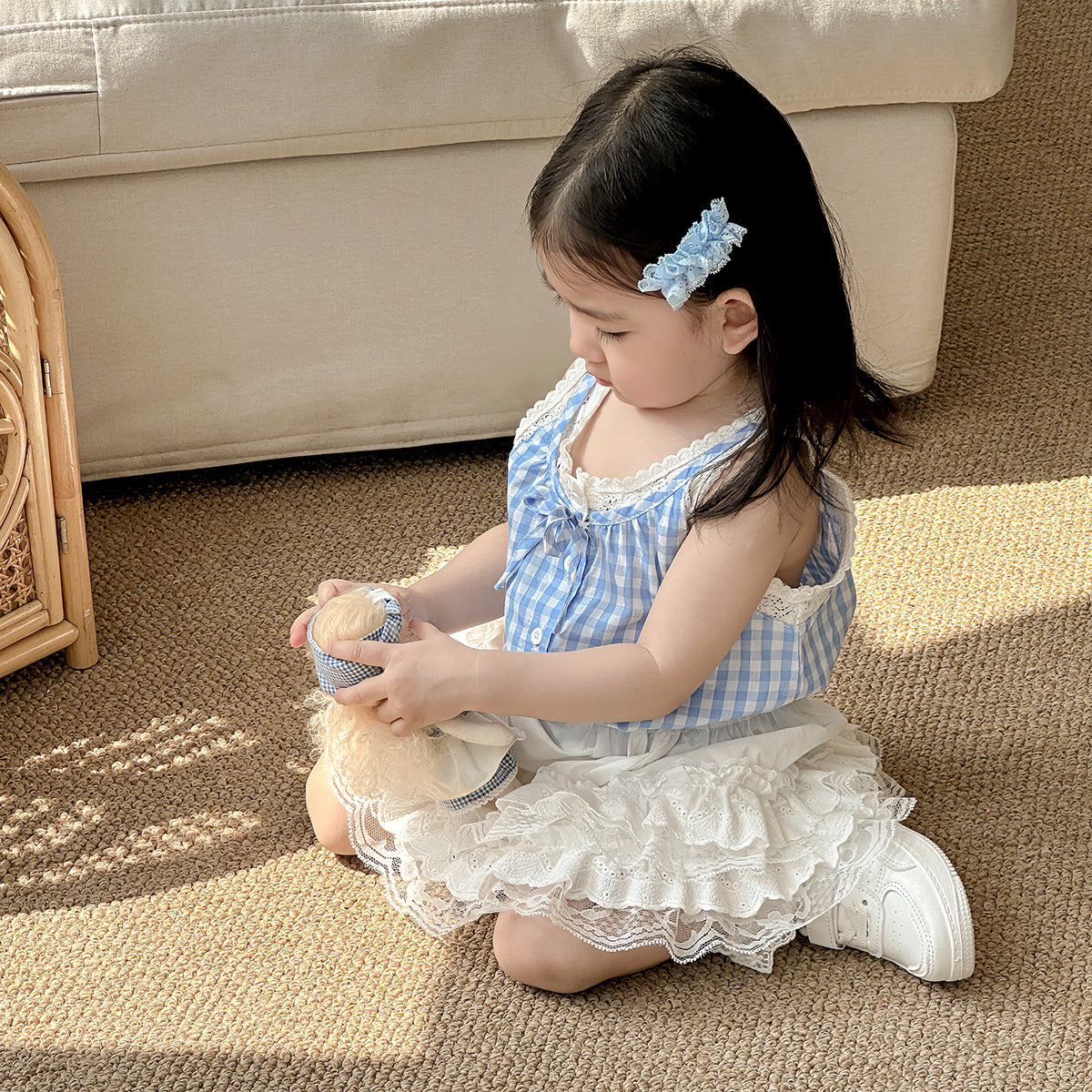 【BABY】夏新作 レースチェックベスト、無地レーススカートセットアップSK071610