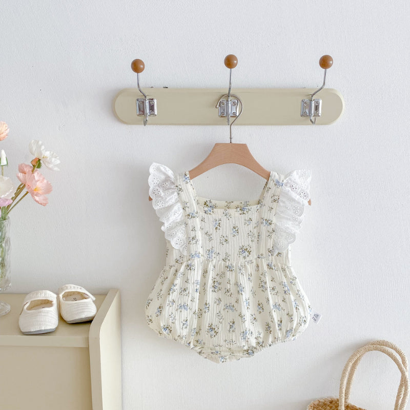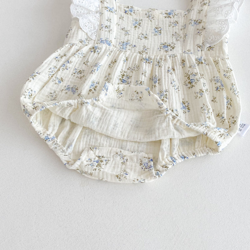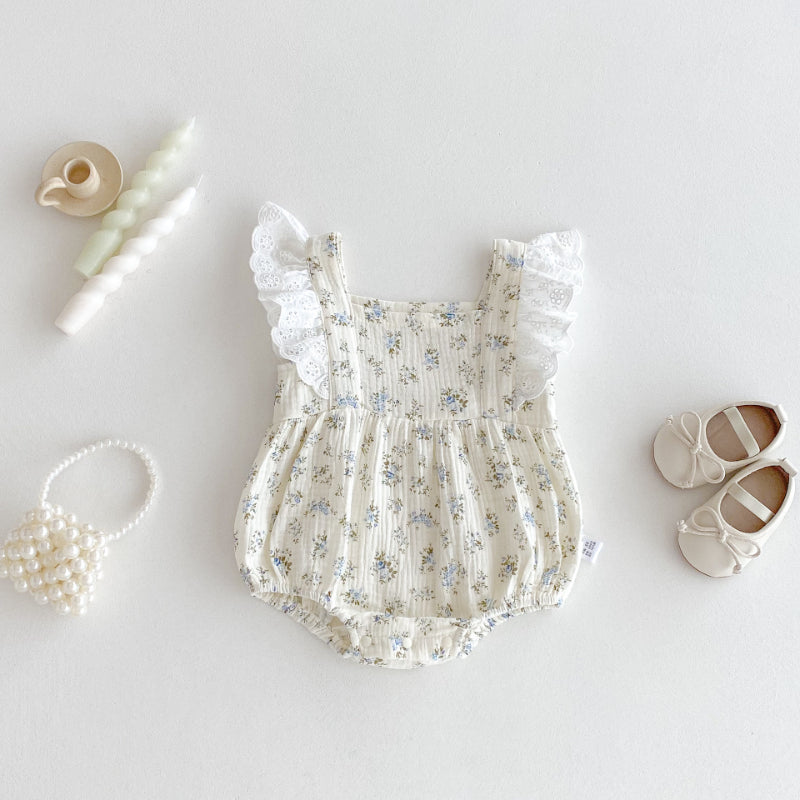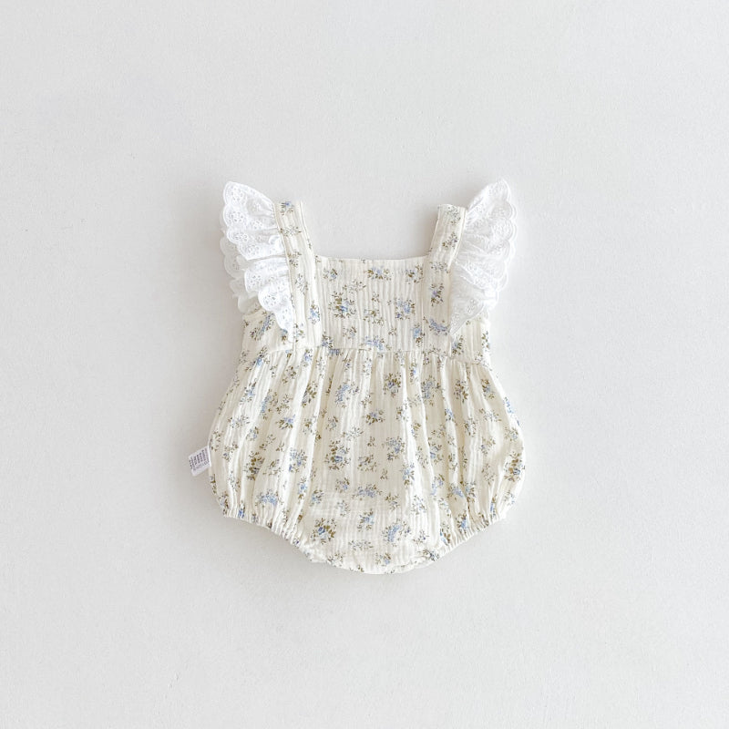 【BABY】夏新作 レースフリル袖花柄ロンパースSK091512