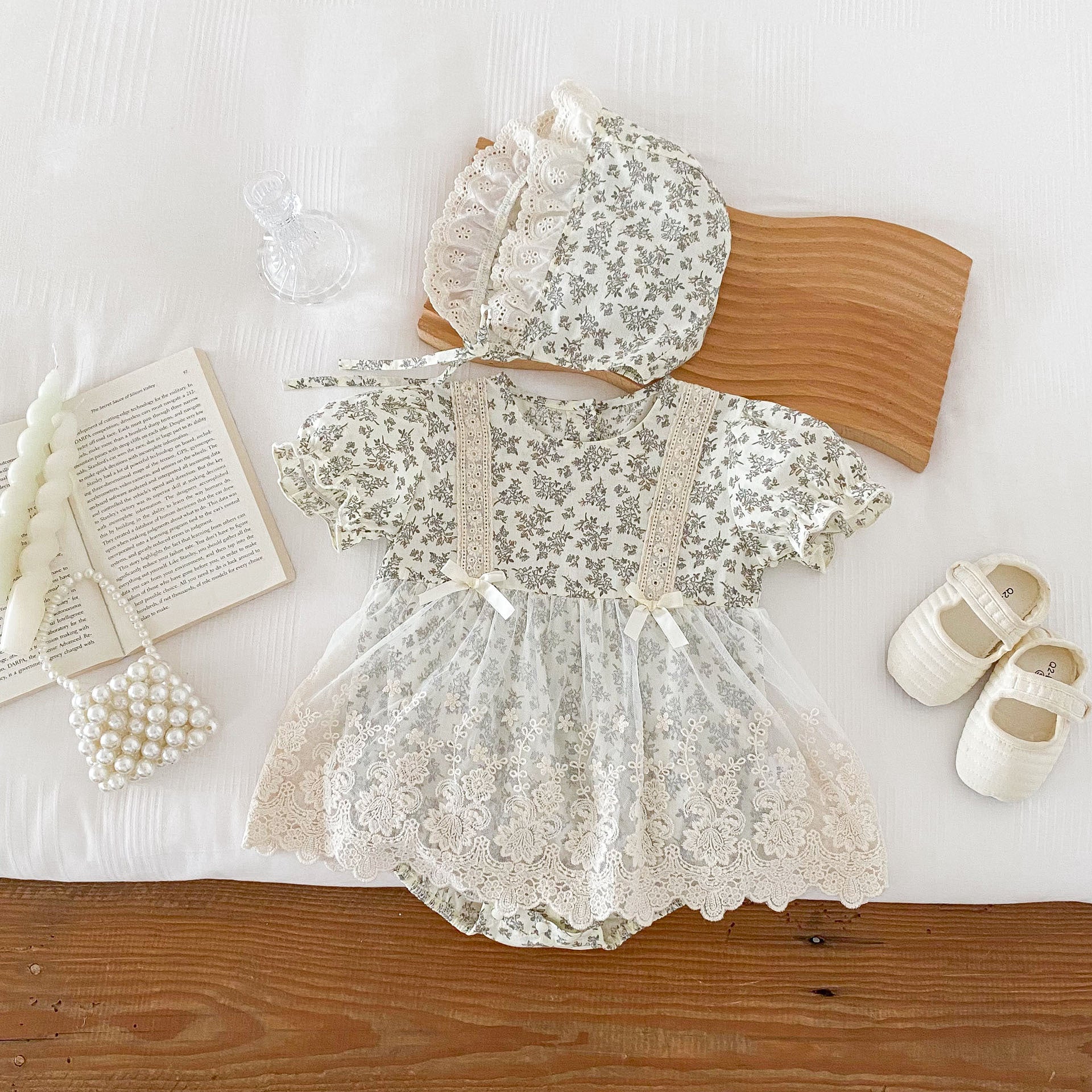 【BABY】夏新作 レース花柄ロンパース&帽子SK082724